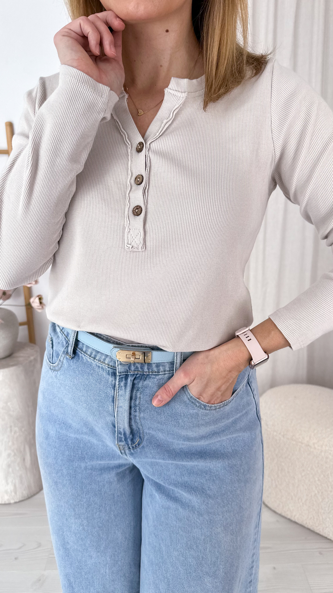 Ta bluzka to kwintesencja komfortu i stylu na co dzień. Uszyta z wysokiej jakości bawełny o delikatnej, prążkowanej fakturze, gwarantuje miękkość i przewiewność, dzięki czemu doskonale sprawdzi się przez cały dzień.