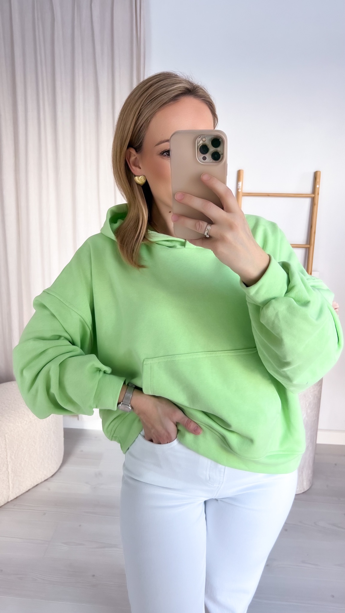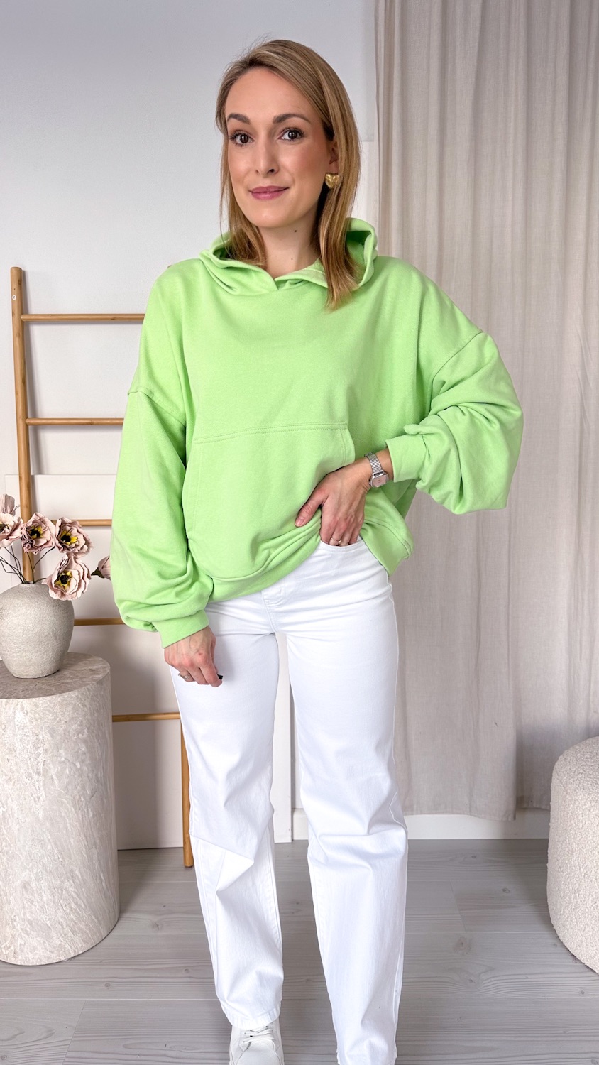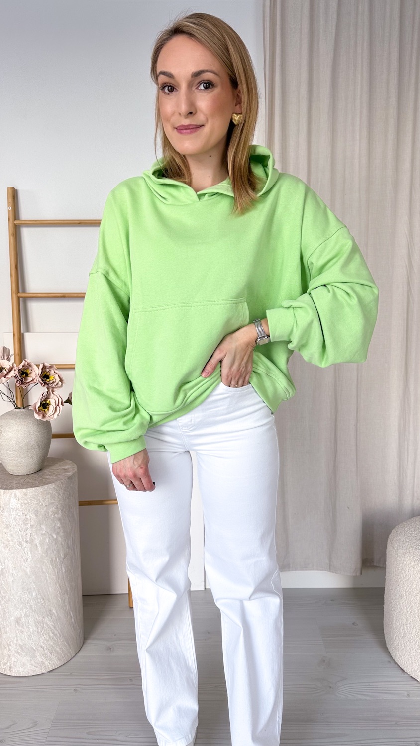 Praktyczna kieszeń typu kangur pozwala ogrzać dłonie lub przechować drobiazgi, a regulowany kaptur chroni przed wiatrem i chłodem. Minimalistyczny design sprawia, że bluza doskonale komponuje się z jeansami, dresami czy legginsami, tworząc stylowe, codzienne zestawy.