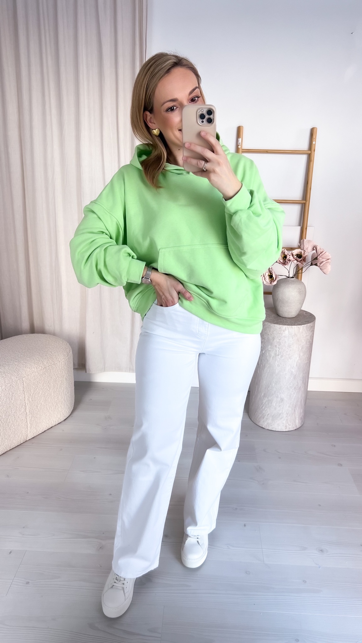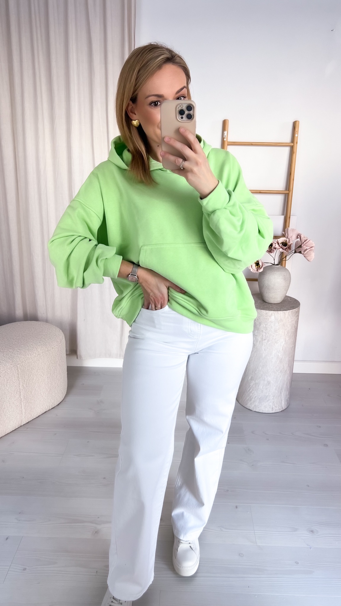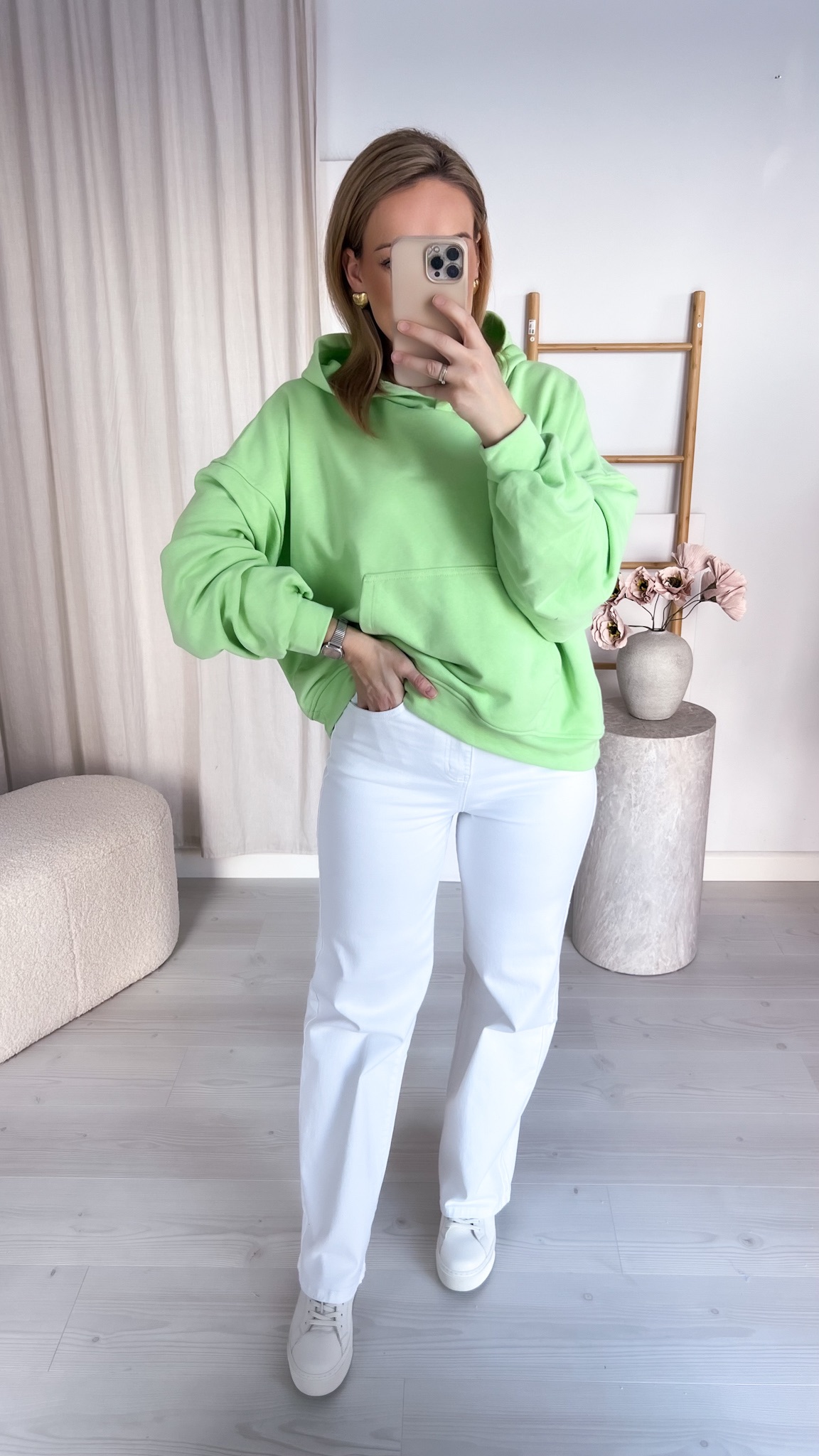 Praktyczna kieszeń typu kangur pozwala ogrzać dłonie lub przechować drobiazgi, a regulowany kaptur chroni przed wiatrem i chłodem. Minimalistyczny design sprawia, że bluza doskonale komponuje się z jeansami, dresami czy legginsami, tworząc stylowe, codzienne zestawy.