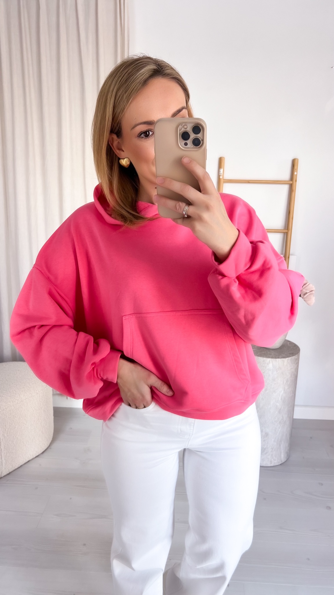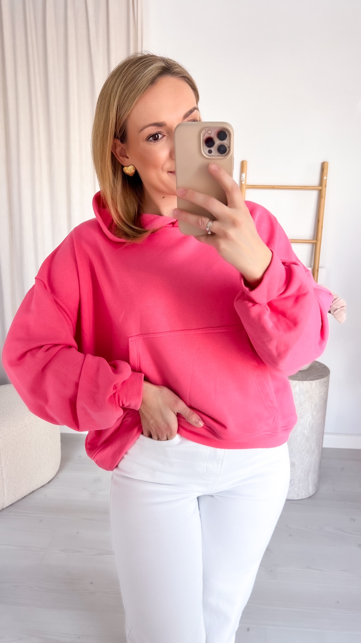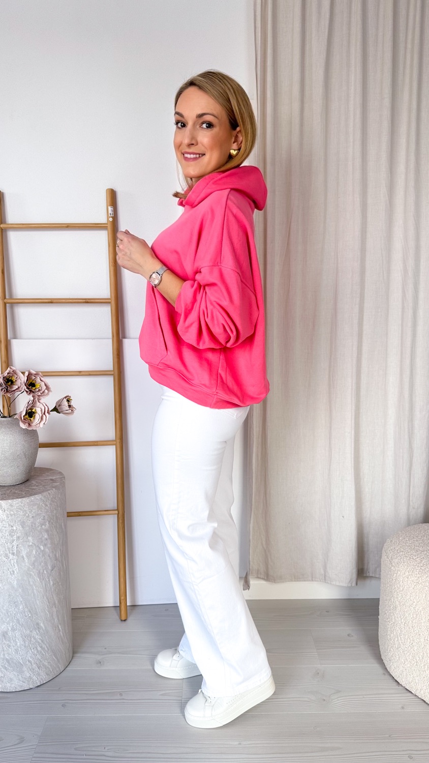 Praktyczna kieszeń typu kangur pozwala ogrzać dłonie lub przechować drobiazgi, a regulowany kaptur chroni przed wiatrem i chłodem. Minimalistyczny design sprawia, że bluza doskonale komponuje się z jeansami, dresami czy legginsami, tworząc stylowe, codzienne zestawy.