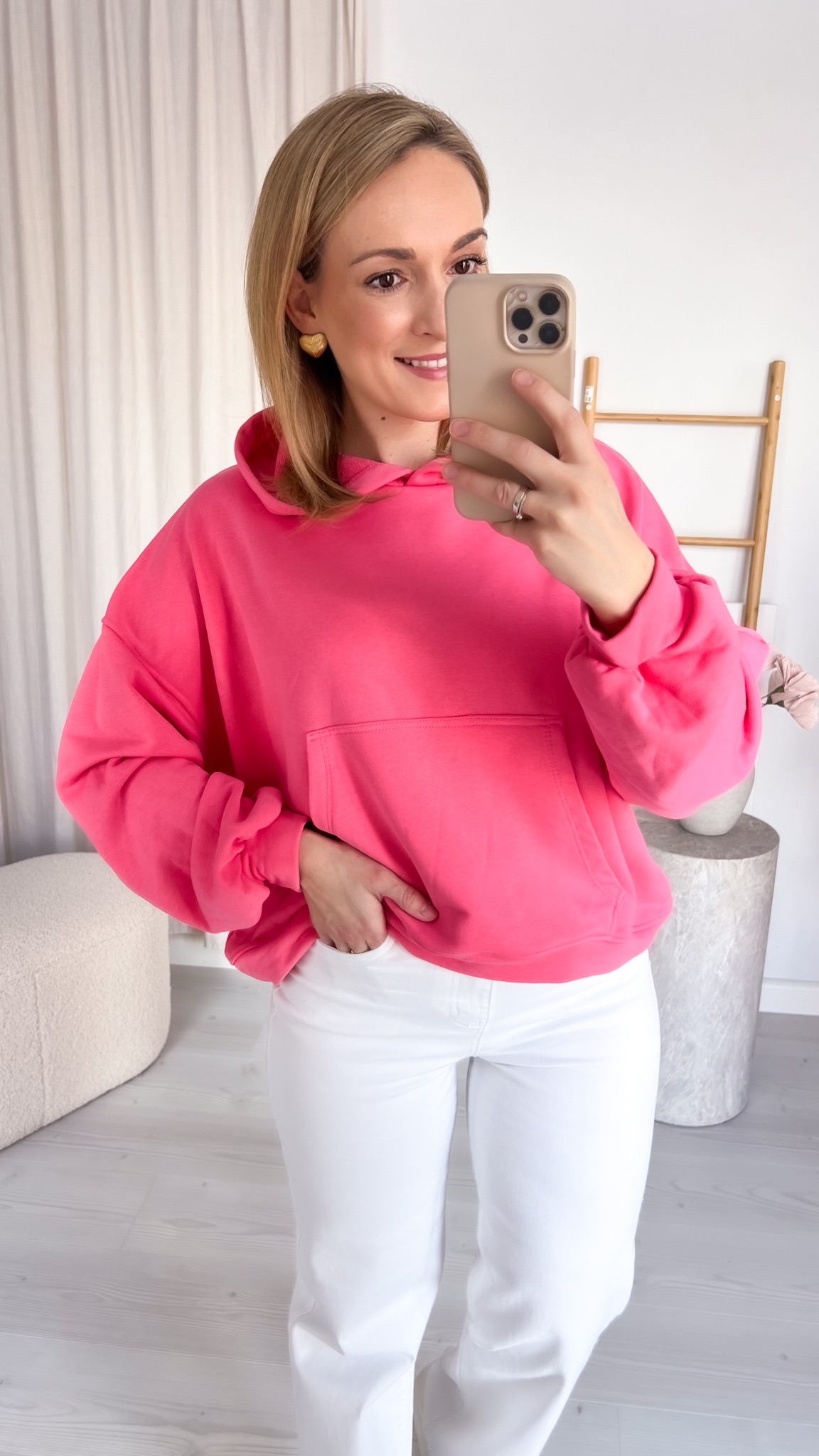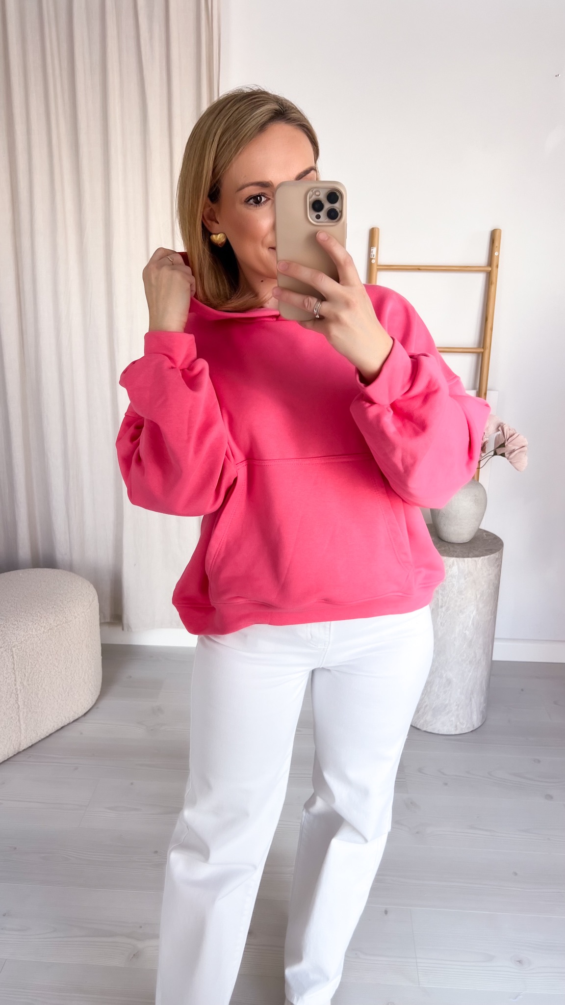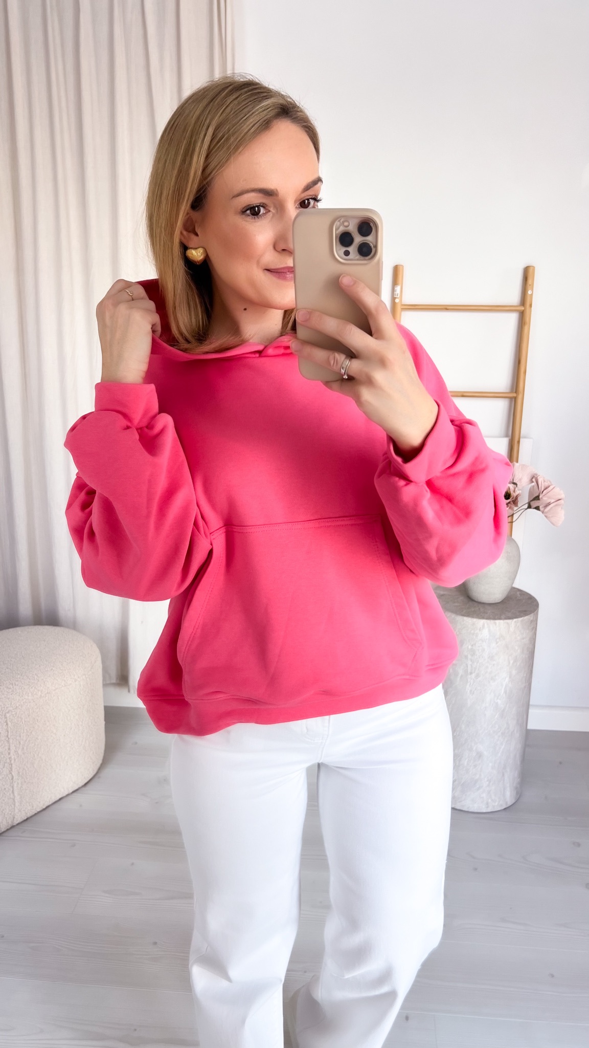 Praktyczna kieszeń typu kangur pozwala ogrzać dłonie lub przechować drobiazgi, a regulowany kaptur chroni przed wiatrem i chłodem. Minimalistyczny design sprawia, że bluza doskonale komponuje się z jeansami, dresami czy legginsami, tworząc stylowe, codzienne zestawy.
