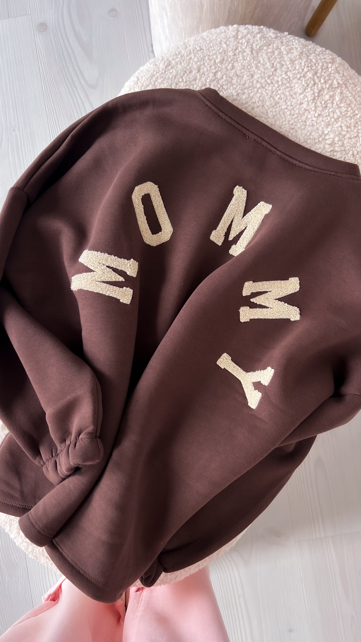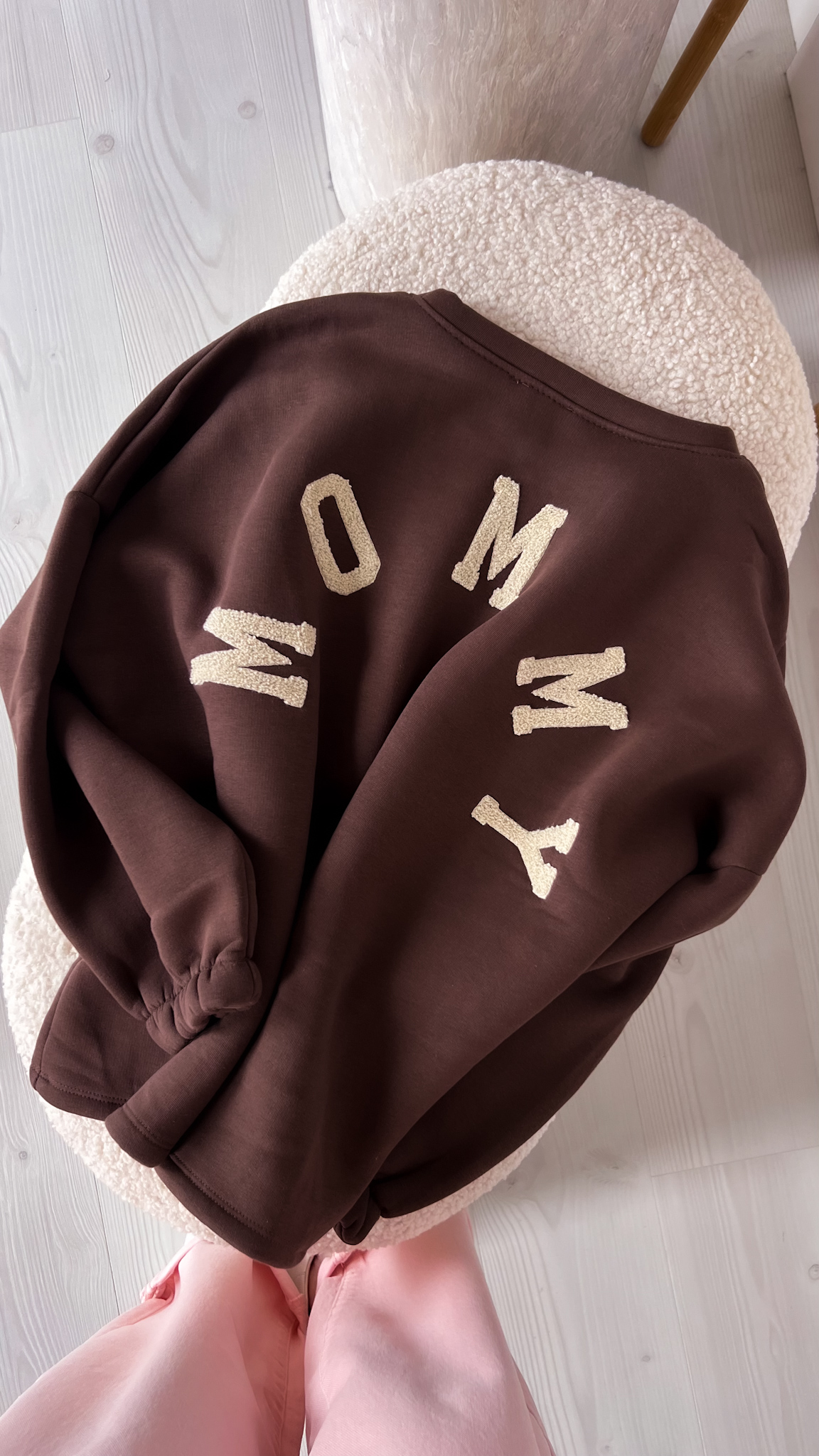 ✨ Wyrazisty napis na plecach „MOMMY” – minimalistyczny, a jednocześnie przyciągający uwagę detal.
