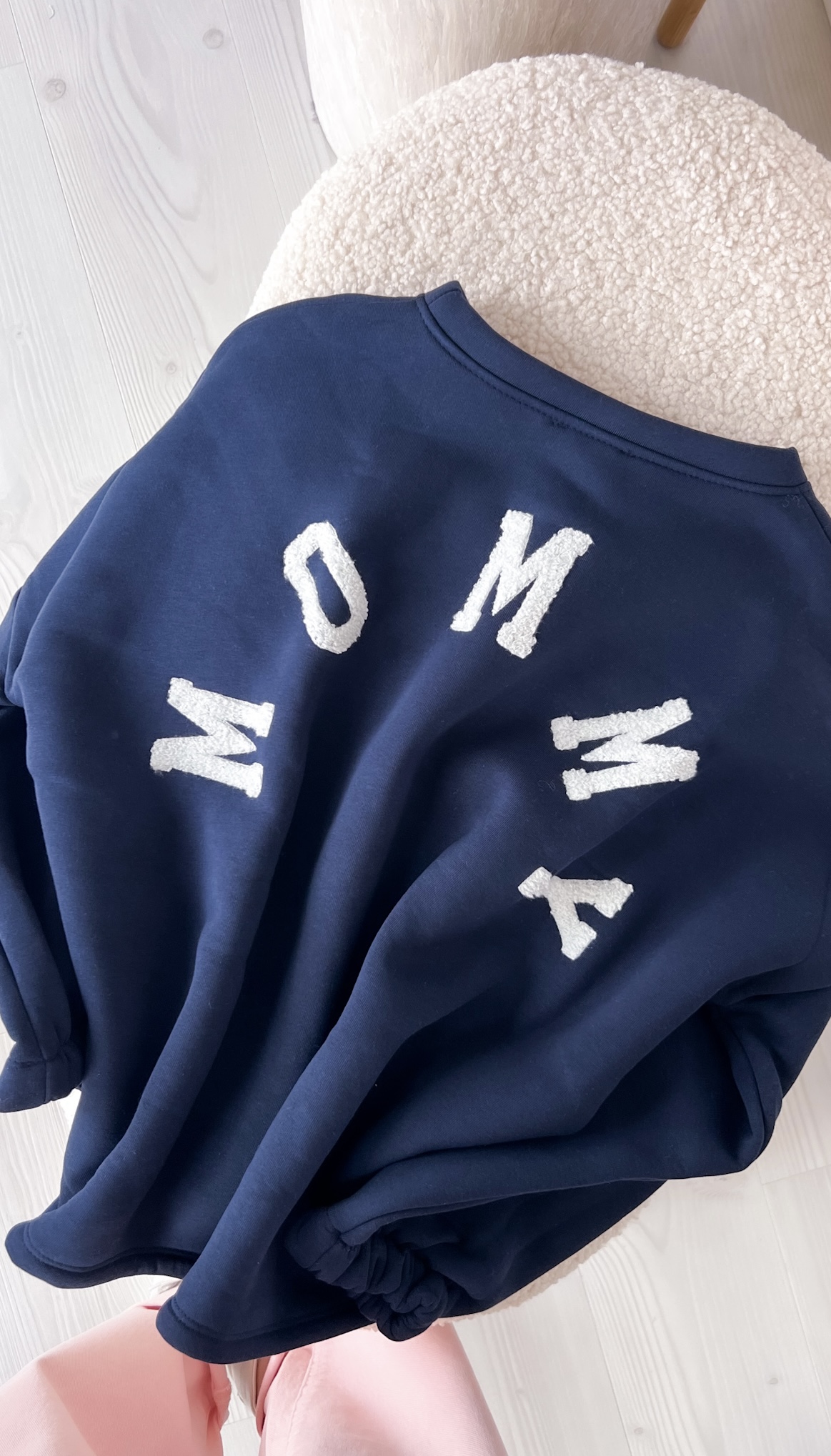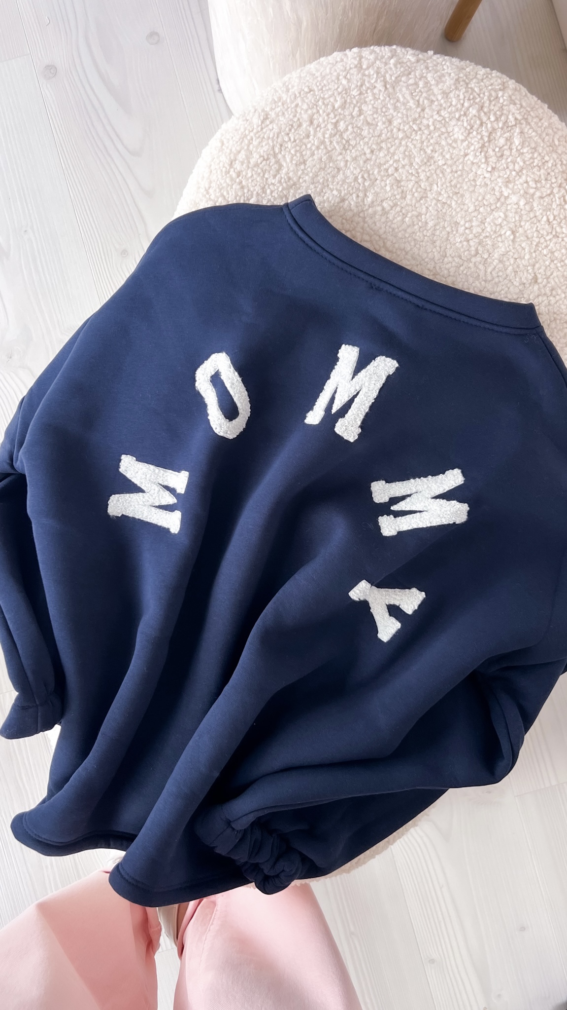 ✨ Wyrazisty napis na plecach „MOMMY” – minimalistyczny, a jednocześnie przyciągający uwagę detal.