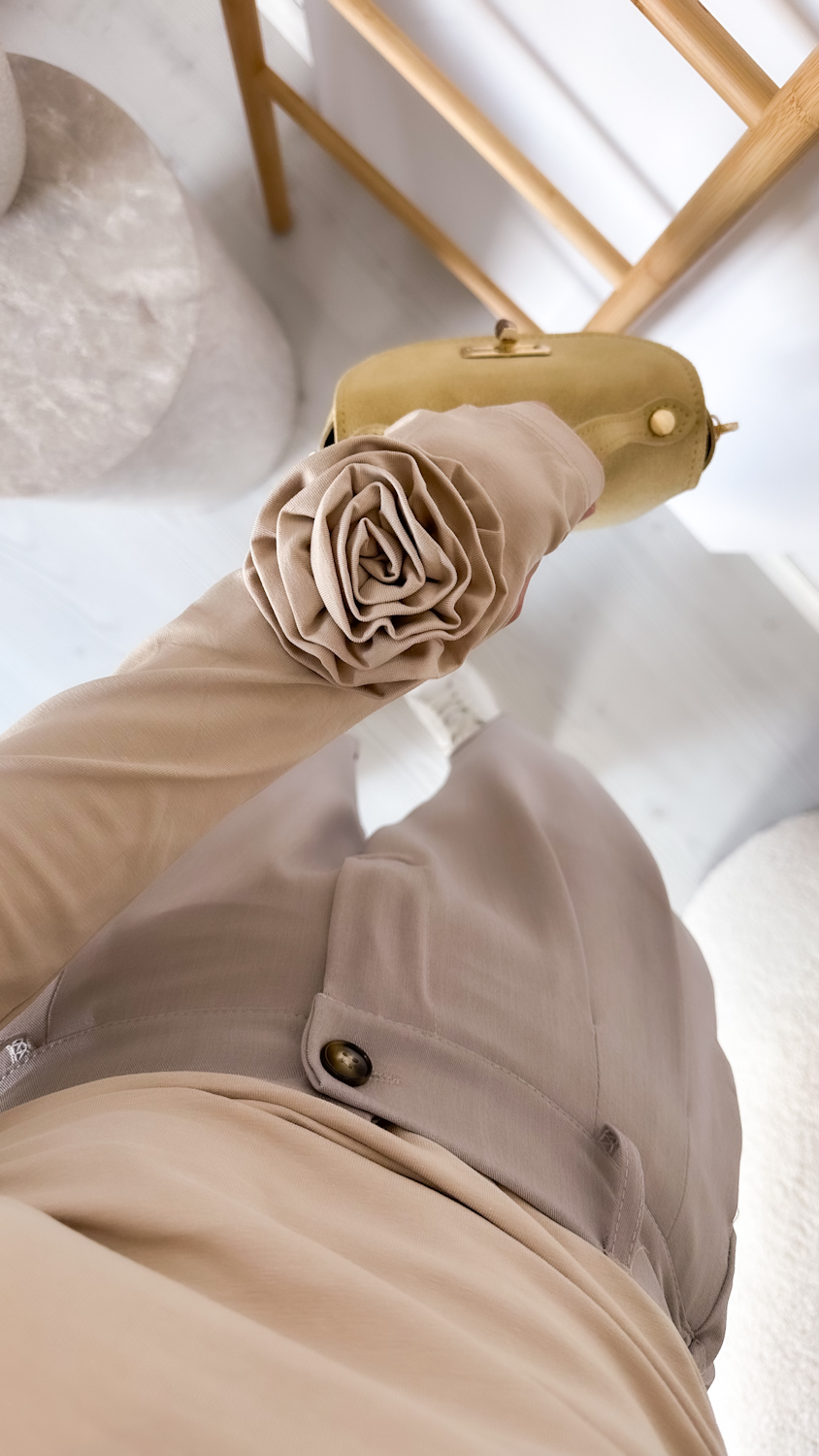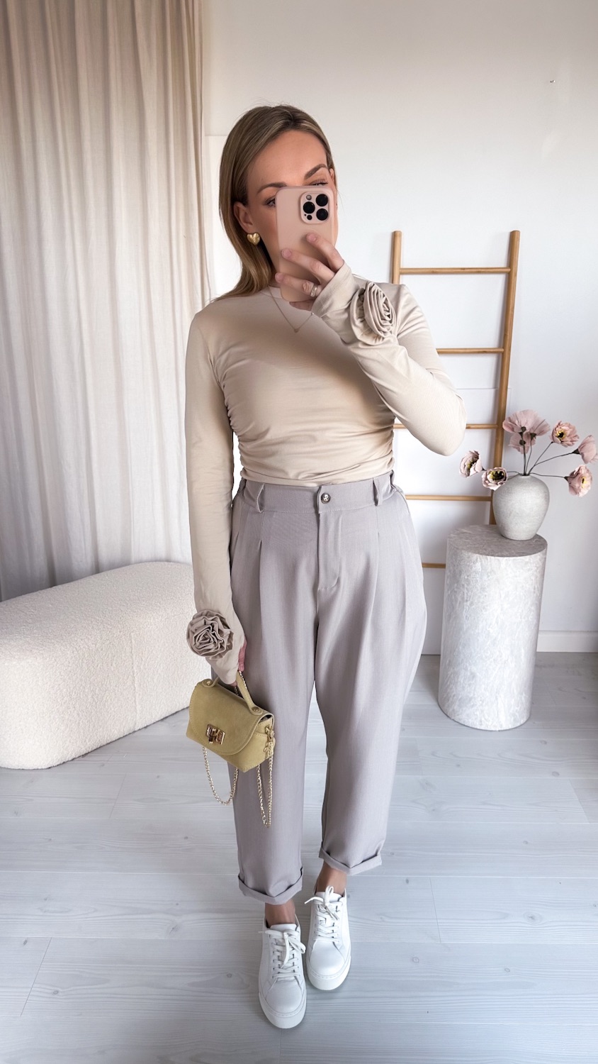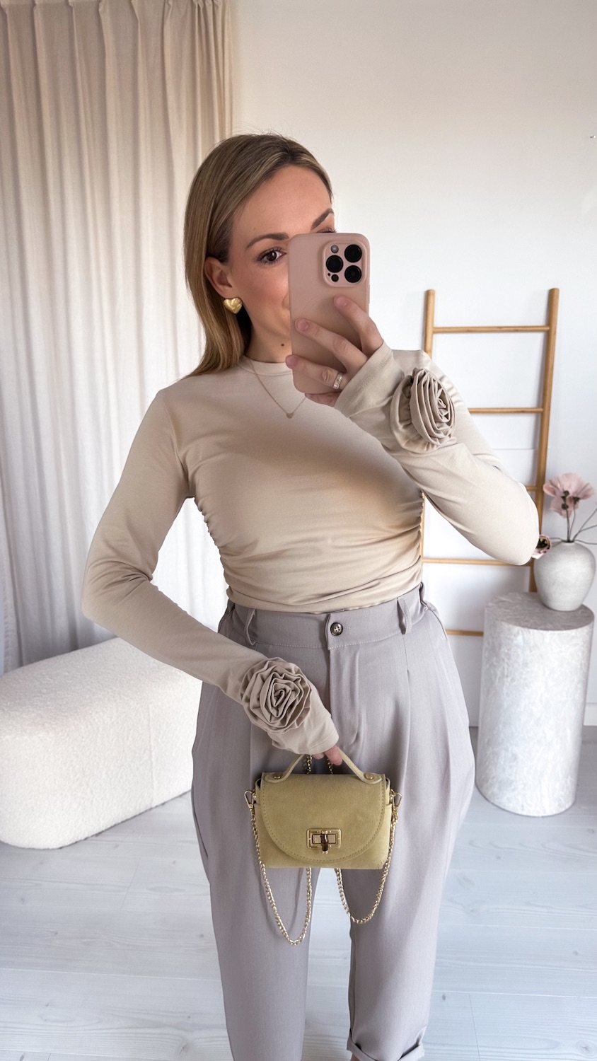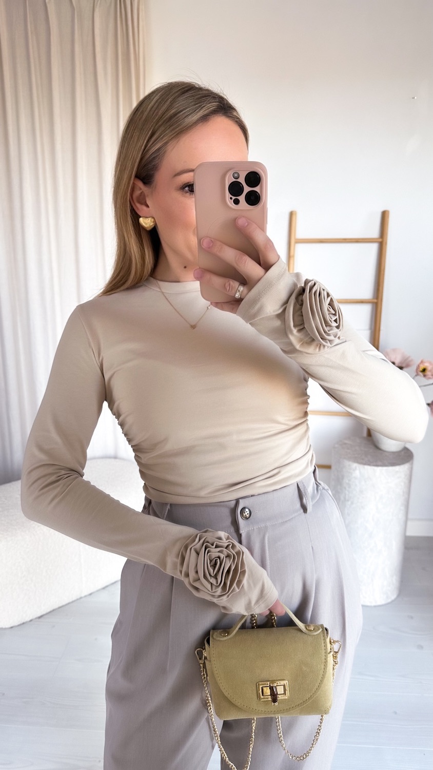Stylowa i ponadczasowa bluzka wykonana z wysokiej jakości, miękkiej bawełny, która zapewnia komfort noszenia przez cały dzień. Model z długim rękawem został ozdobiony efektowną różą 3D, nadającą całości wyjątkowego, kobiecego charakteru.