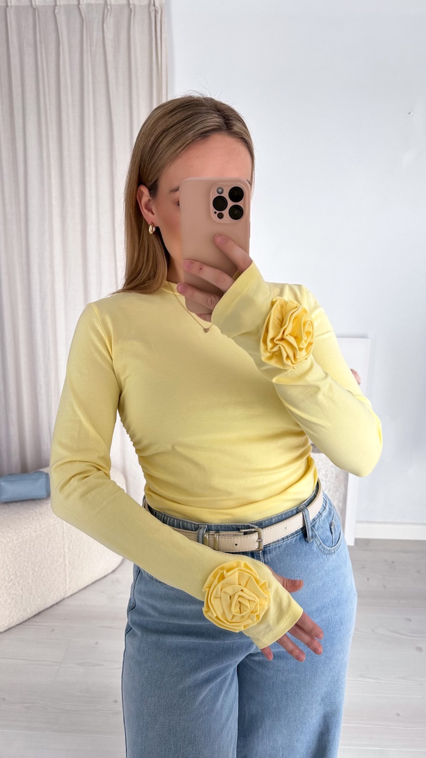 Bawełniana bluzka z długim rękawem z różą 3D