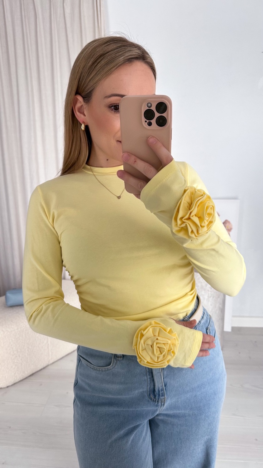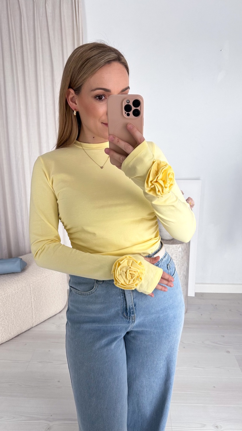 Stylowa i ponadczasowa bluzka wykonana z wysokiej jakości, miękkiej bawełny, która zapewnia komfort noszenia przez cały dzień. Model z długim rękawem został ozdobiony efektowną różą 3D, nadającą całości wyjątkowego, kobiecego charakteru.