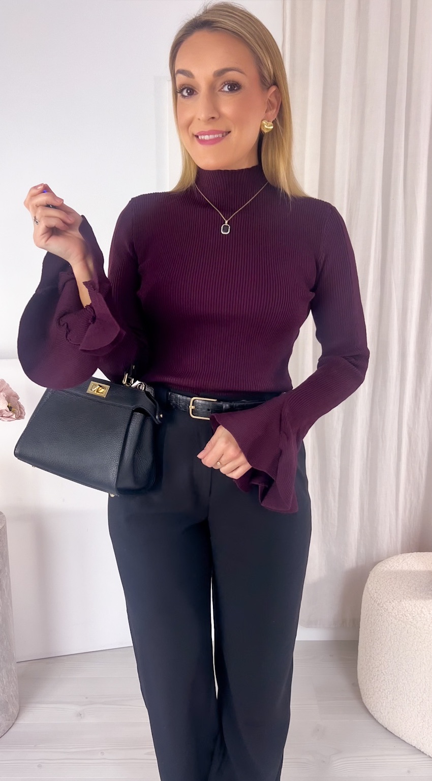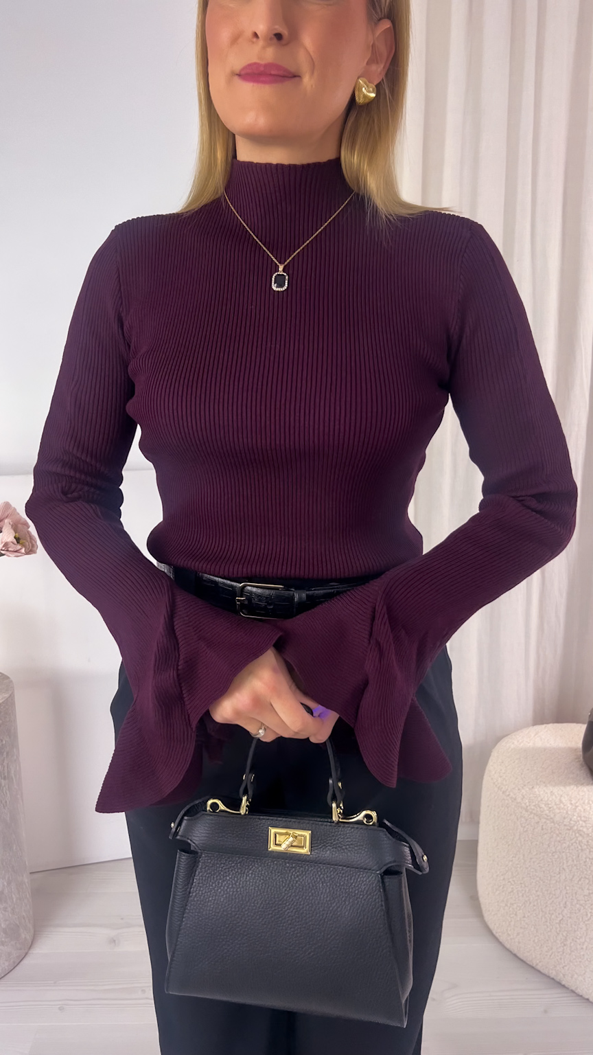 Szczególną uwagę przyciągają pięknie rozkloszowane rękawy, które dodają całości lekkości, wyjątkowego charakteru i delikatnie romantycznego akcentu. Półgolf subtelnie wysmukla szyję, nadając bluzce elegancki, ponadczasowy wygląd.