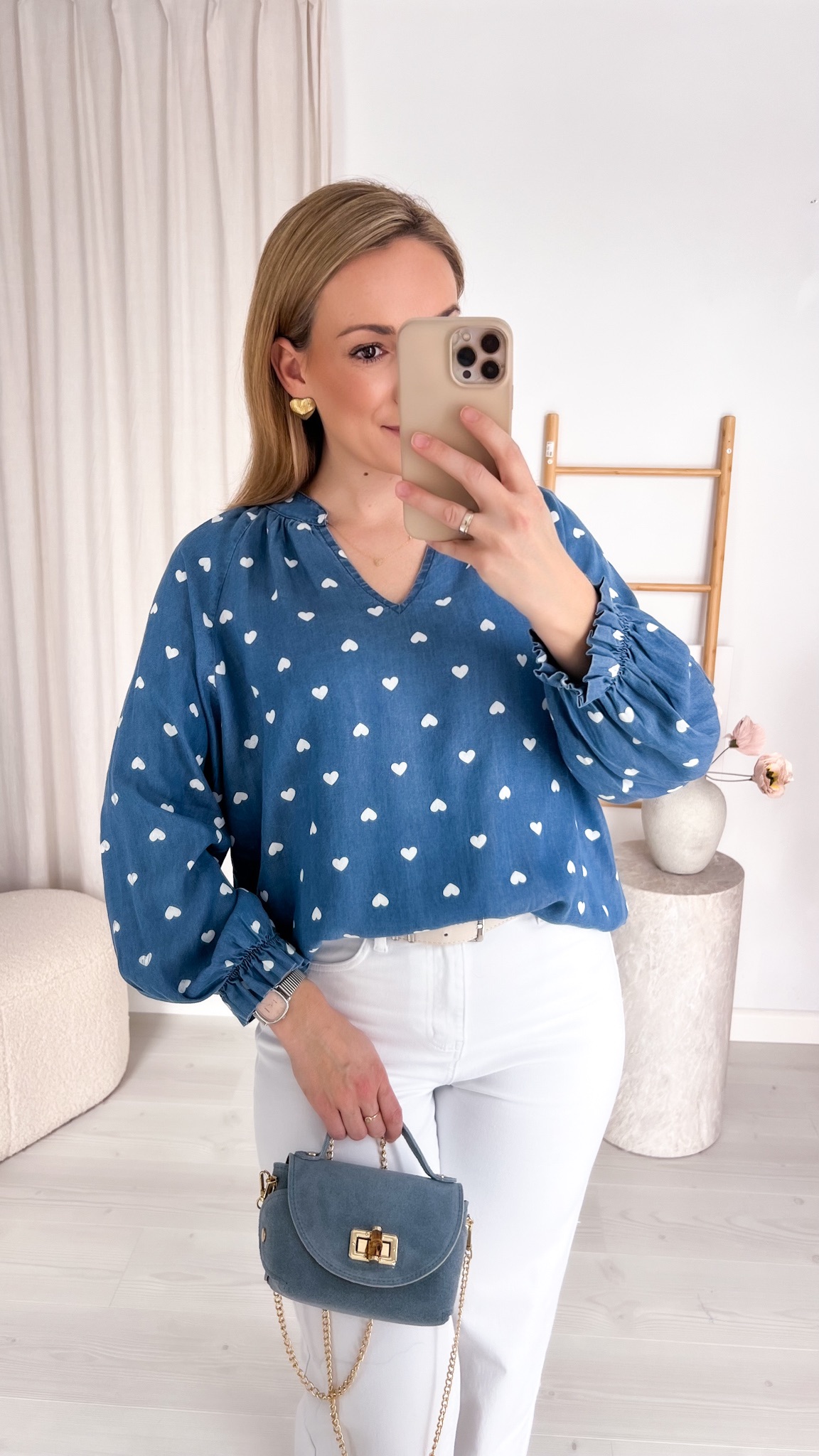 Jeśli szukasz bluzki, która będzie wygodna, stylowa i inna niż wszystkie – ten denimowy model w serduszka będzie strzałem w dziesiątkę.