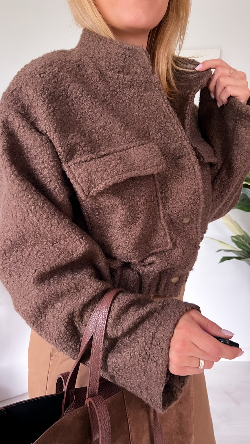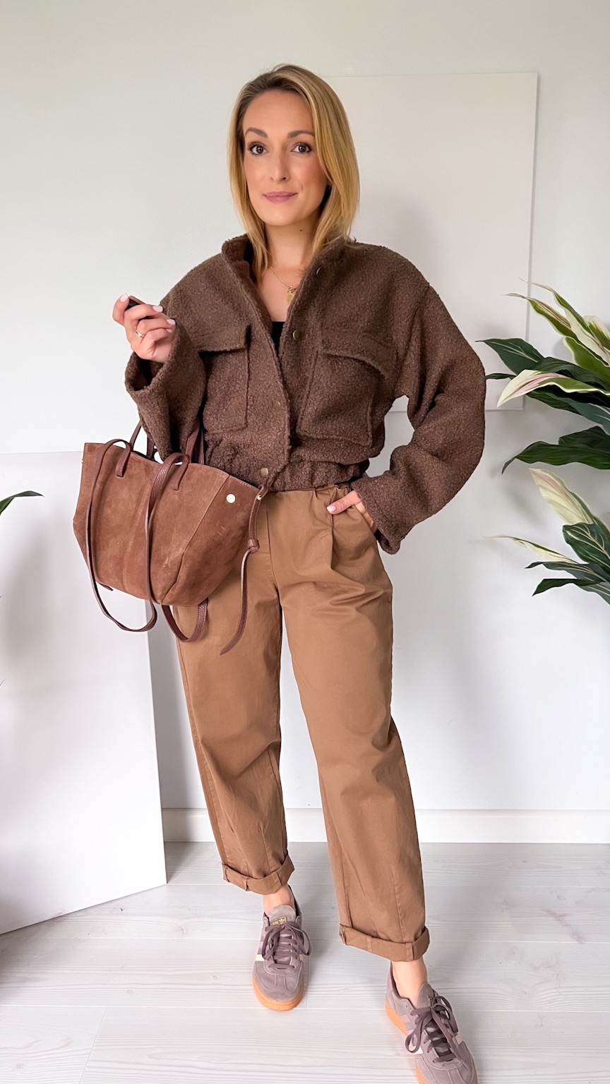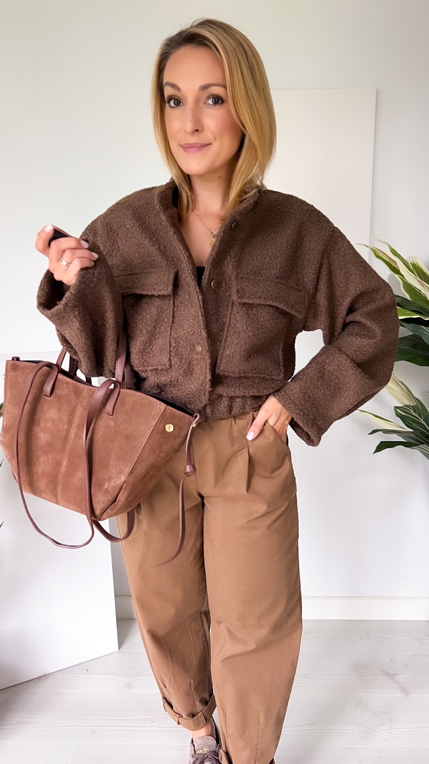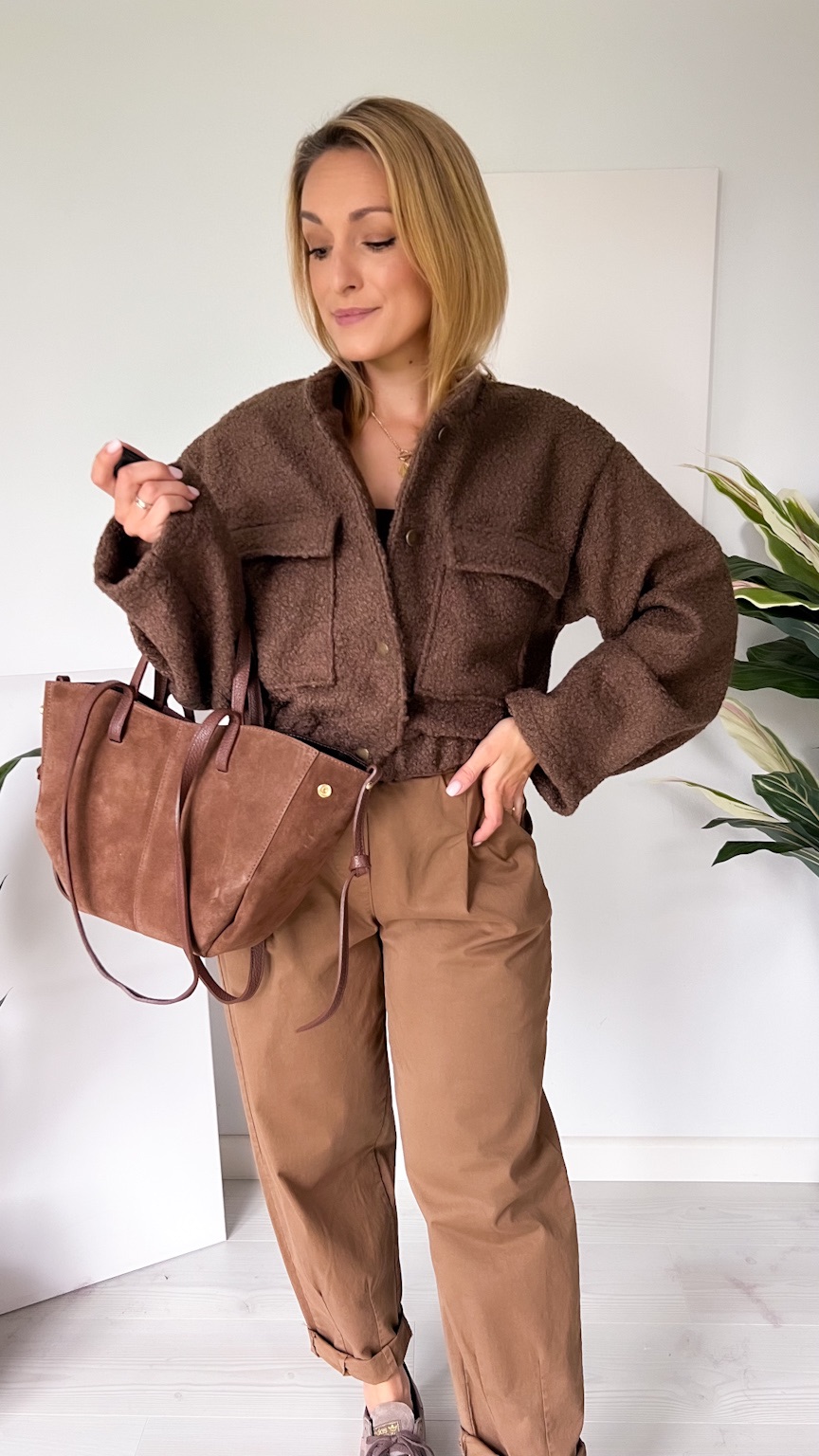 Jesienna bomberka z tkaniny „baranka” to połączenie stylu i wygody, które świetnie dopełni Twoje jesienne stylizacje. Miękka, przytulna faktura nadaje jej wyjątkowego charakteru, a klasyczny krój bomberki sprawia, że pasuje zarówno do casualowych, jak i bardziej eleganckich zestawów.