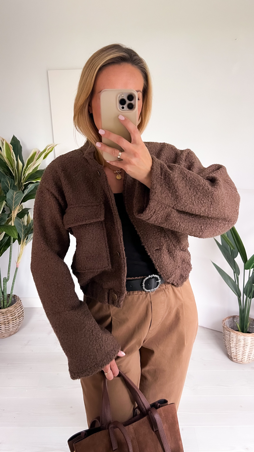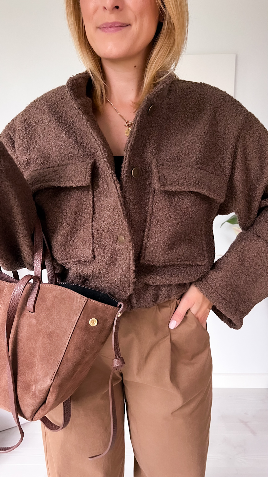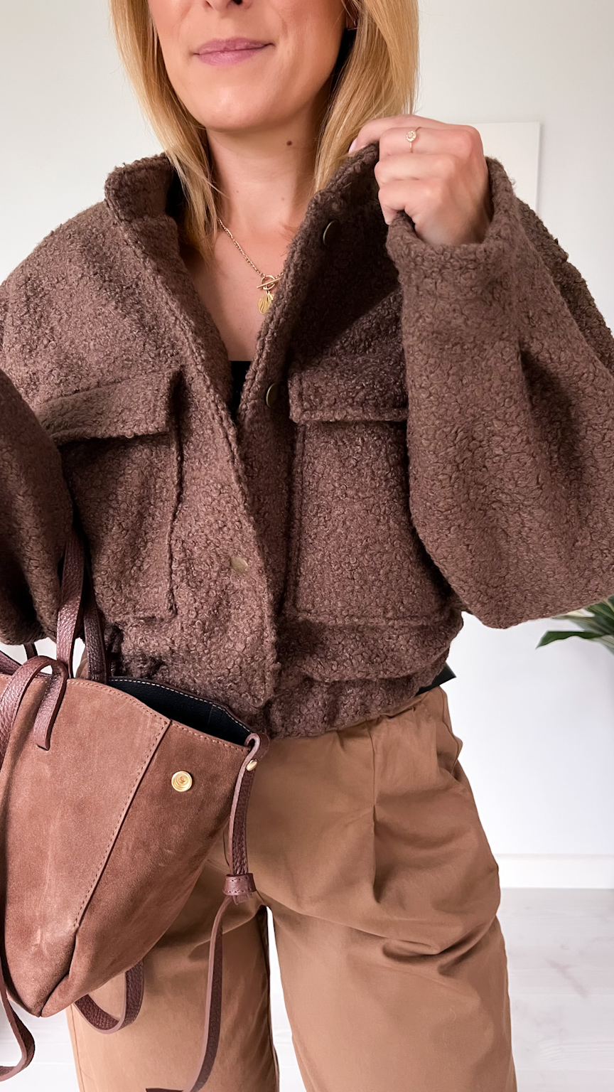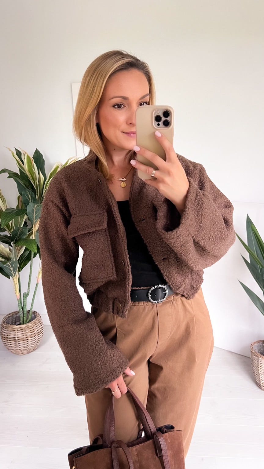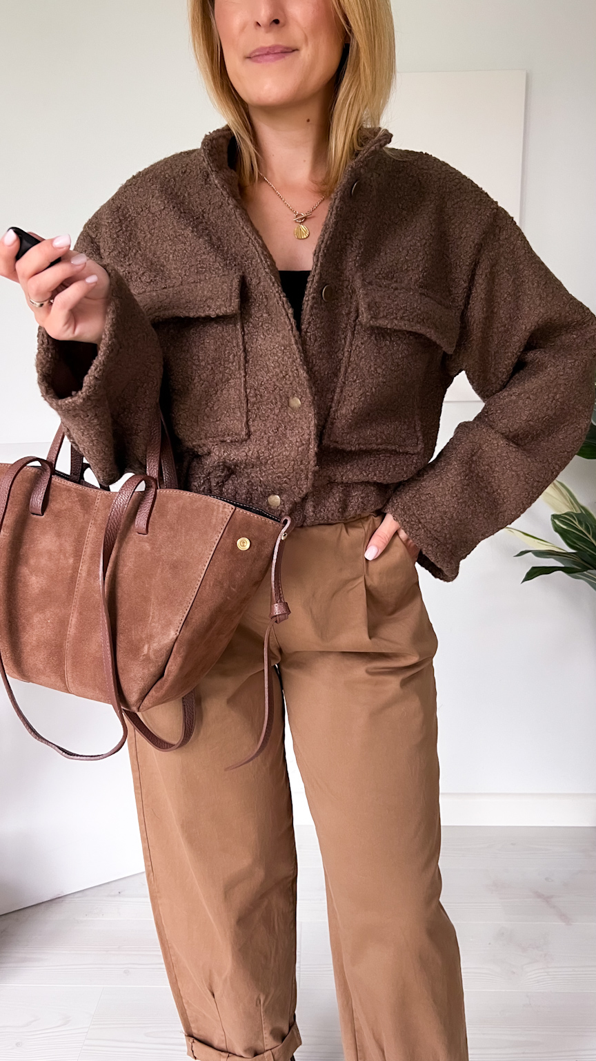 Jesienna bomberka z tkaniny „baranka” to połączenie stylu i wygody, które świetnie dopełni Twoje jesienne stylizacje. Miękka, przytulna faktura nadaje jej wyjątkowego charakteru, a klasyczny krój bomberki sprawia, że pasuje zarówno do casualowych, jak i bardziej eleganckich zestawów.