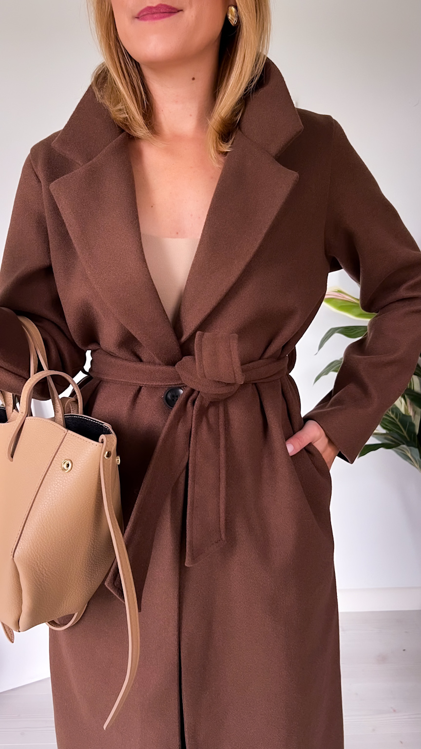 Wprowadź do swojej jesiennej garderoby nutę klasy i przytulnego ciepła. Ten płaszcz w głębokim, czekoladowym odcieniu to idealny wybór na chłodniejsze dni. Jego ponadczasowy krój łączy elegancję z wygodą, a szlachetny kolor pięknie komponuje się z sezonową paletą barw – od karmelowych brązów po kremowe beże i oliwkowe zielenie.