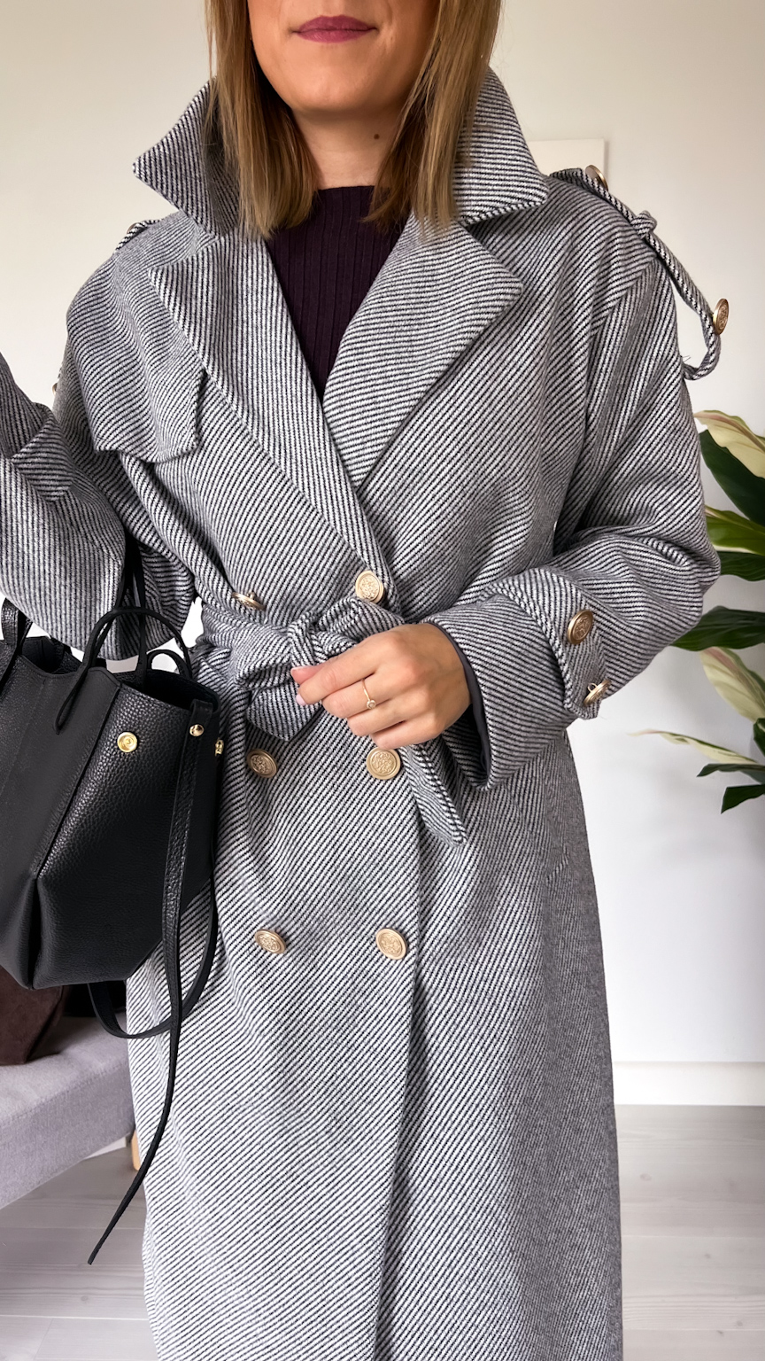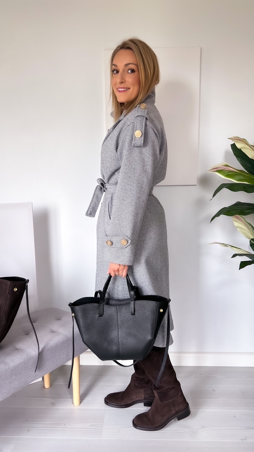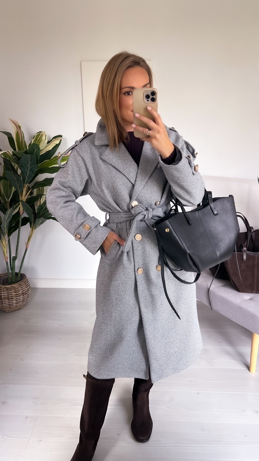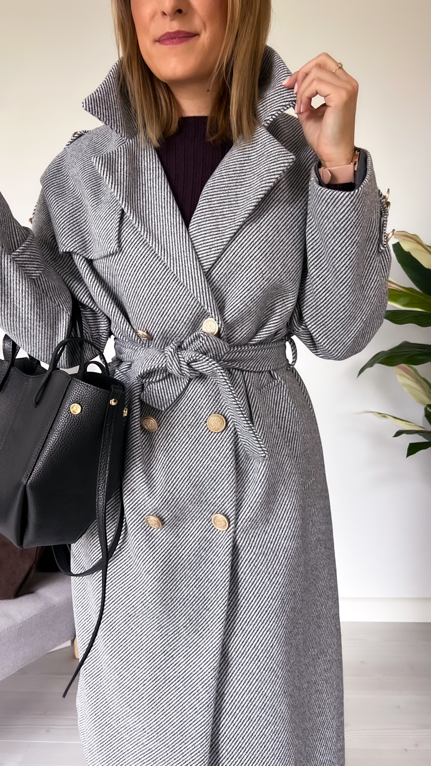 Długi jesienny płaszcz TRENDY jodełka czerń i biel