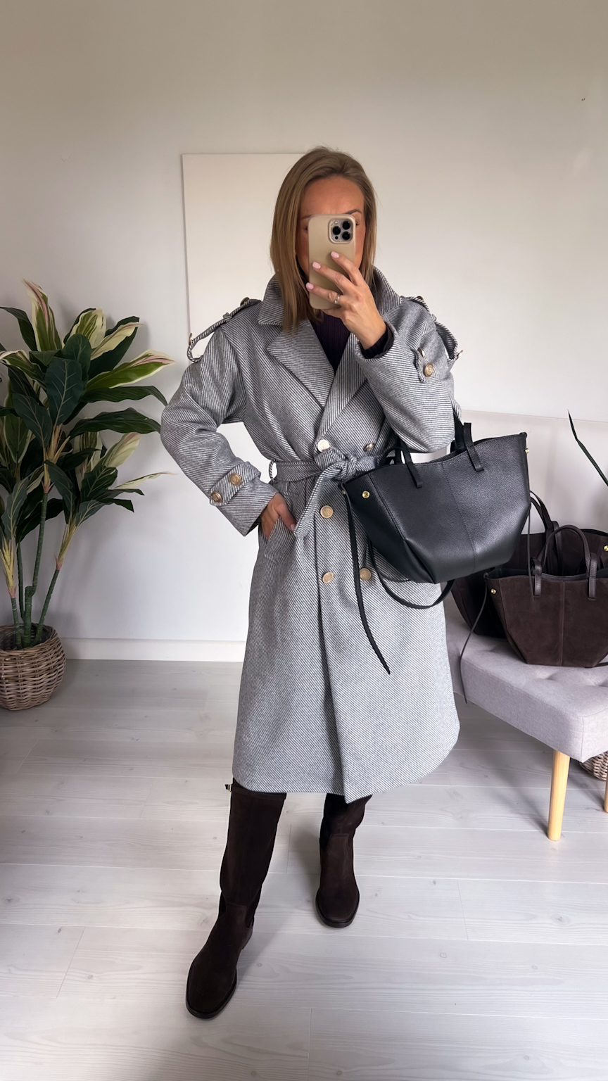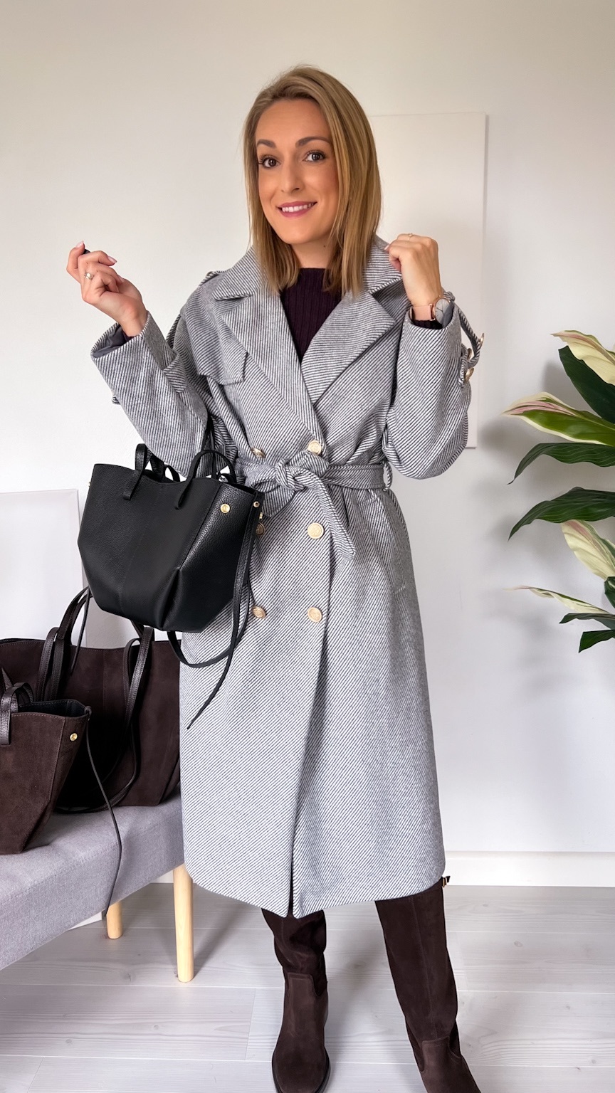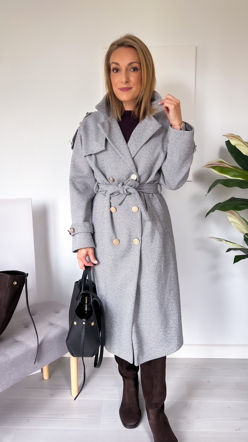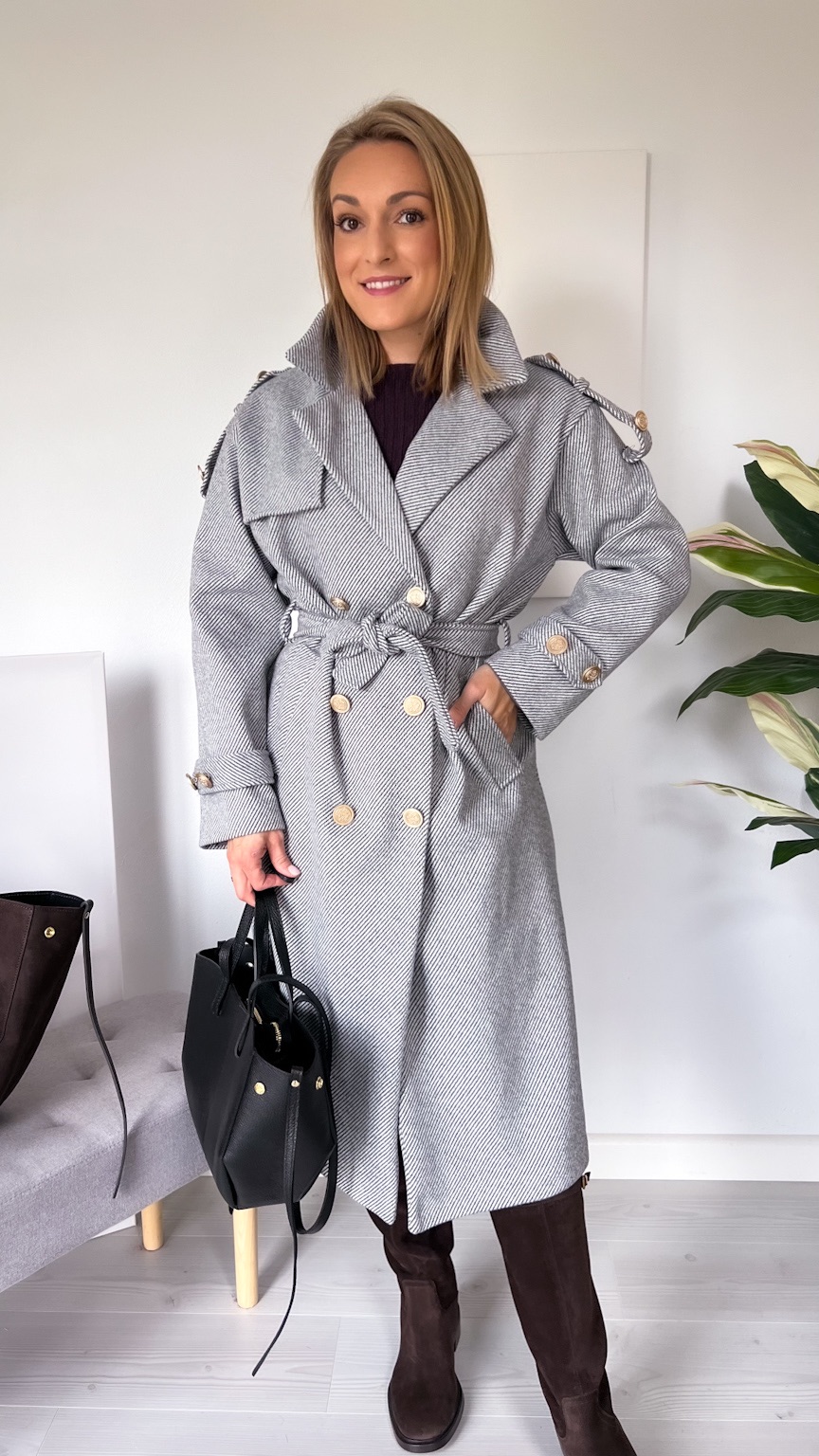 Stylowy i kobiecy – ten płaszcz to idealny wybór na jesienne dni. Wykonany bez podszewki, zachwyca lekkością i komfortem noszenia. Model zapinany na guziki z dodatkowym wiązaniem w pasie pięknie podkreśla sylwetkę, a praktyczne kieszenie dodają mu funkcjonalności. Całość zdobi wyjątkowy, modowy kołnierz, który sprawia, że płaszcz staje się efektownym elementem każdej stylizacji.