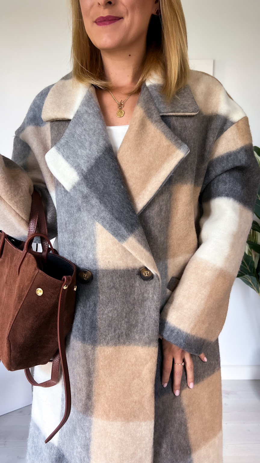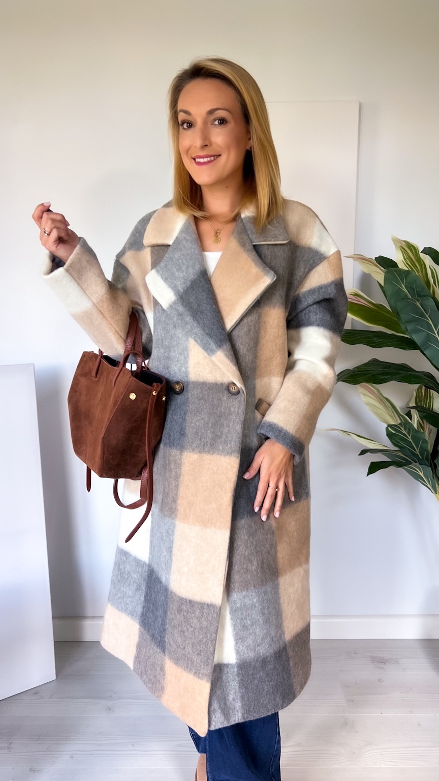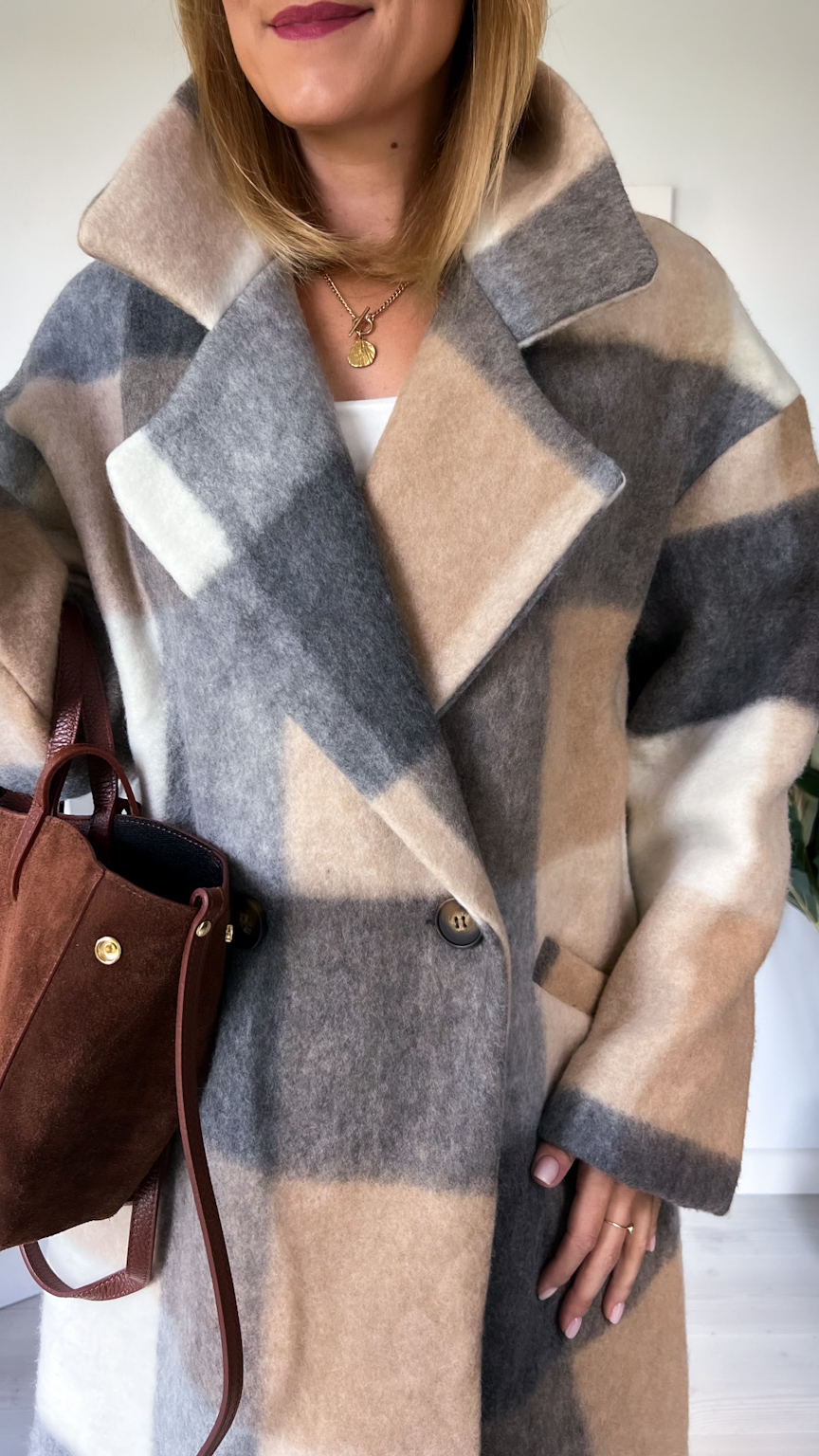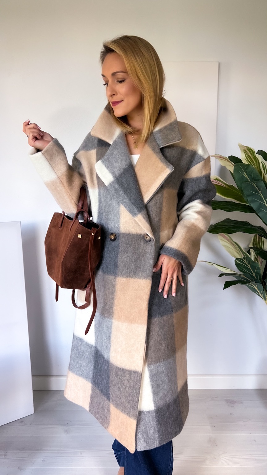 Długi wełniany płaszcz w kratę – klasyka w najlepszym wydaniu