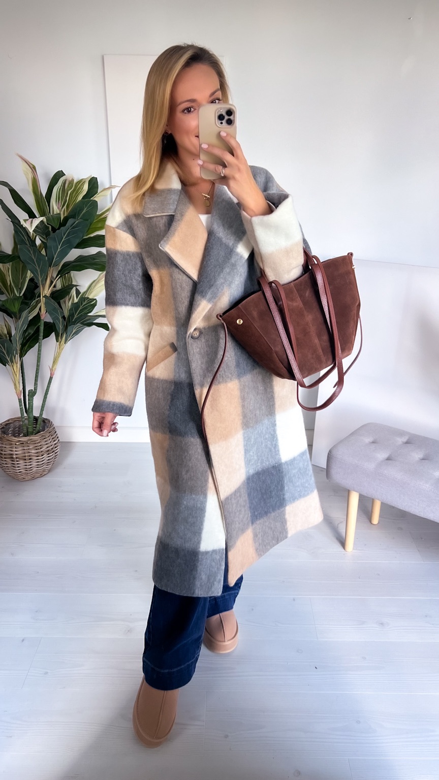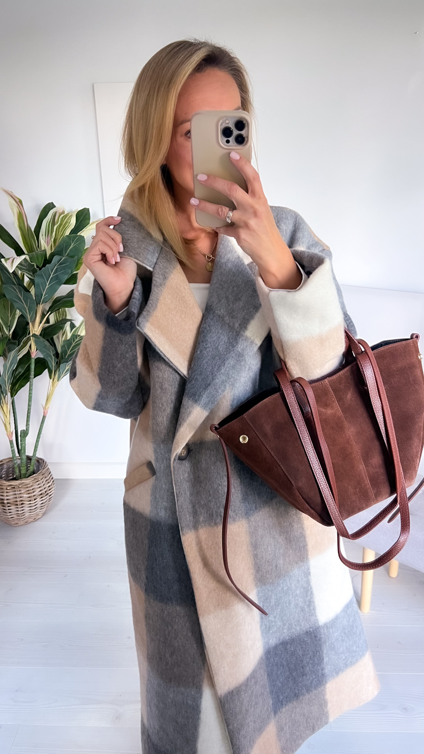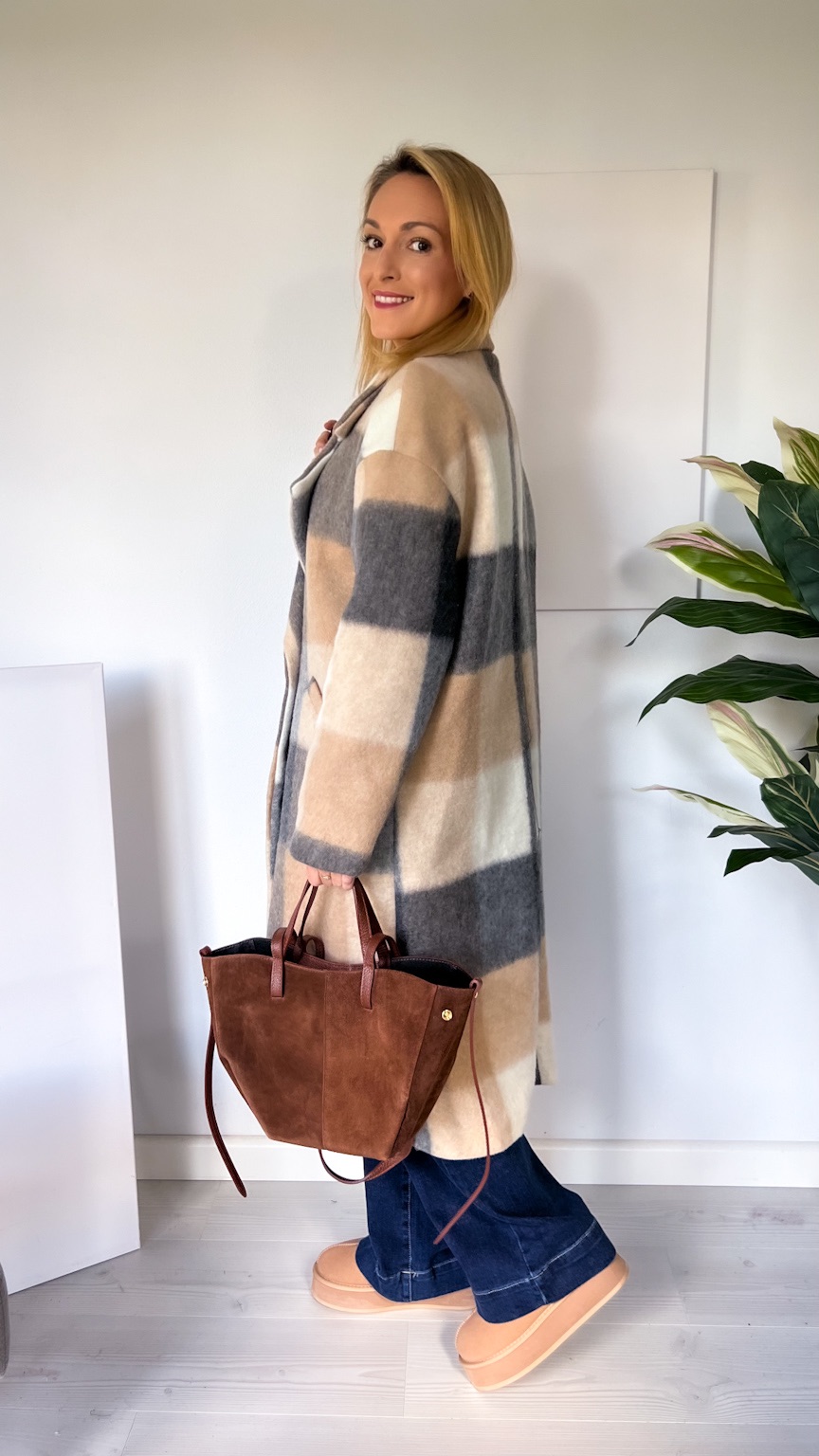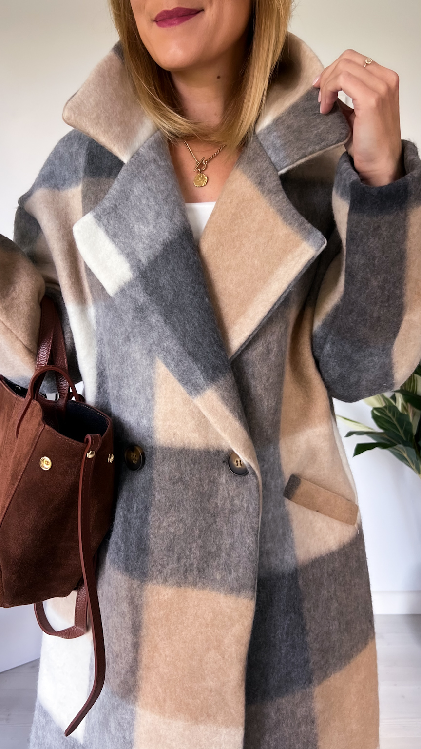 Długi wełniany płaszcz w kratę – klasyka w najlepszym wydaniu