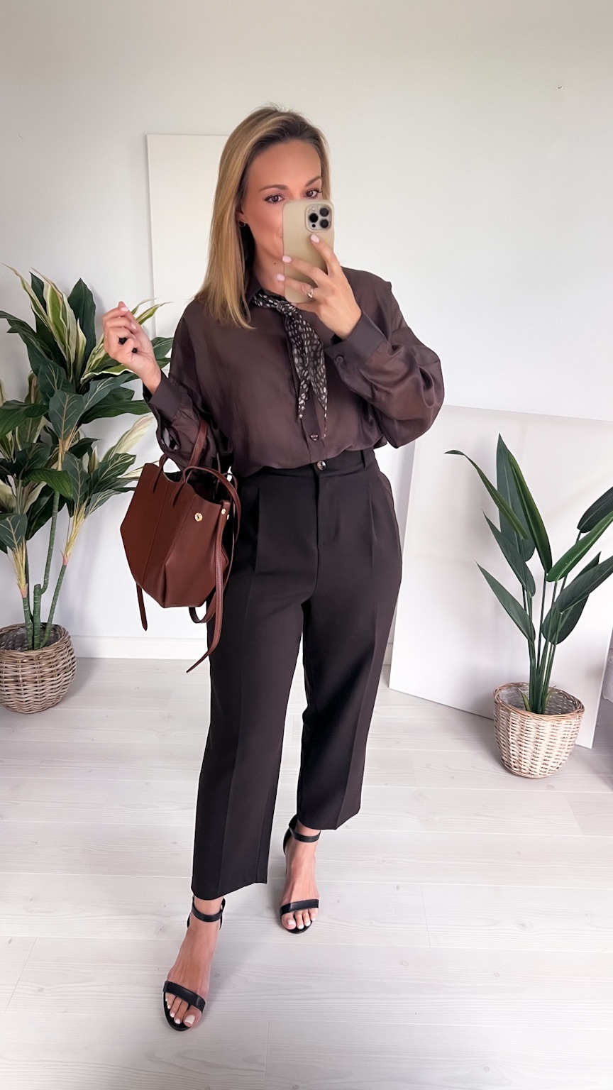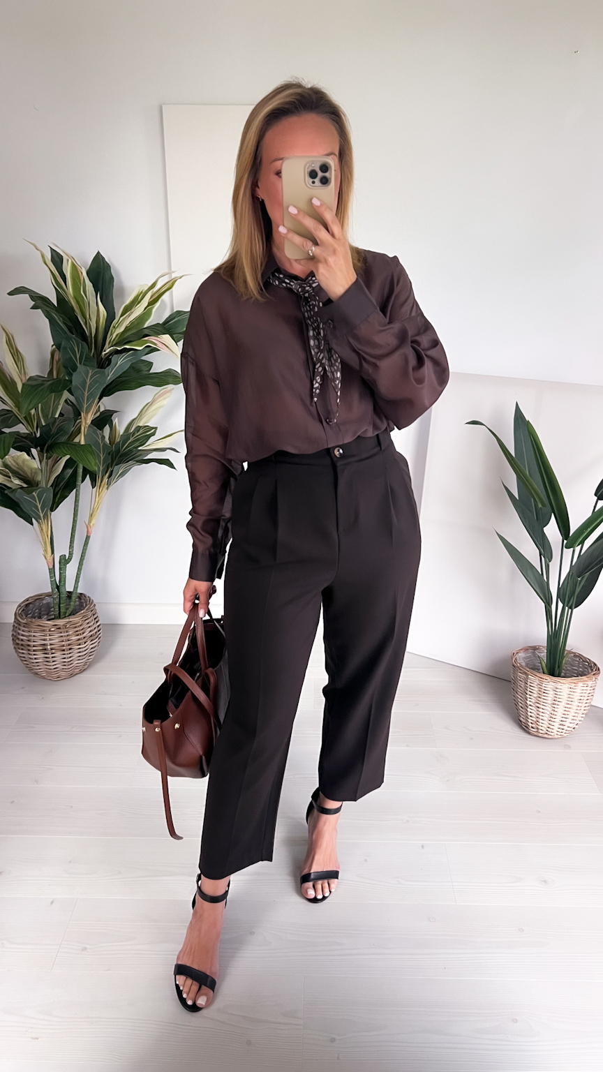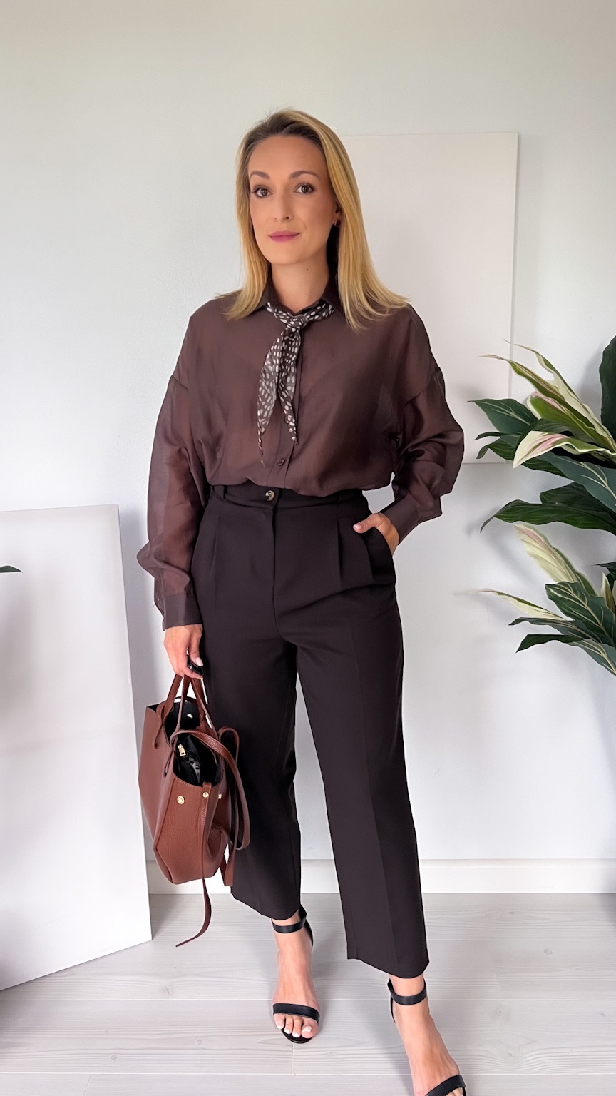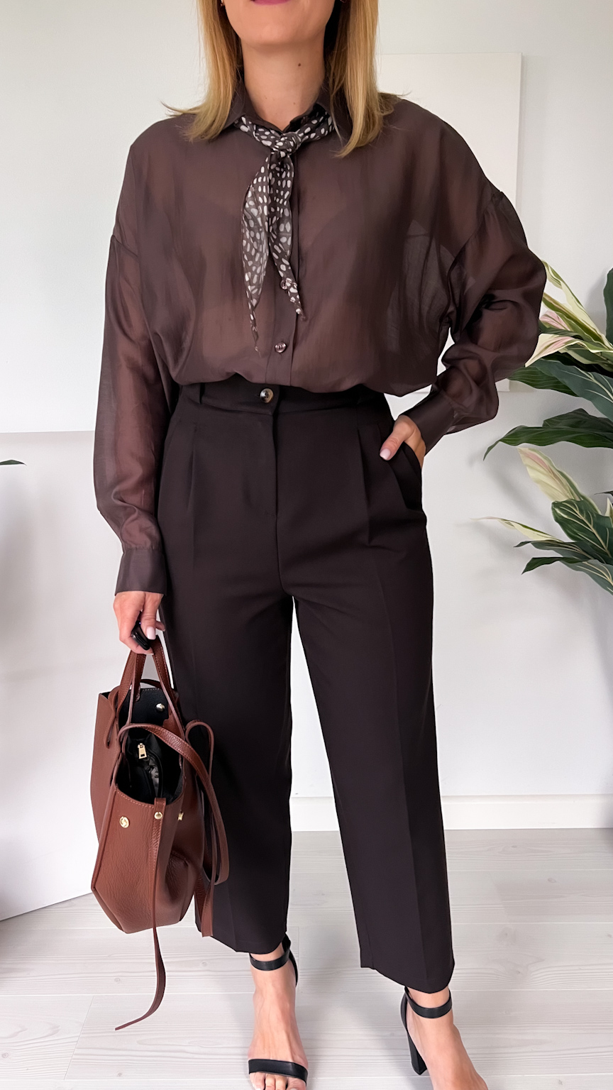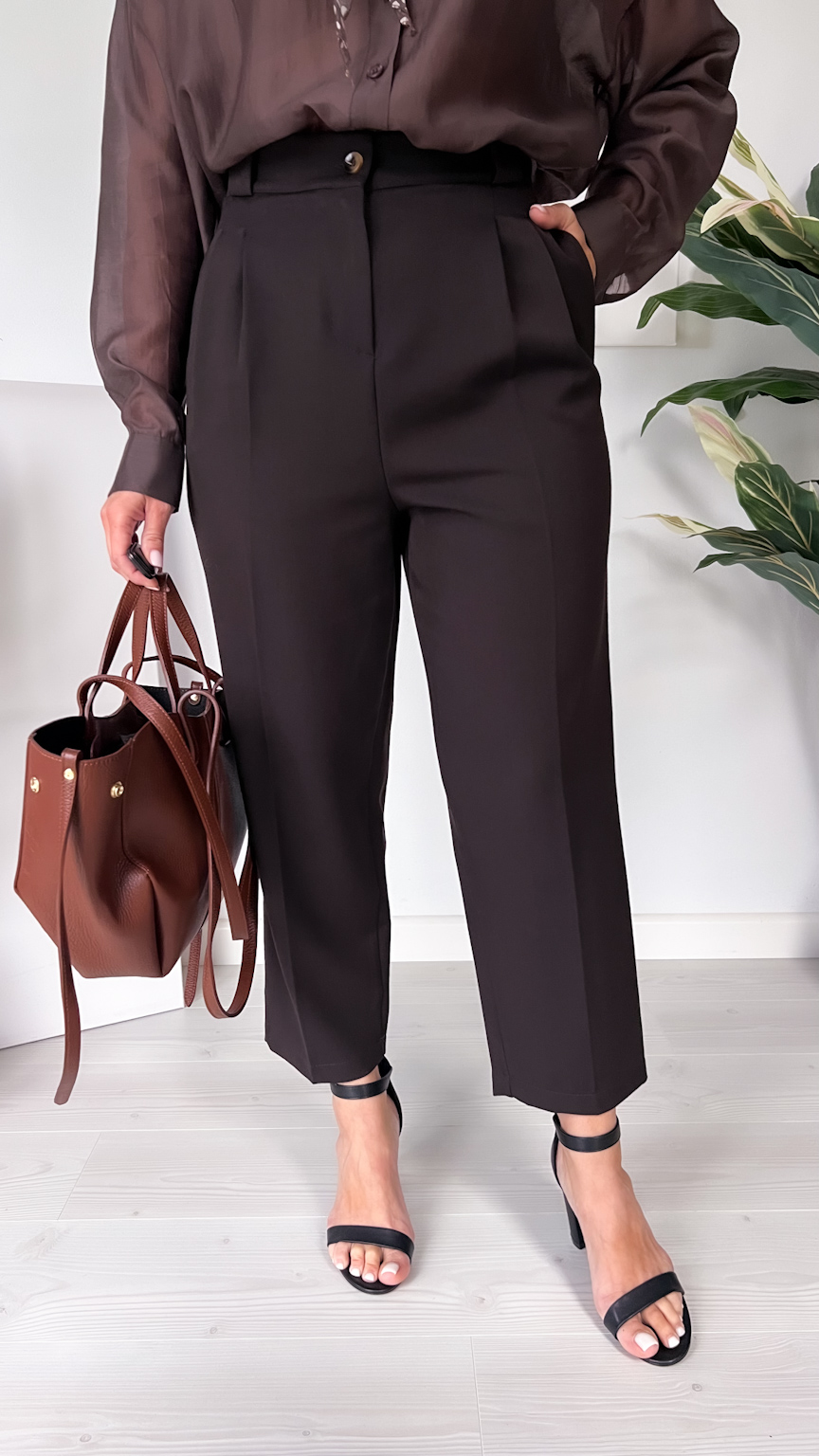 Spodnie eleganckie do kostki – kolor głębokiej czekolady