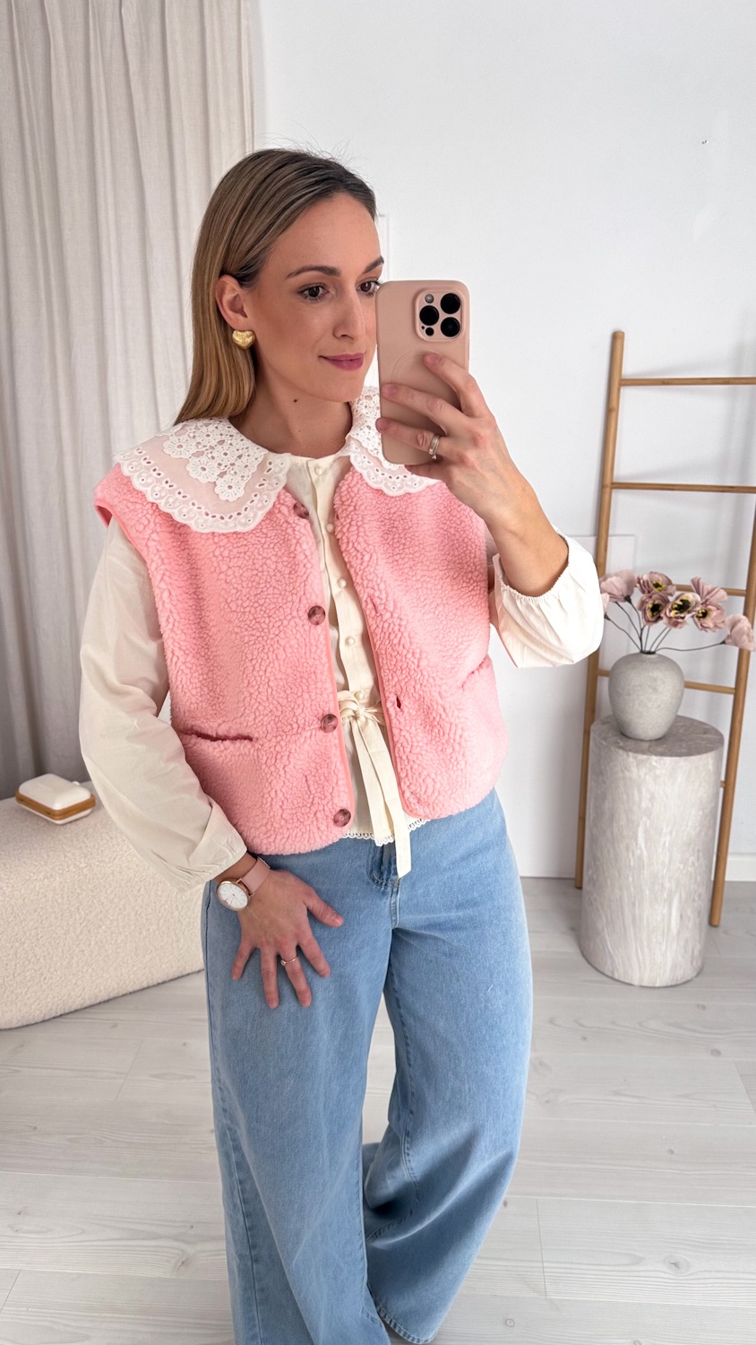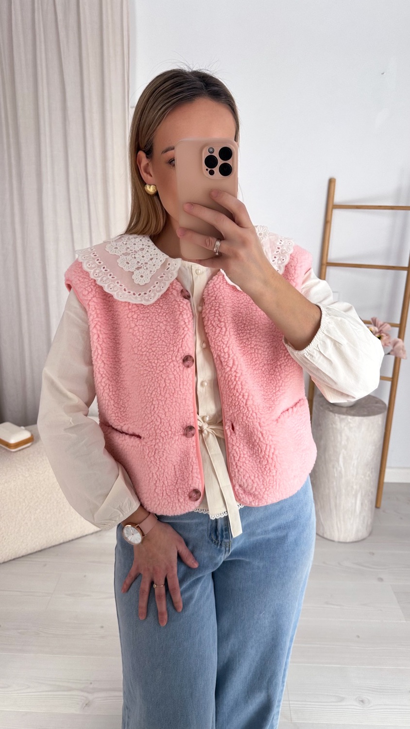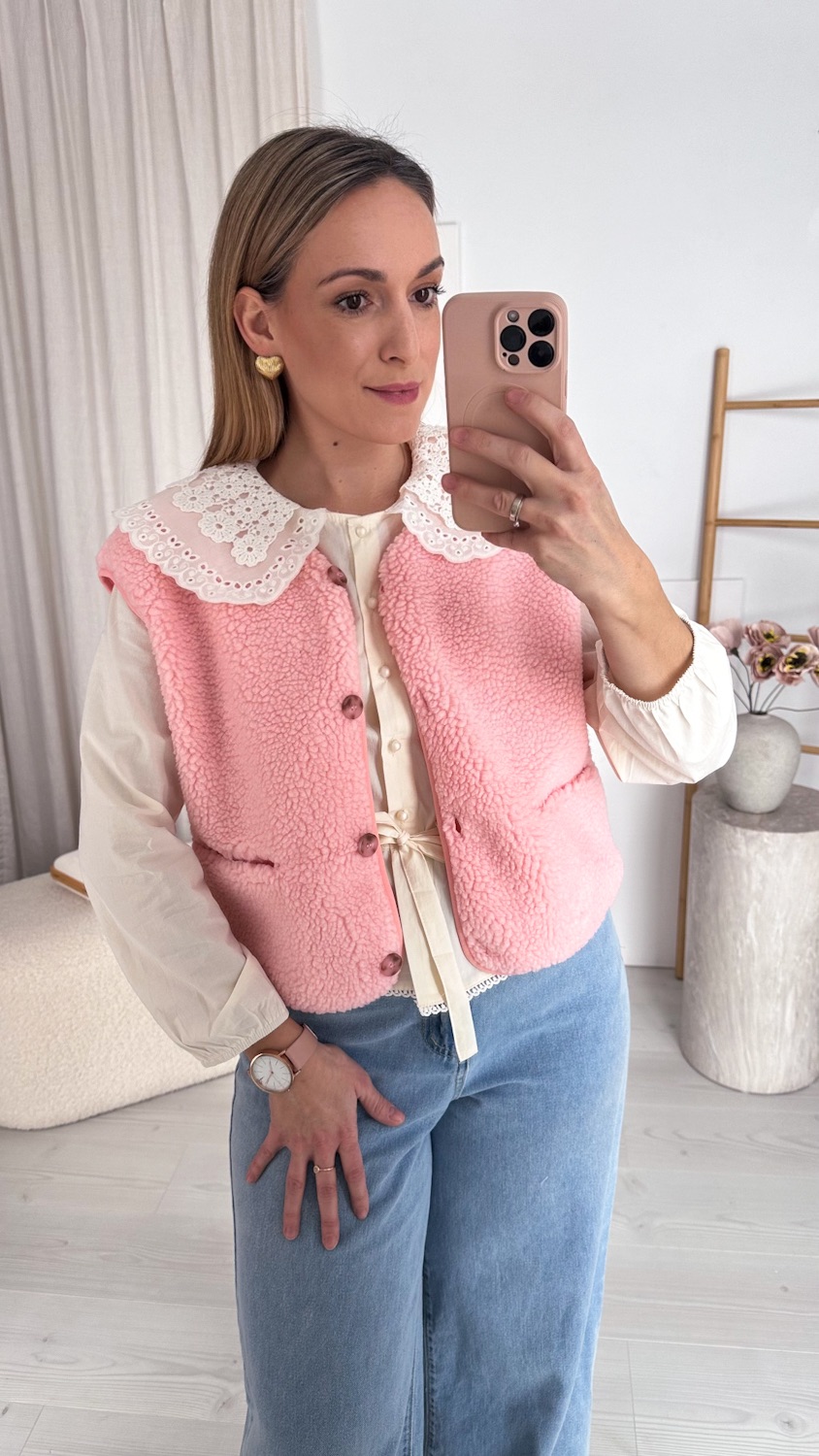 Stylowa prostota w najbardziej przytulnym wydaniu. Ta kamizelka typu baranek to idealny wybór na chłodniejsze dni dla kobiet, które cenią wygodę, ciepło i ponadczasowy styl.