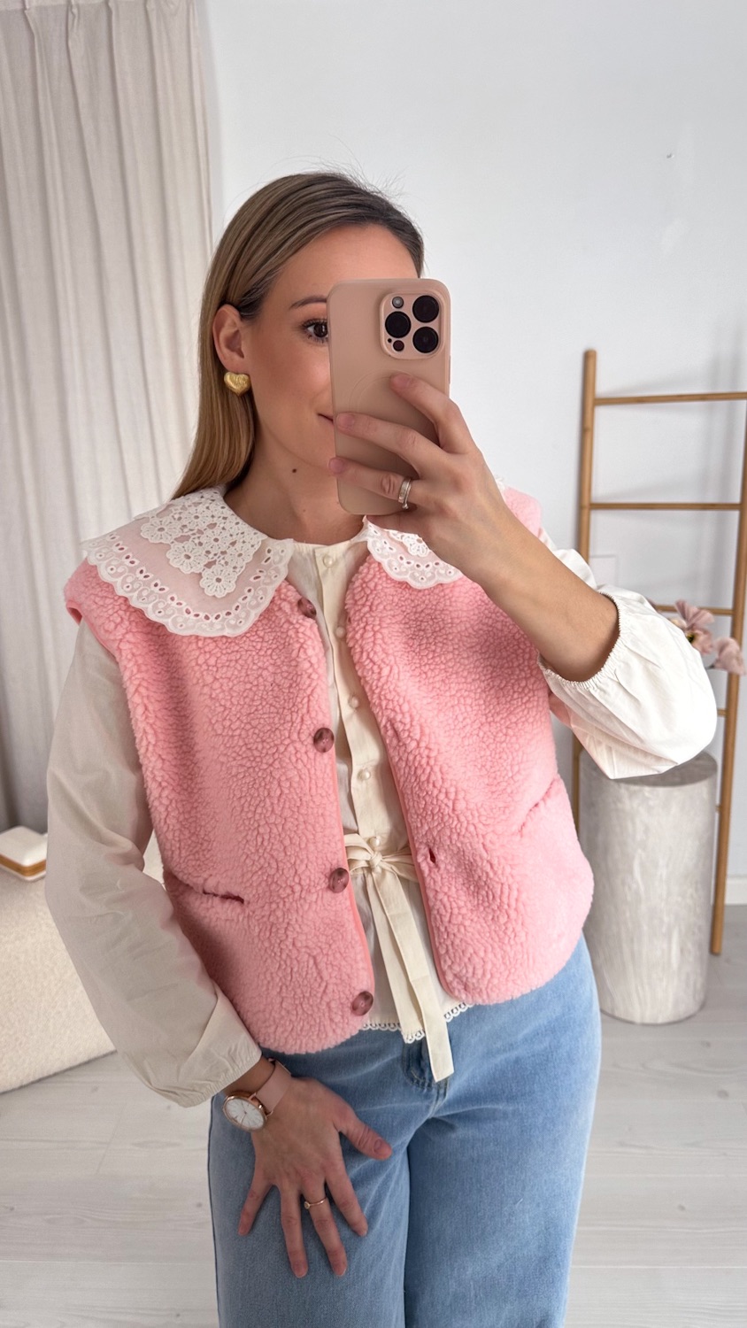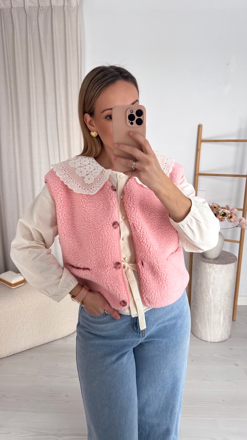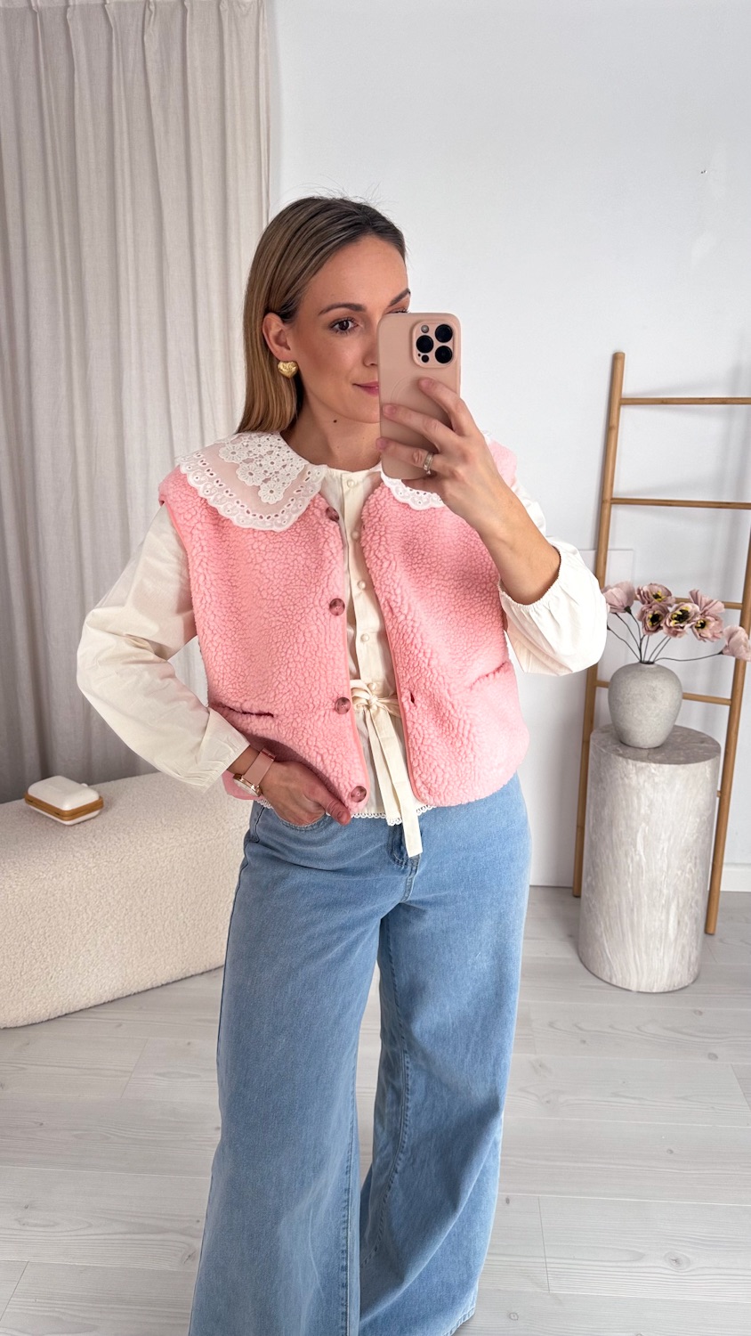 Stylowa prostota w najbardziej przytulnym wydaniu. Ta kamizelka typu baranek to idealny wybór na chłodniejsze dni dla kobiet, które cenią wygodę, ciepło i ponadczasowy styl.