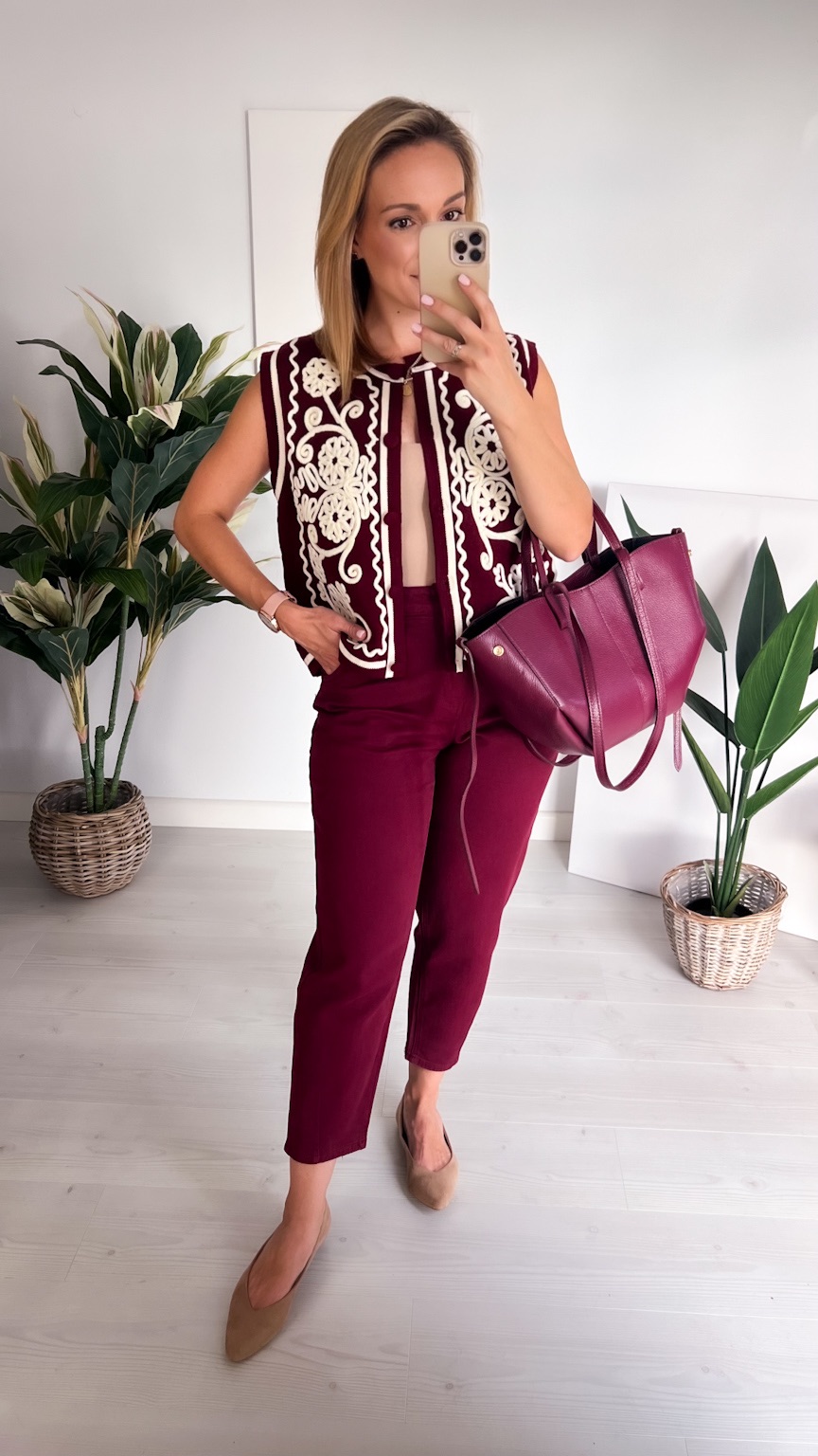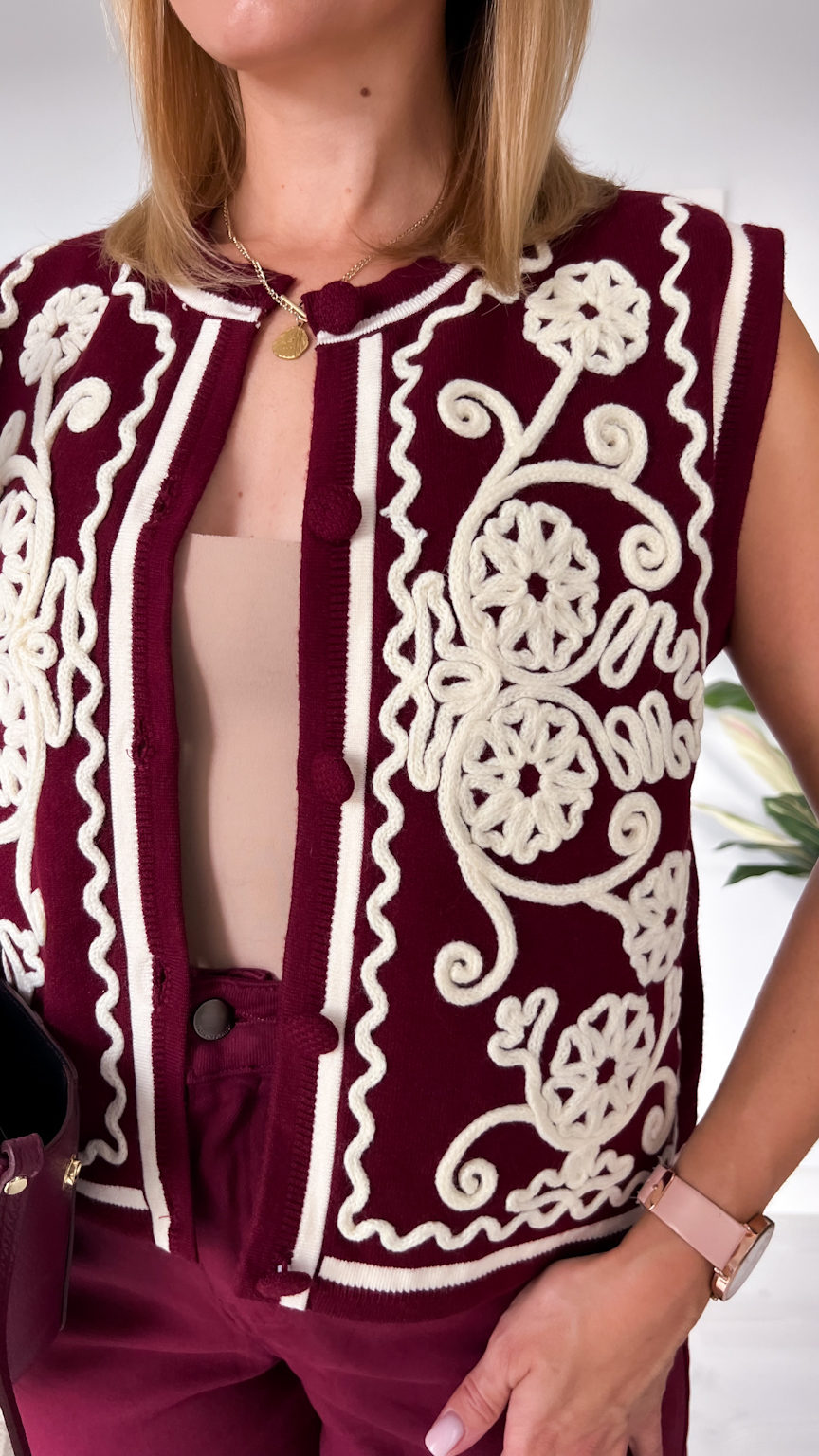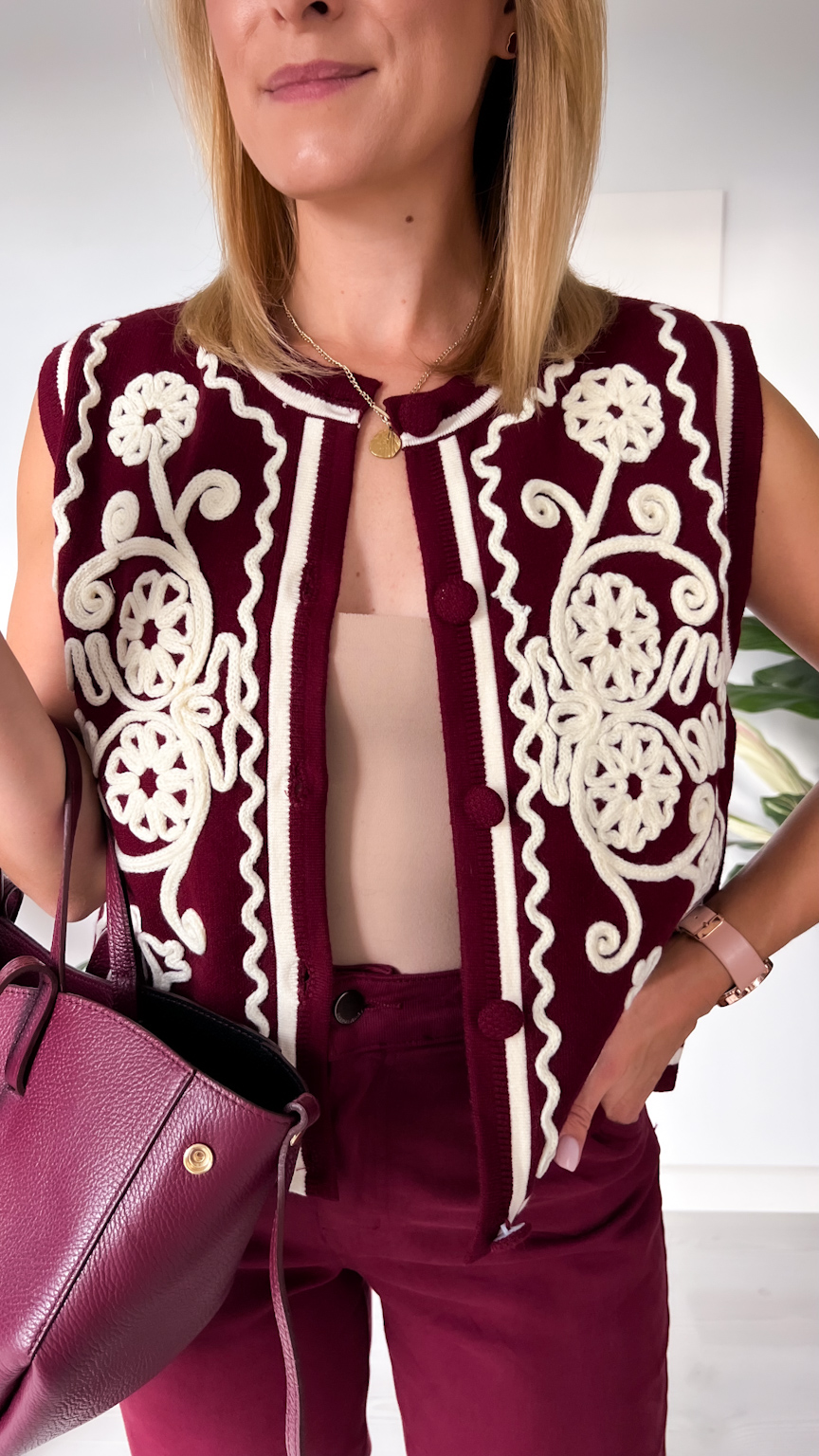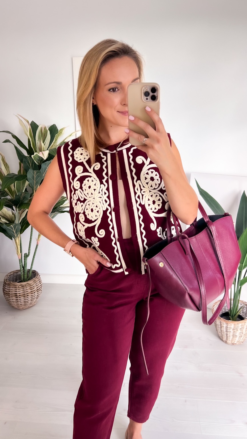 Dzianinowa kamizelka z haftami – idealna na jesień