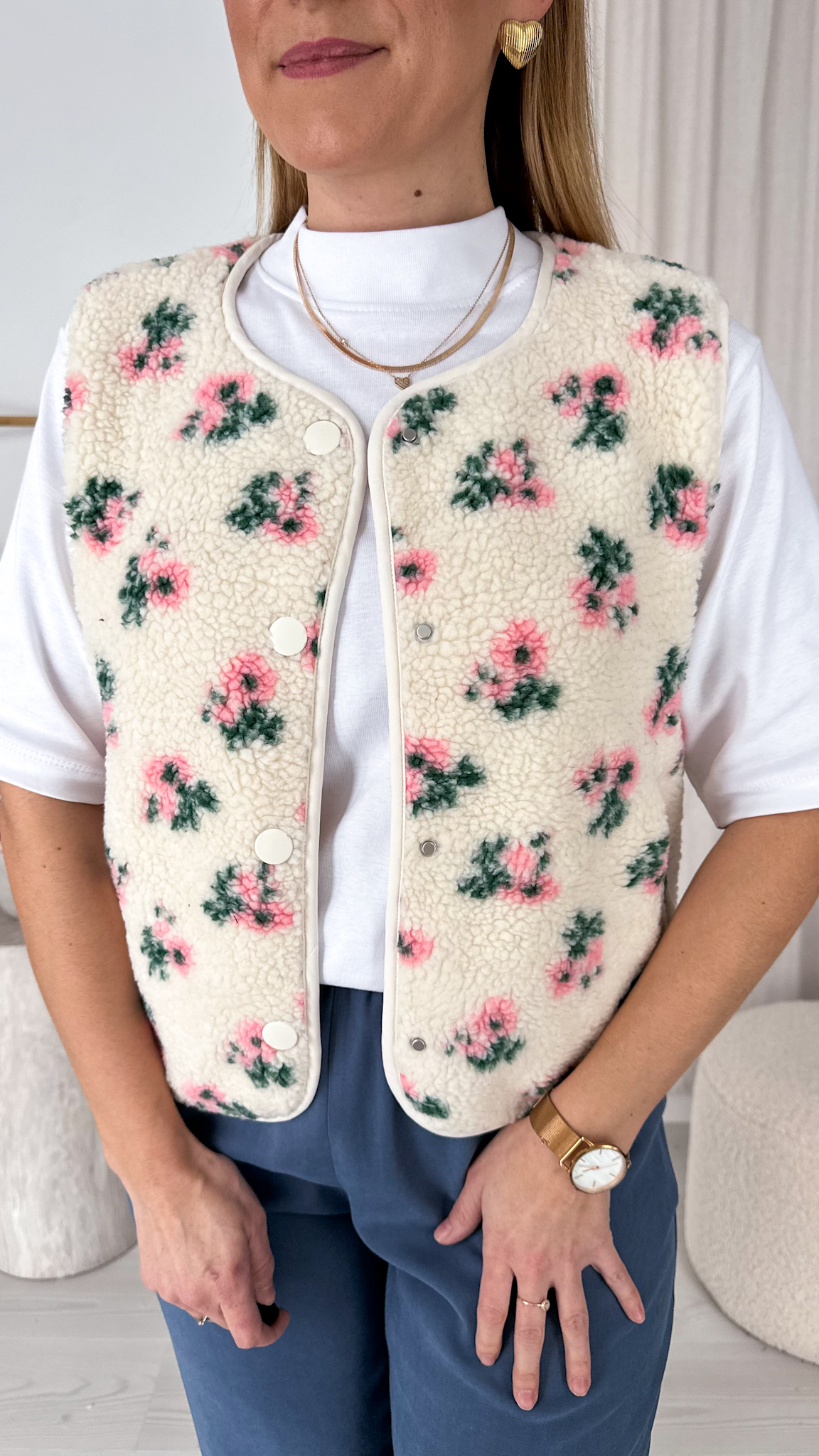Ciepła, urocza i absolutnie zachwycająca. Ta wyjątkowa kamizelka typu baranek to idealne połączenie komfortu z dziewczęcym wdziękiem i modowym charakterem.