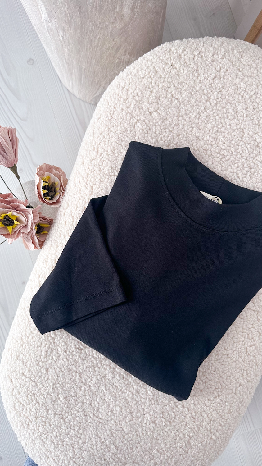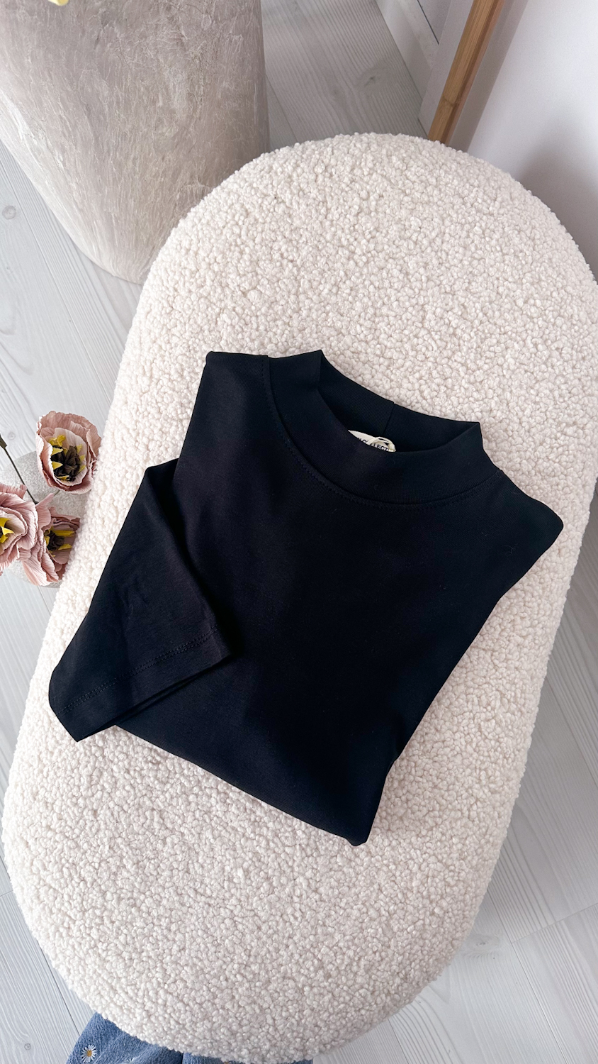 Bluzka Basic z dłuższym rękawem to absolutny klasyk, który powinien znaleźć się w każdej garderobie. Wykonana z miękkiej, oddychającej bawełny, zapewnia komfort noszenia przez cały dzień. Prosty krój został przełamany kontrastowym białym kołnierzykiem, który dodaje całości elegancji i ponadczasowego charakteru.