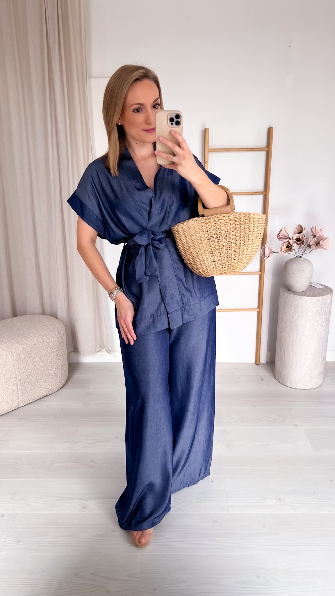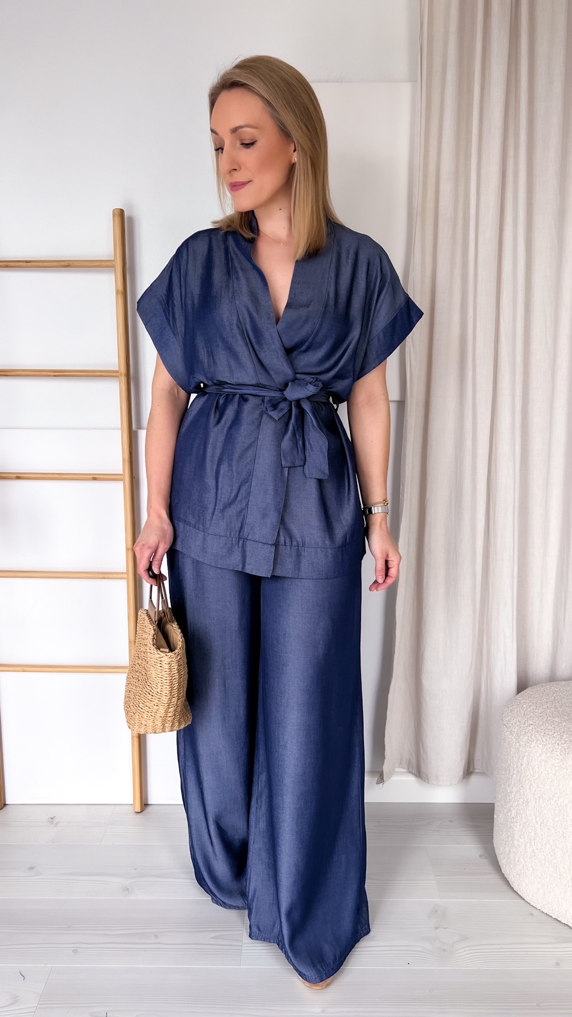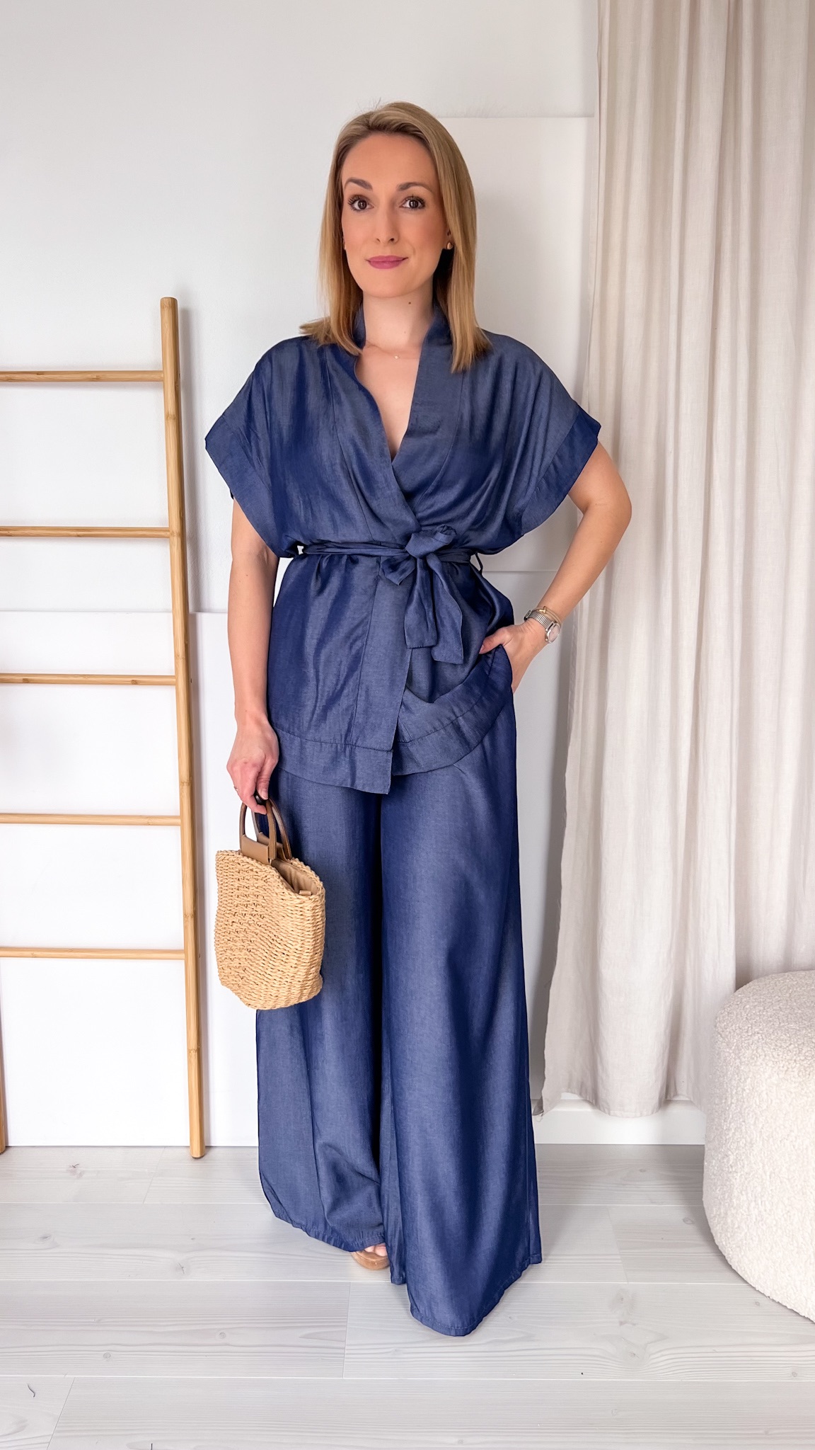 Odkryj wyjątkowy komplet, który łączy w sobie elegancję i codzienną swobodę. Składa się z efektownego kimona wiązanego w pasie oraz szerokich, komfortowych spodni, tworząc harmonijną i niezwykle stylową całość.