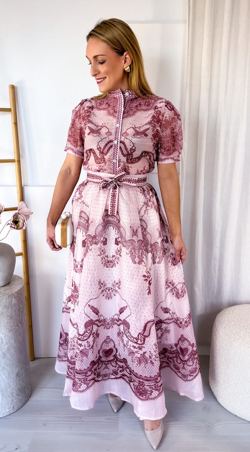 Model zachwyca cudowną kolorystyką, która przyciąga spojrzenia i nadaje całości wyjątkowego charakteru. To zestaw idealny na uroczystości, spotkania rodzinne, do pracy czy na eleganckie wyjścia.