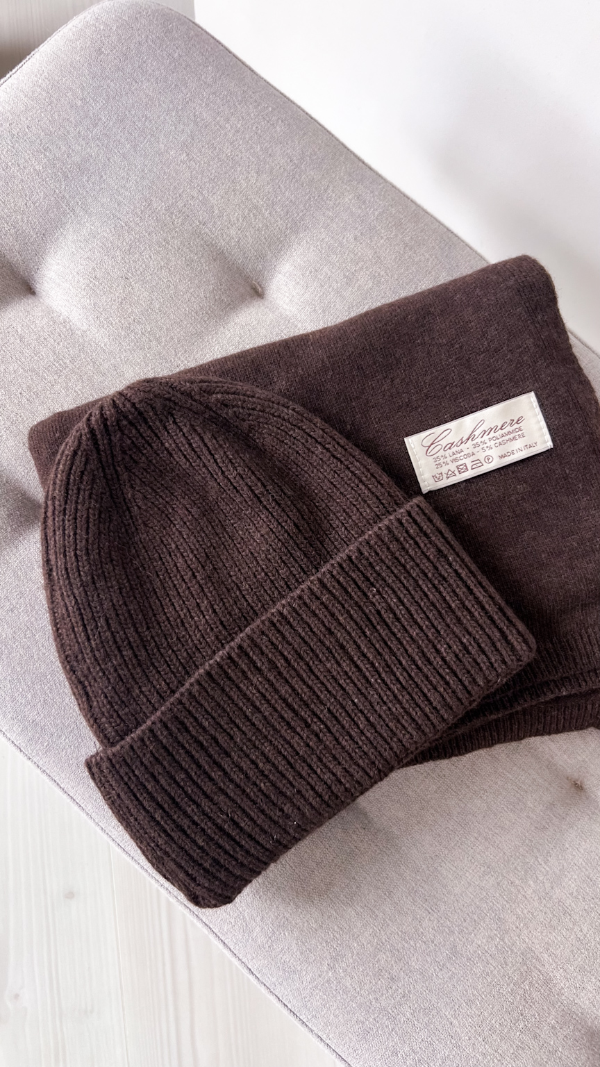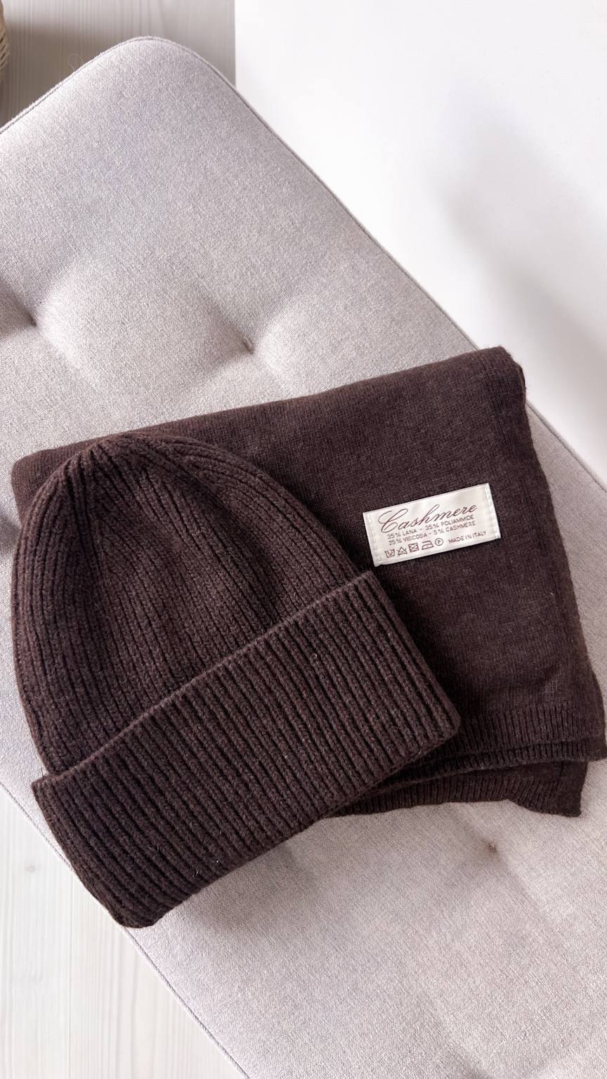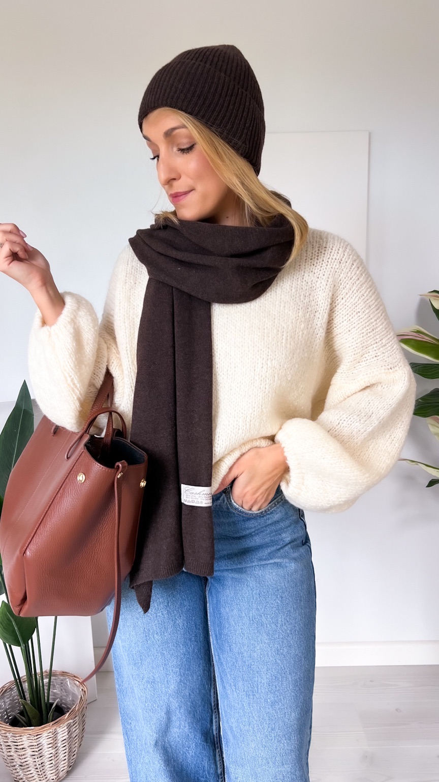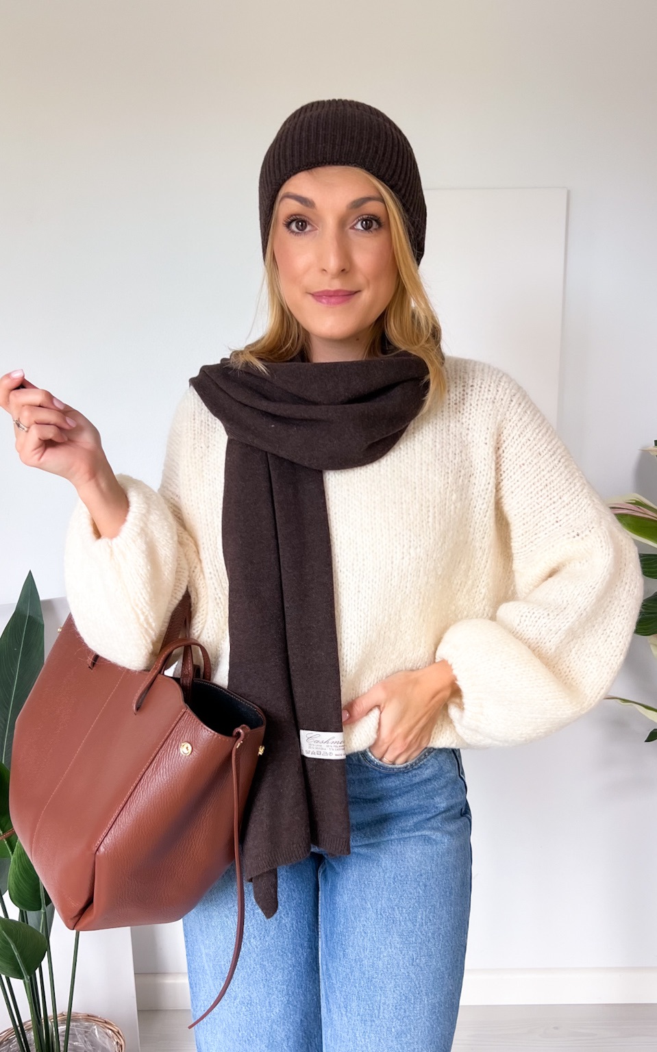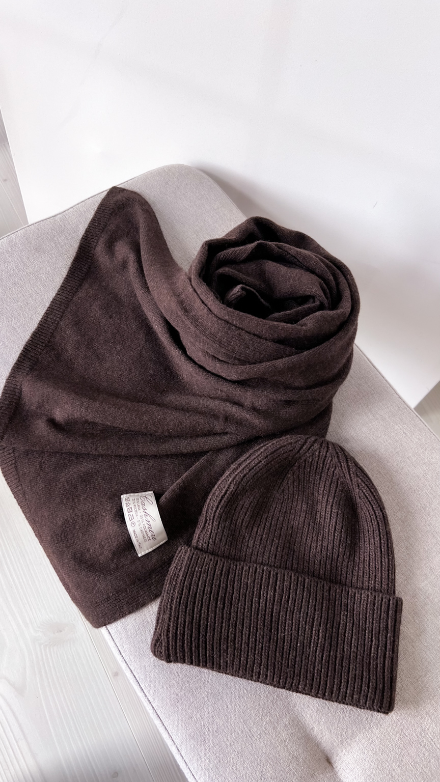 Postaw na luksus i komfort w chłodniejsze dni! Ten elegancki komplet składający się z czapki i szala został wykonany z wysokiej jakości mieszanki. Dzięki temu jest wyjątkowo miękki, ciepły i przyjemny w dotyku. Minimalistyczny design sprawia, że zestaw pasuje do każdej stylizacji, a ponadczasowy charakter czyni go idealnym dodatkiem na jesień i zimę.