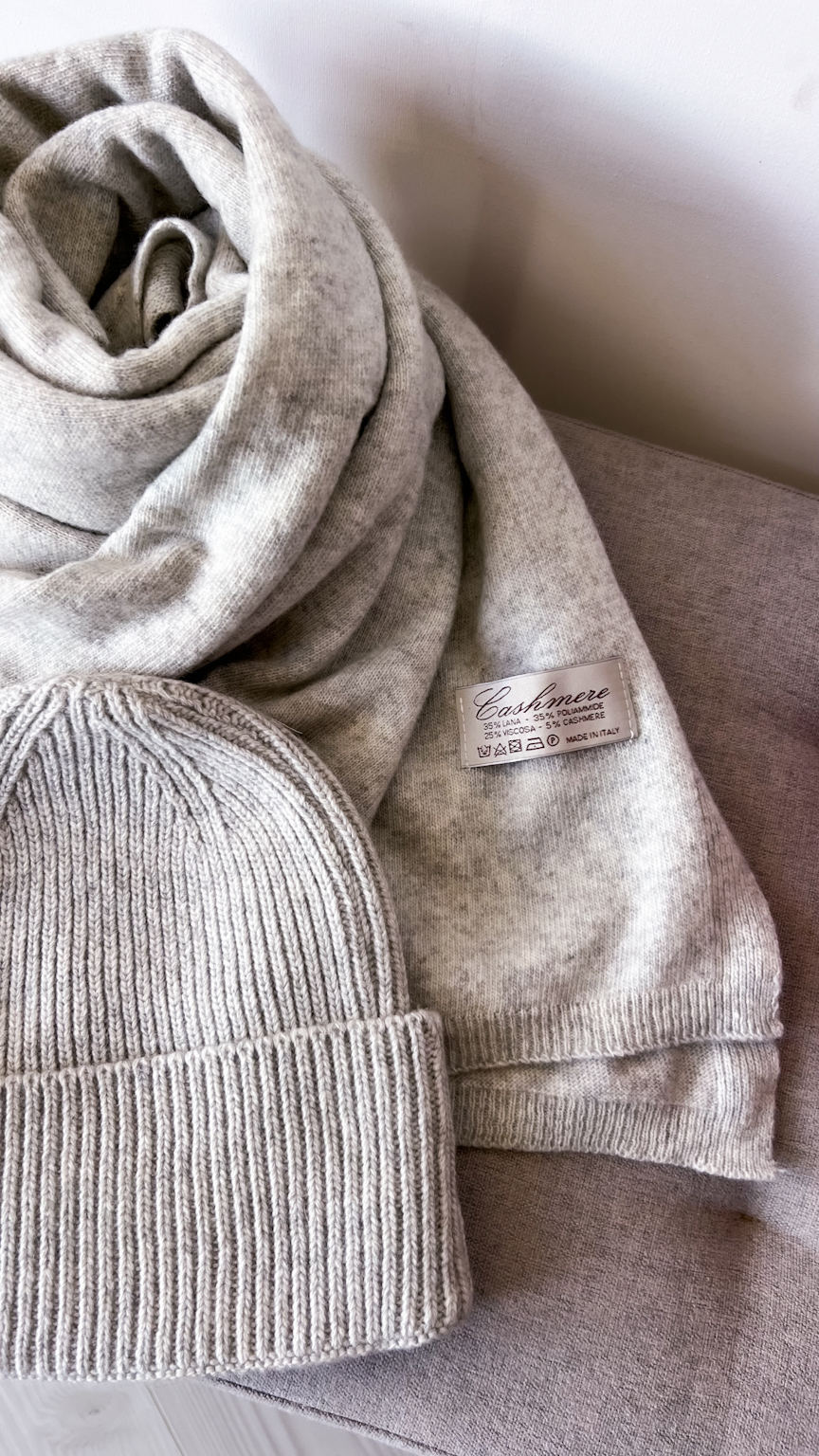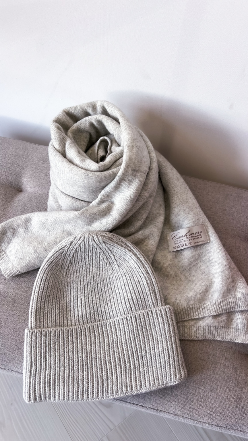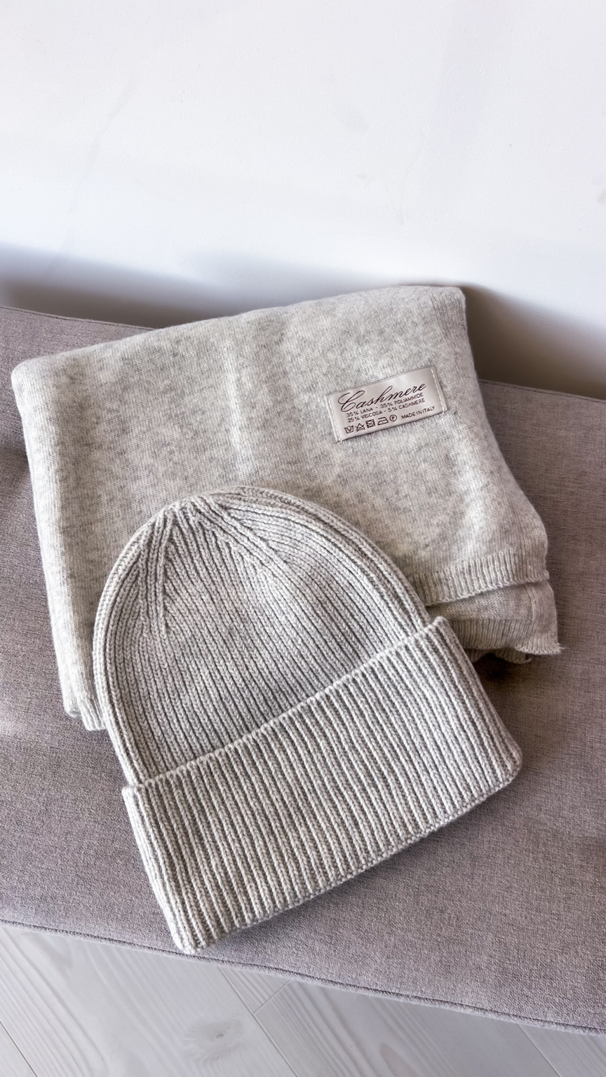 Postaw na luksus i komfort w chłodniejsze dni! Ten elegancki komplet składający się z czapki i szala został wykonany z wysokiej jakości mieszanki. Dzięki temu jest wyjątkowo miękki, ciepły i przyjemny w dotyku. Minimalistyczny design sprawia, że zestaw pasuje do każdej stylizacji, a ponadczasowy charakter czyni go idealnym dodatkiem na jesień i zimę.