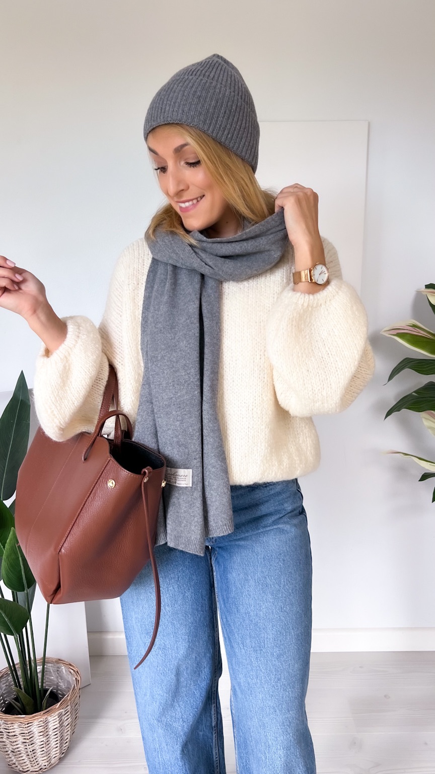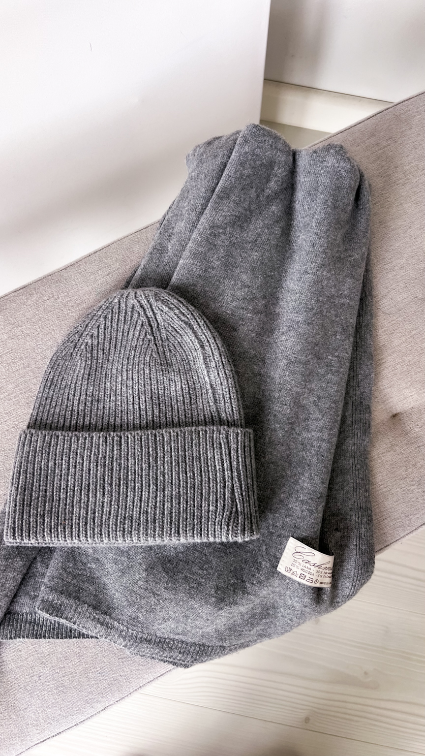 Komplet czapka + szal z kaszmirem i wełną
