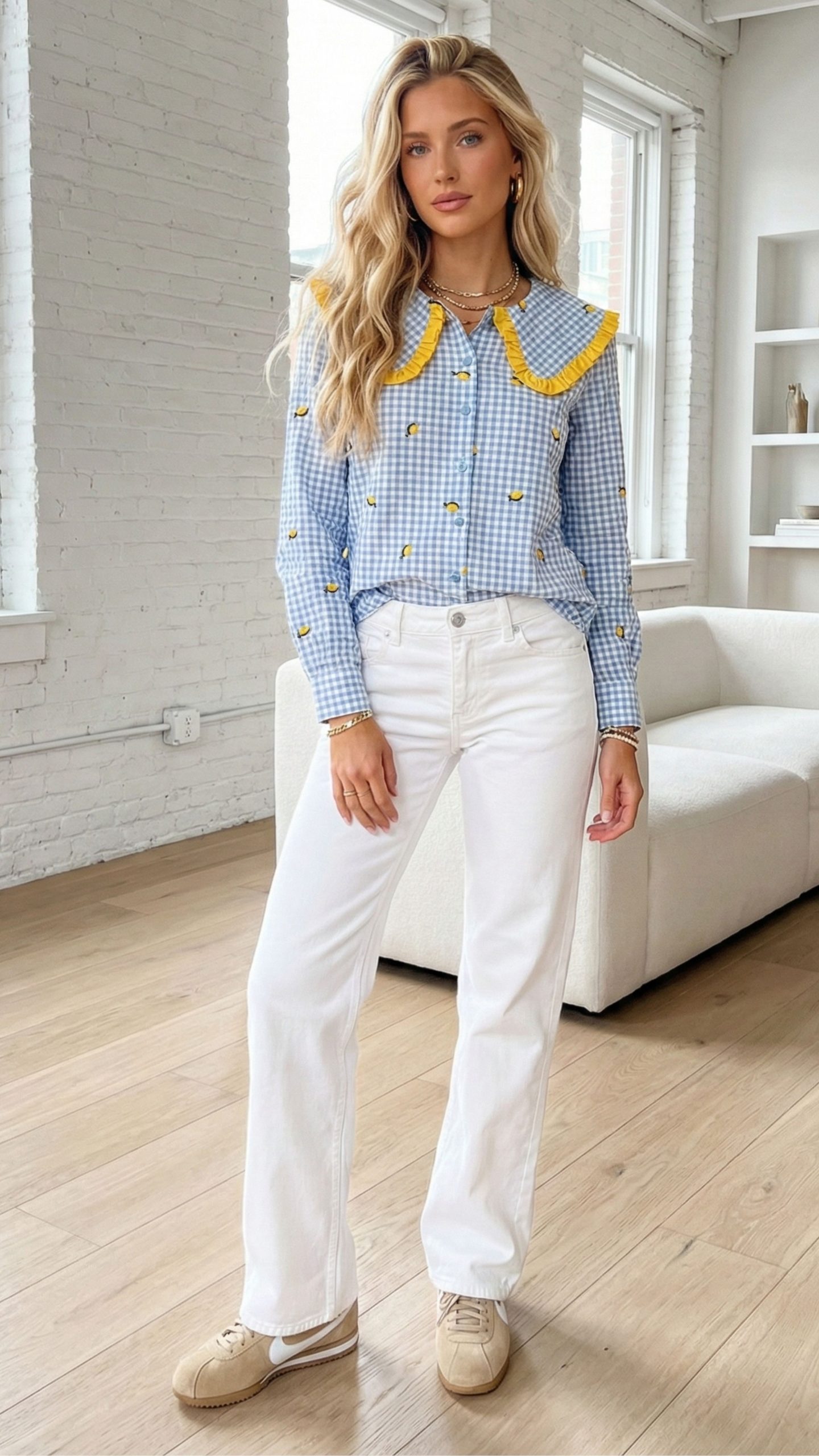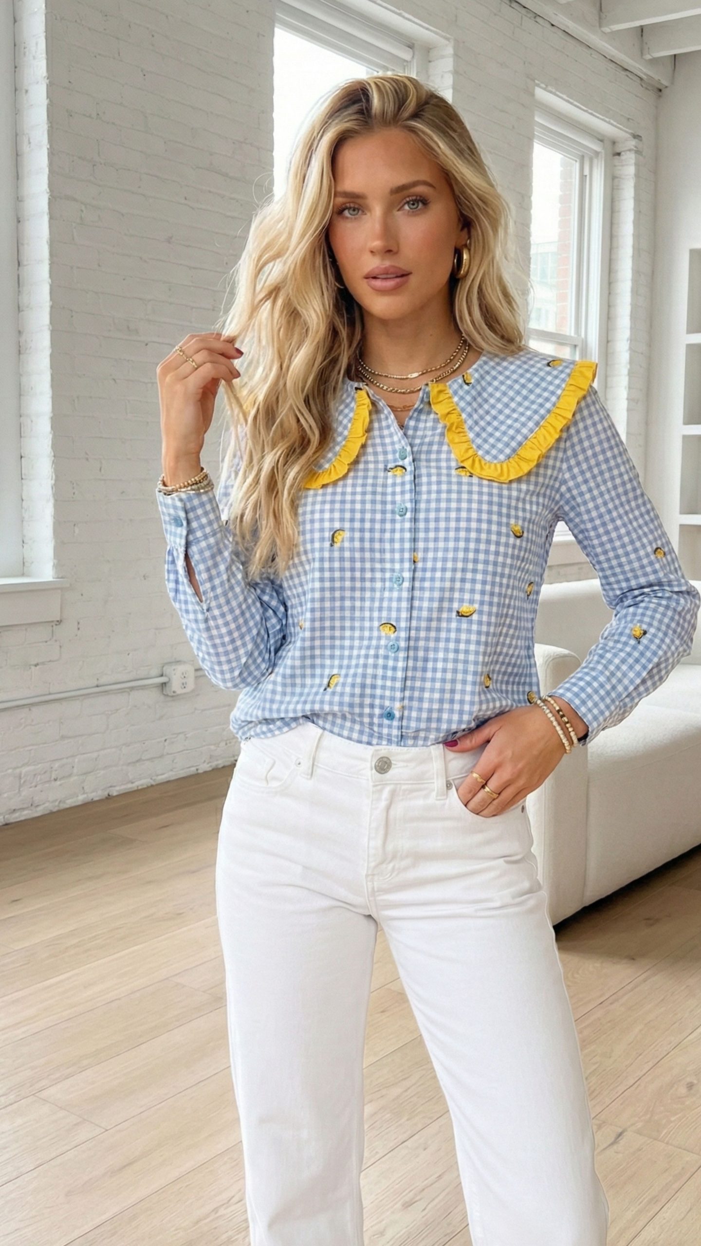 Ta koszula to prawdziwy must-have dla kobiet, które kochają styl z nutą oryginalności. Klasyczna niebiesko-biała krata została przełamana uroczymi, haftowanymi cytrynkami, które dodają całości świeżości, lekkości i niepowtarzalnego charakteru.