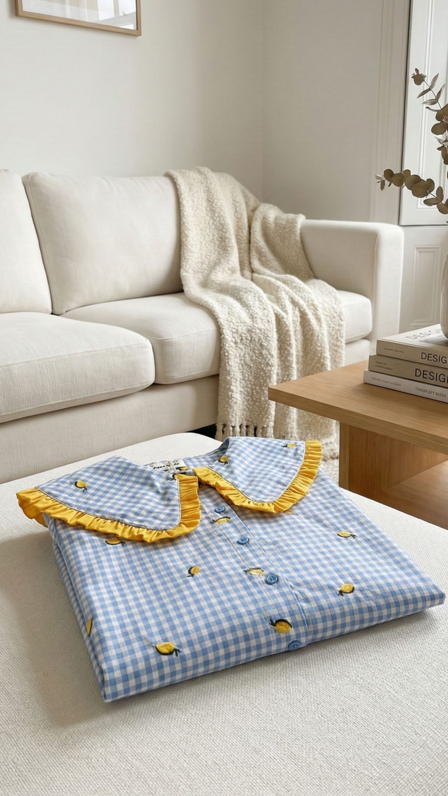 Koszula w niebiesko-białą kratę z haftowanymi cytrynkami – model absolutnie wyjątkowy 🍋