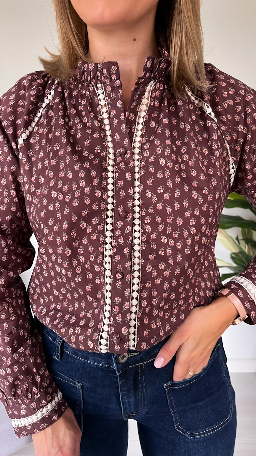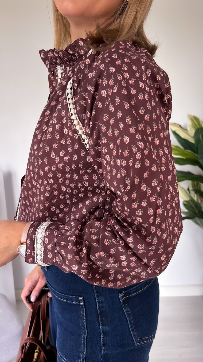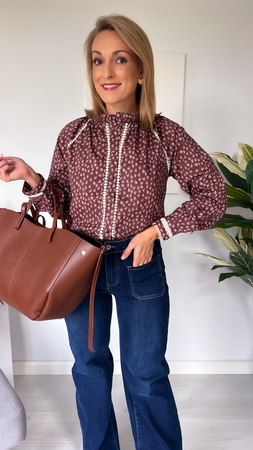Wybierz czekoladową koszulę w beżowe kwiatuszki, jeśli szukasz stylowego, delikatnego i jesiennego akcentu, który podkreśli Twój naturalny wdzięk. 🍂🤎
