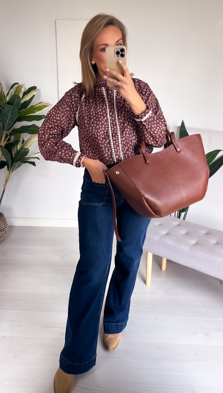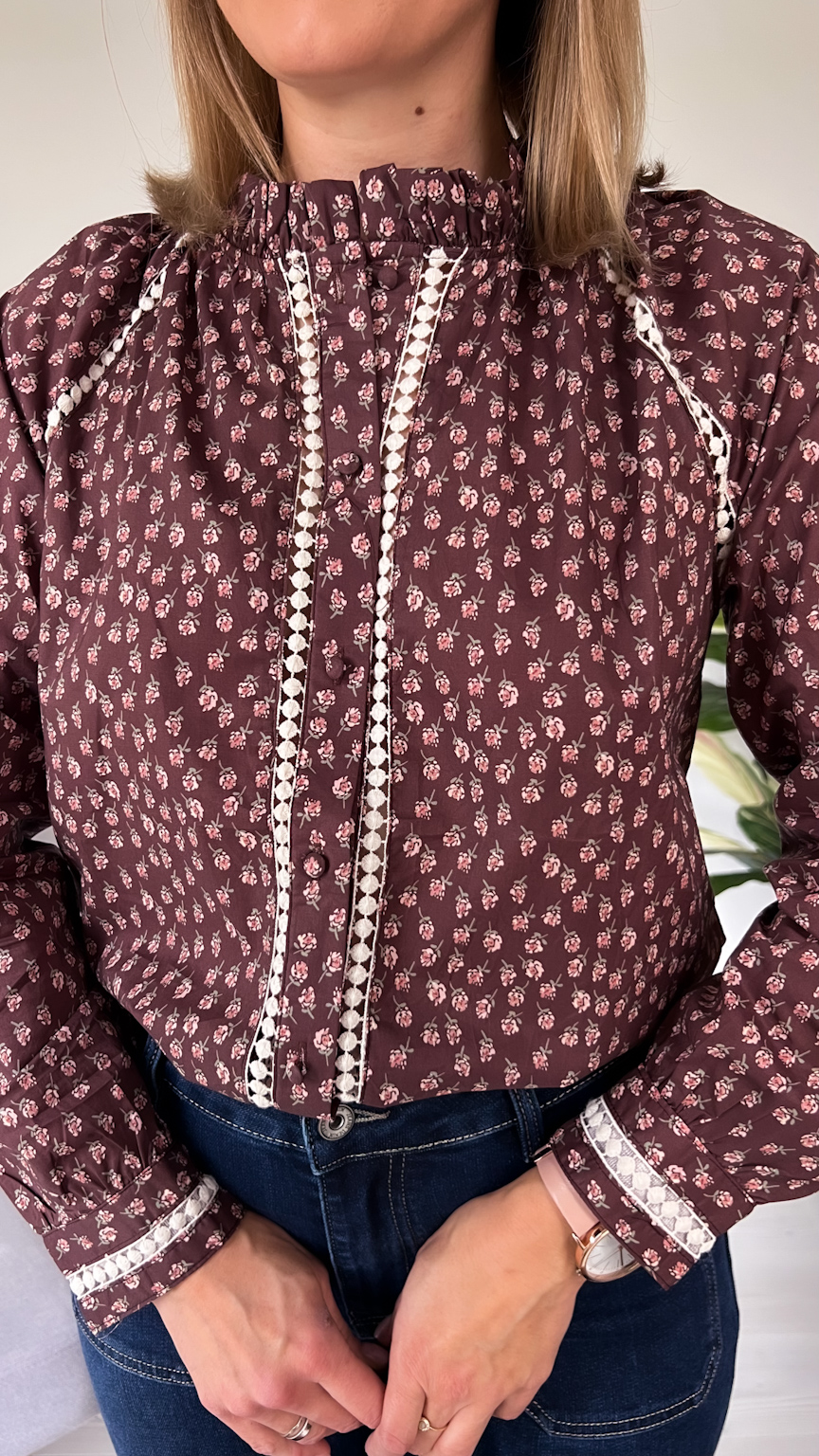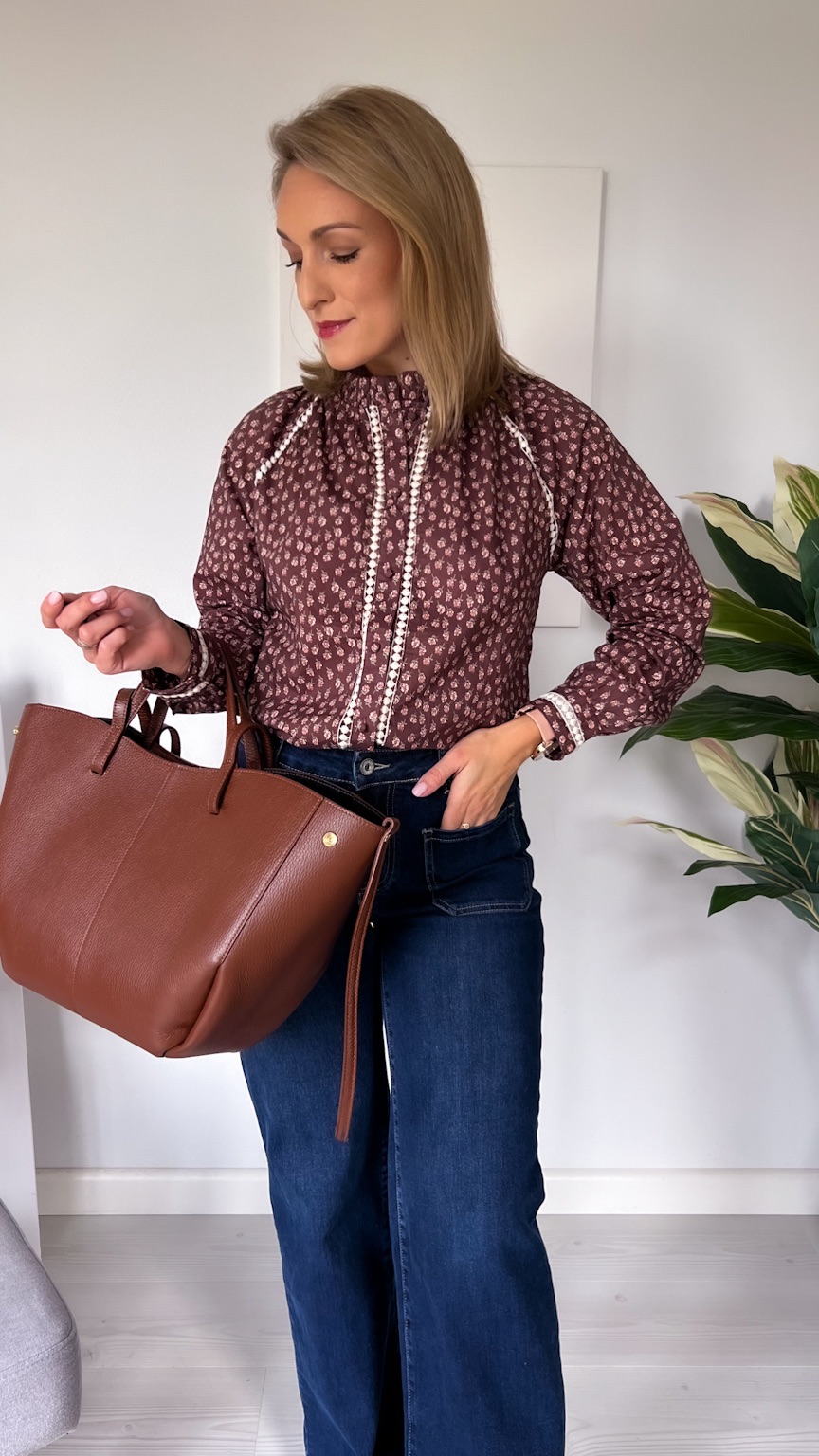 Wybierz czekoladową koszulę w beżowe kwiatuszki, jeśli szukasz stylowego, delikatnego i jesiennego akcentu, który podkreśli Twój naturalny wdzięk. 🍂🤎