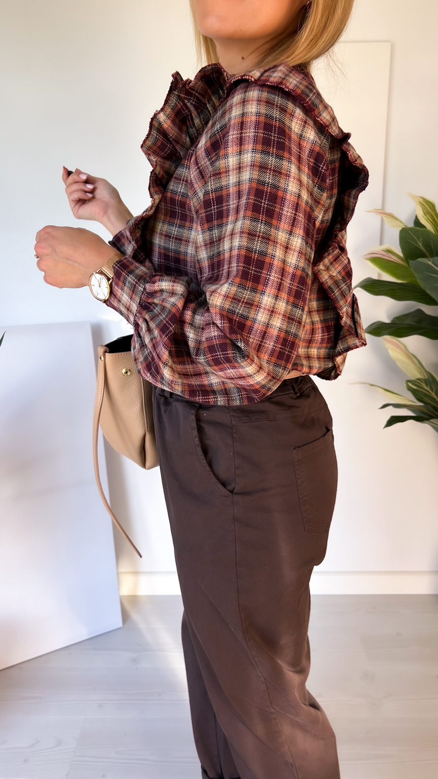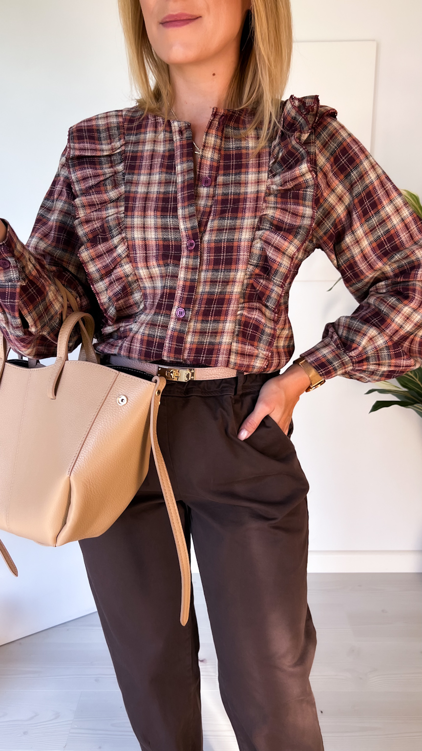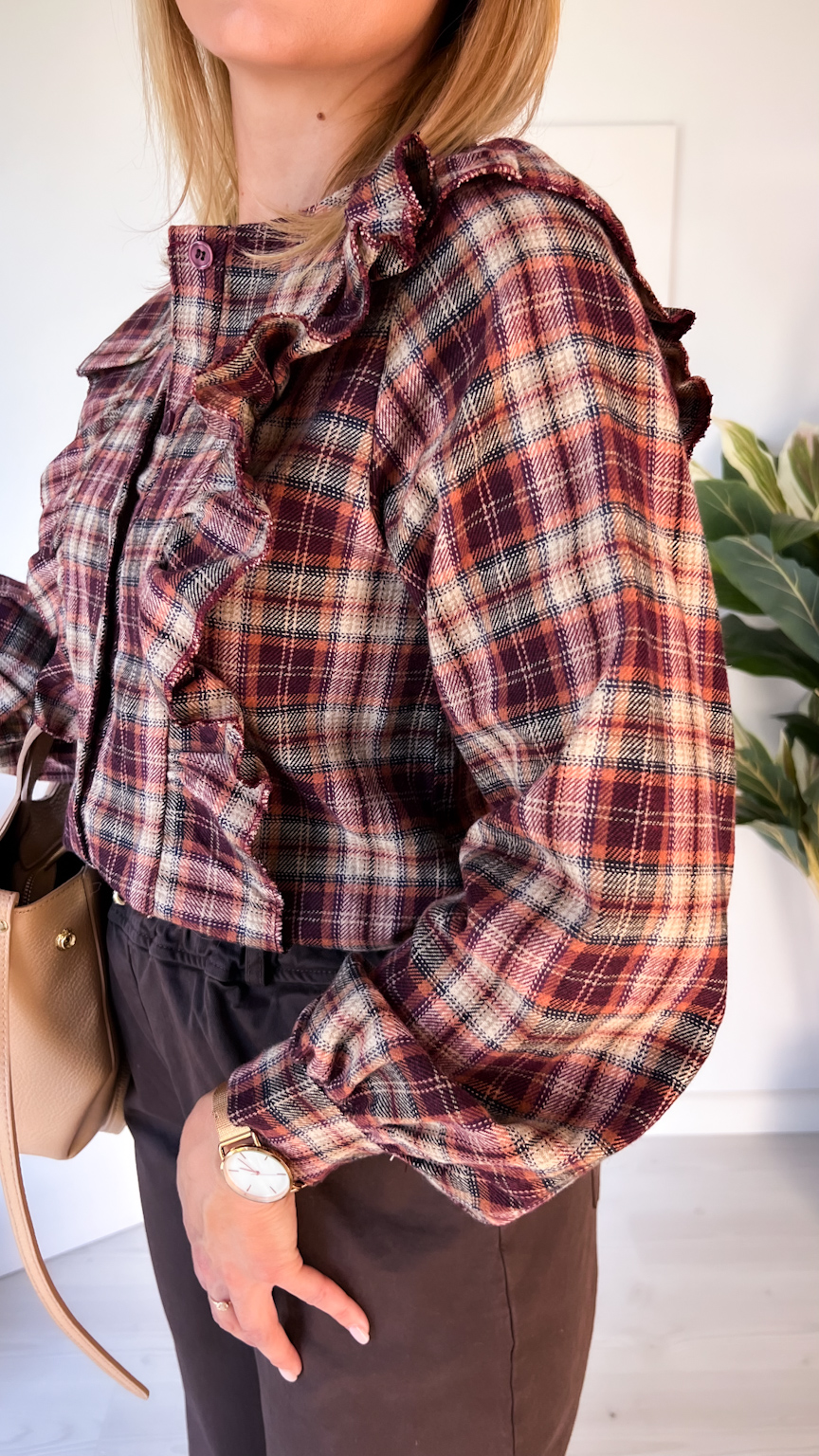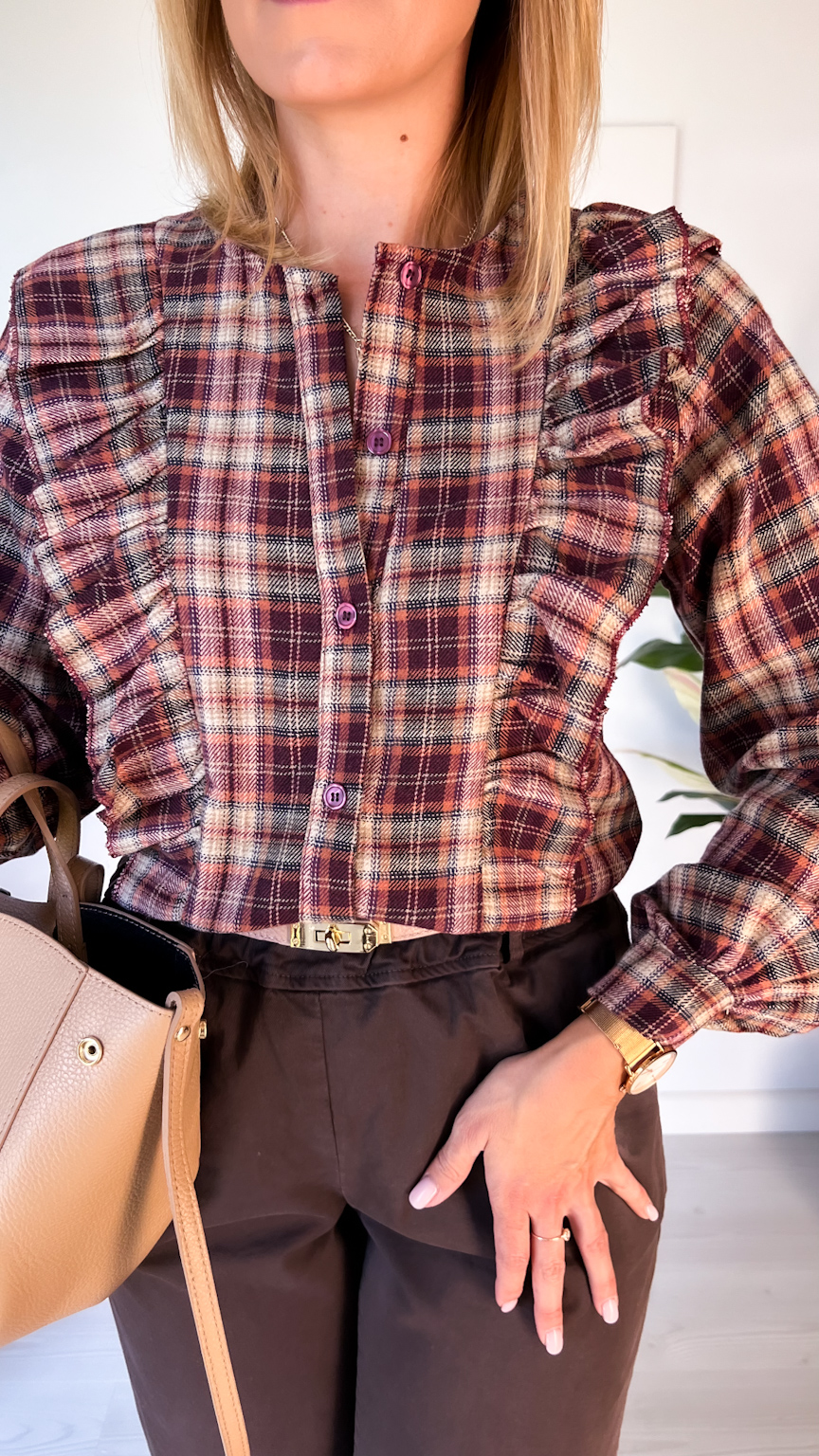 Wyjątkowa koszula, która łączy klasykę z nutą romantyzmu. Uszyta z naturalnej bawełny, zachwyca eleganckimi żabotami i ponadczasowym wzorem w kratę. Delikatne falbany nadają jej subtelnej kobiecości, a przyjemny w dotyku materiał gwarantuje komfort noszenia.