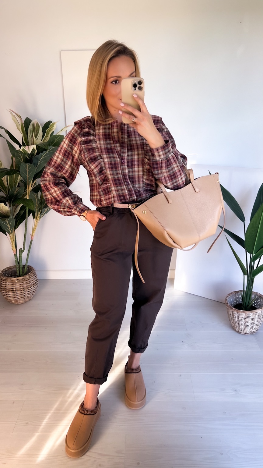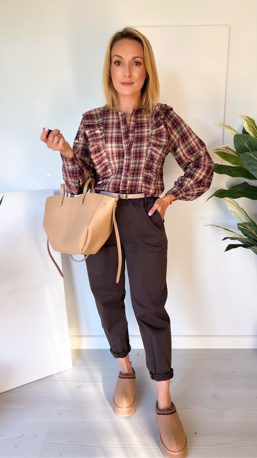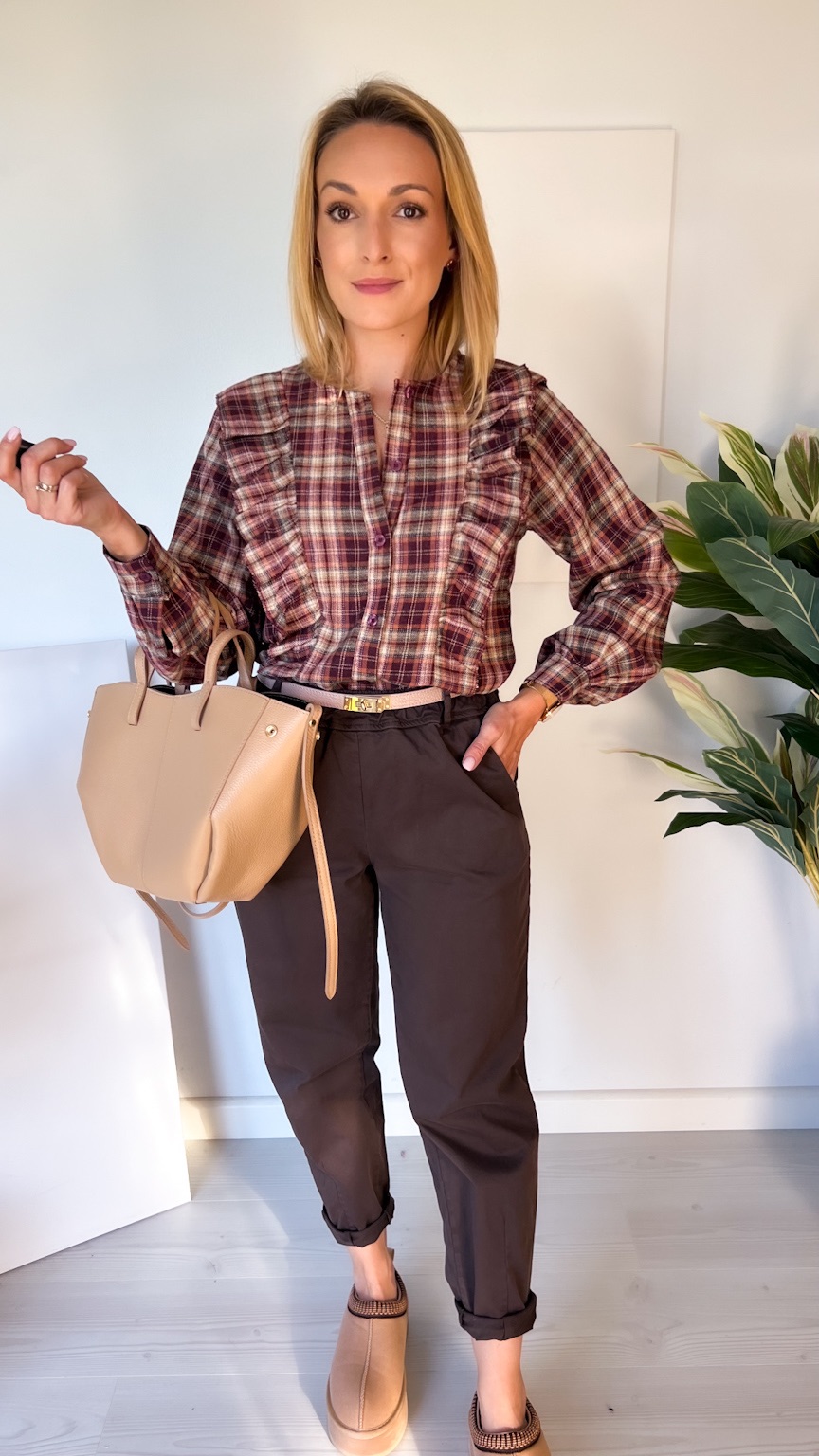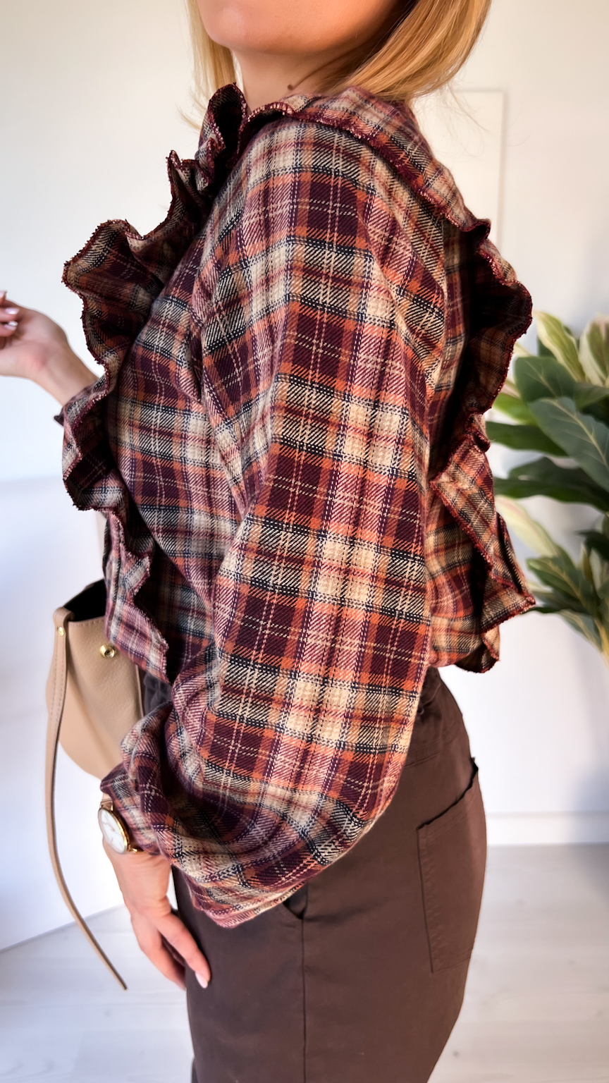 Wyjątkowa koszula, która łączy klasykę z nutą romantyzmu. Uszyta z naturalnej bawełny, zachwyca eleganckimi żabotami i ponadczasowym wzorem w kratę. Delikatne falbany nadają jej subtelnej kobiecości, a przyjemny w dotyku materiał gwarantuje komfort noszenia.