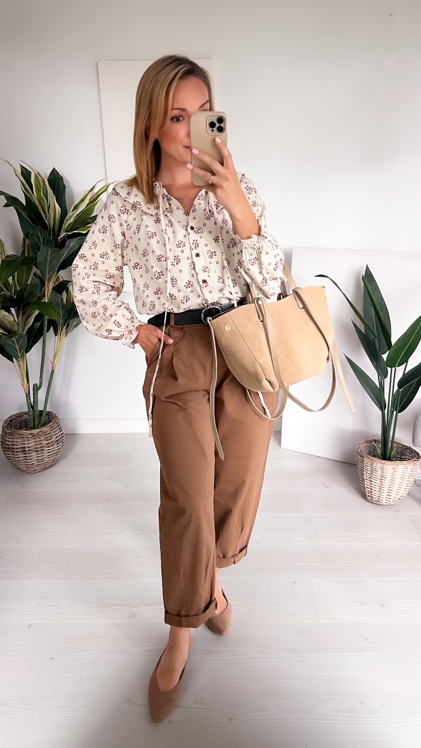 Koszula beżowa w czekoladowe kwiatuszki