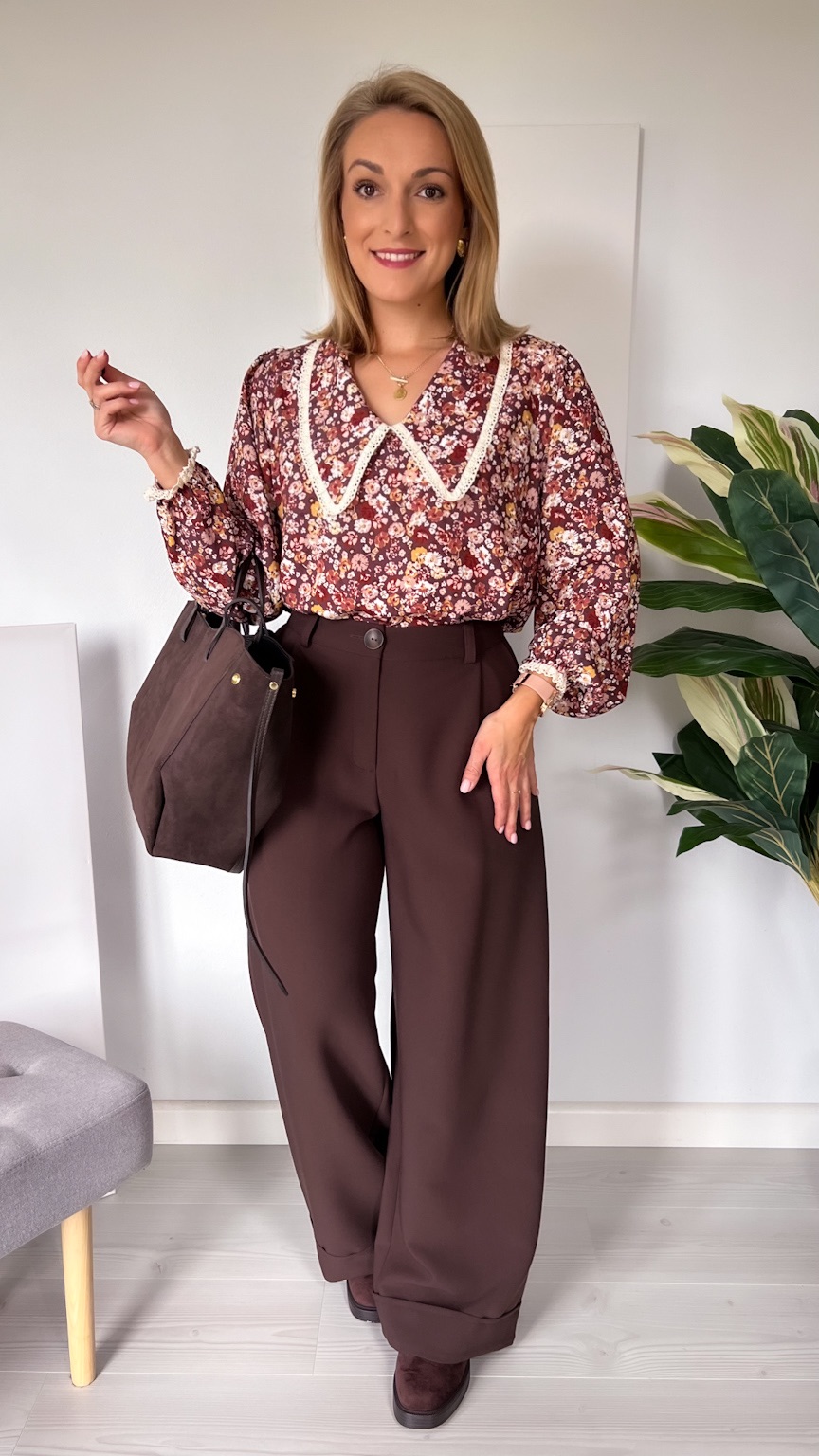 Wyjątkowa bluzka, która łączy elegancję z nutą oryginalności. Jej charakterystycznym elementem jest duży, ozdobny kołnierz, który pięknie podkreśla dekolt i nadaje stylizacji niepowtarzalnego uroku. To model polskiej produkcji, wykonany z dbałością o każdy detal, dzięki czemu zachwyca jakością i wygodą noszenia.