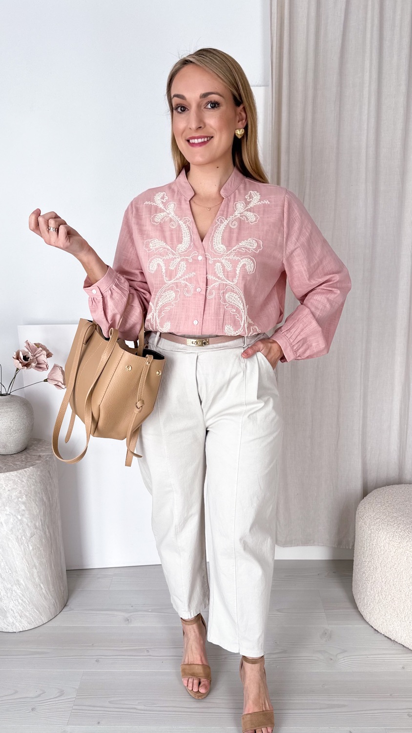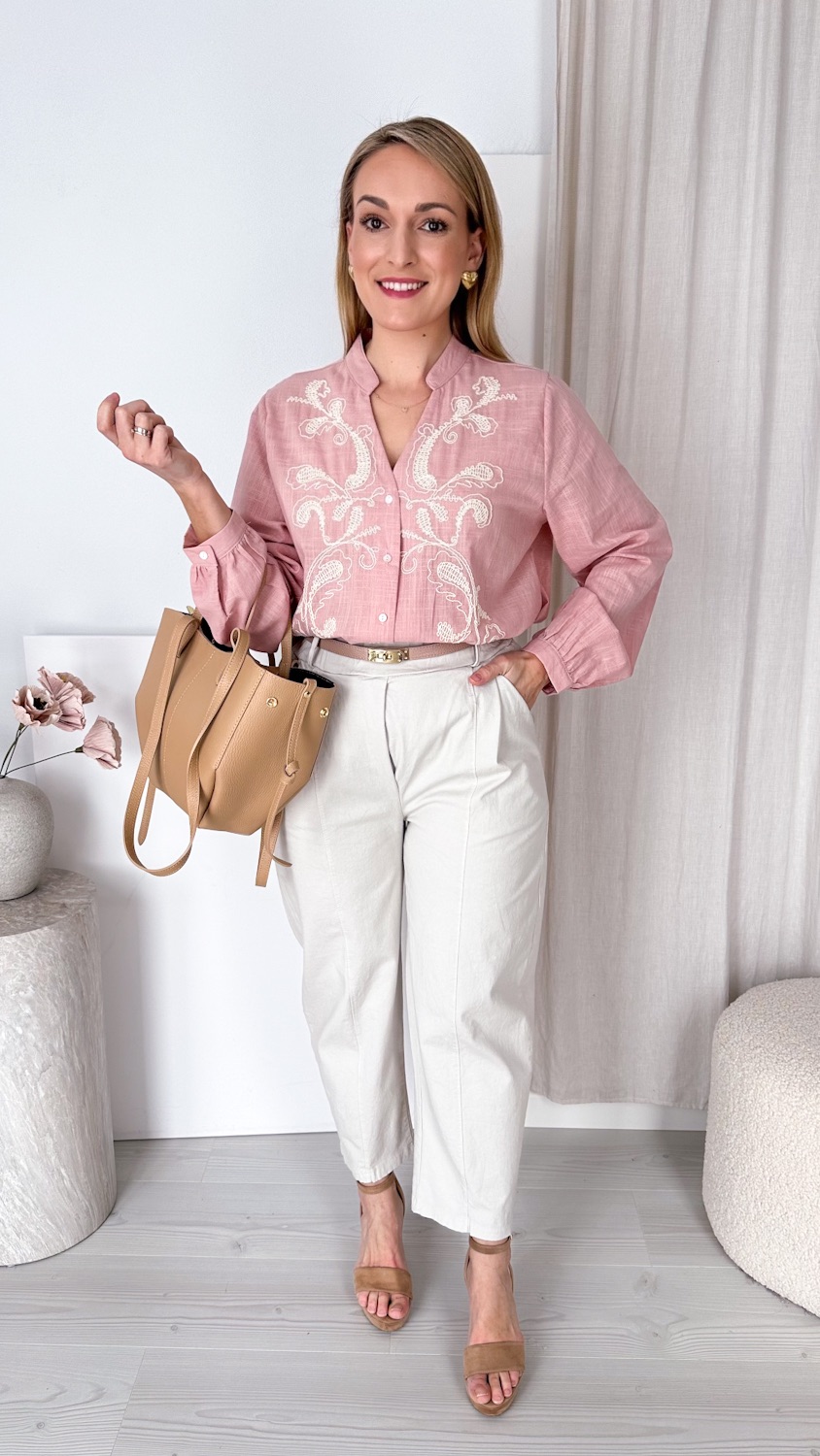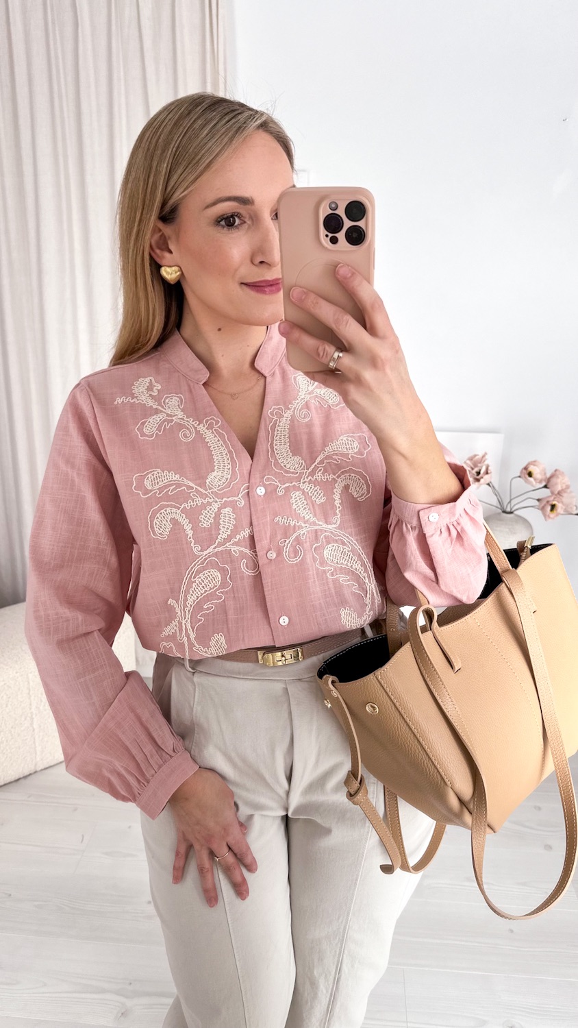 Bawełniana koszula w drobne kwiatuszki to kwintesencja kobiecego uroku i subtelnej elegancji. Wykonana z wysokiej jakości, naturalnej bawełny, zapewnia komfort noszenia i lekkość przez cały dzień. Uwagę przyciąga efektowny, duży kołnierz z romantyczną falbanką, ozdobiony delikatnym, kwiatowym motywem, który dodaje koszuli świeżości i wiosennego charakteru. To model idealny do stylizacji pełnych lekkości — pięknie komponuje się z jeansami, spódnicami czy eleganckimi spodniami, tworząc look pełen wdzięku i ponadczasowego stylu. Niezwykle efektowna, a jednocześnie delikatna — stworzona dla kobiet, które kochają detale 🌷