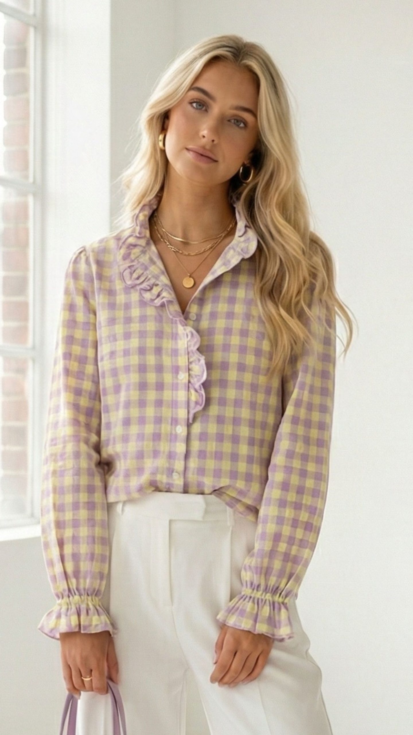 Koszula w różową kratę z haftowaną stójką to model, który zachwyca od pierwszego spojrzenia. Klasyczny wzór kraty został tu przełamany eleganckimi detalami – ozdobną, haftowaną stójką oraz subtelną lamówką biegnącą wzdłuż guzików. To właśnie te wykończenia nadają koszuli wyjątkowego, dopracowanego charakteru.