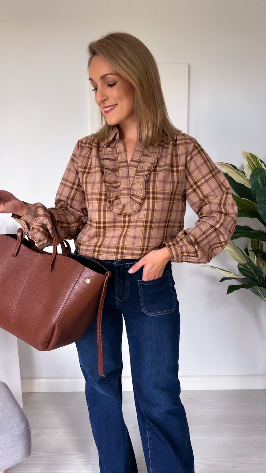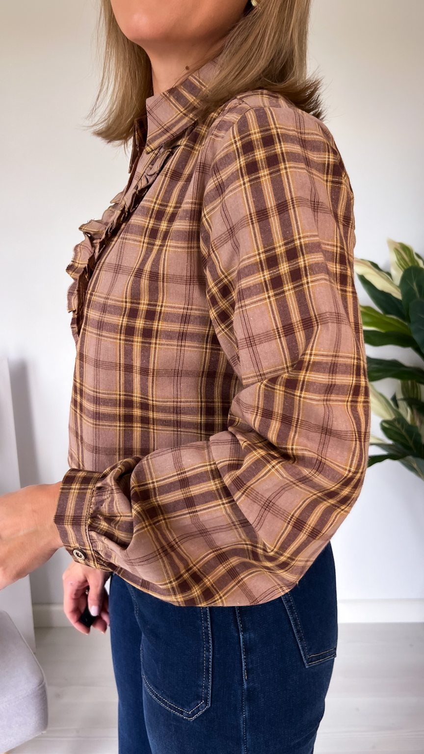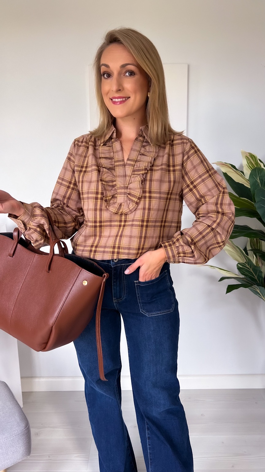 Postaw na koszulę w kratę z żabotami, jeśli szukasz czegoś wyjątkowego – kobiecego, stylowego i z charakterem. 🍂🤎