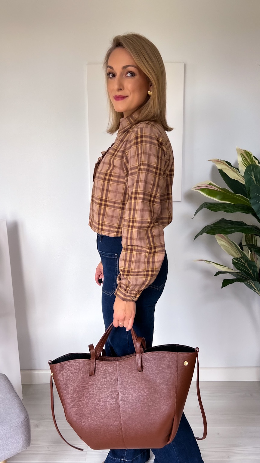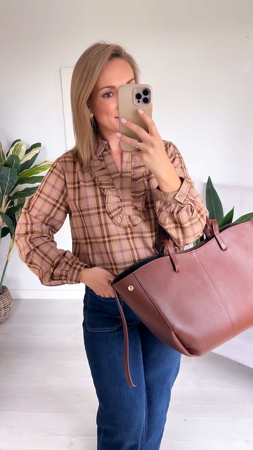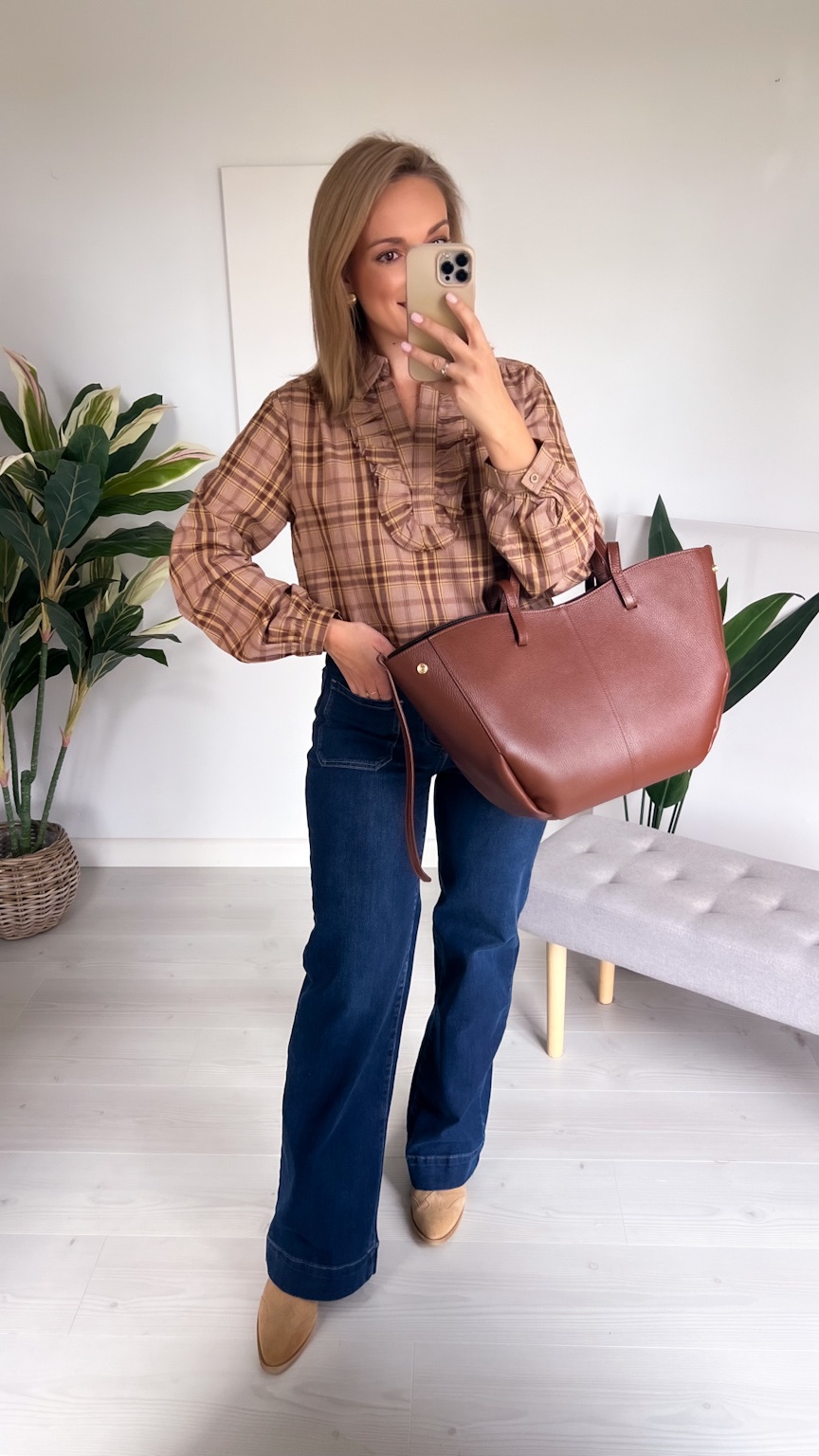 Postaw na koszulę w kratę z żabotami, jeśli szukasz czegoś wyjątkowego – kobiecego, stylowego i z charakterem. 🍂🤎