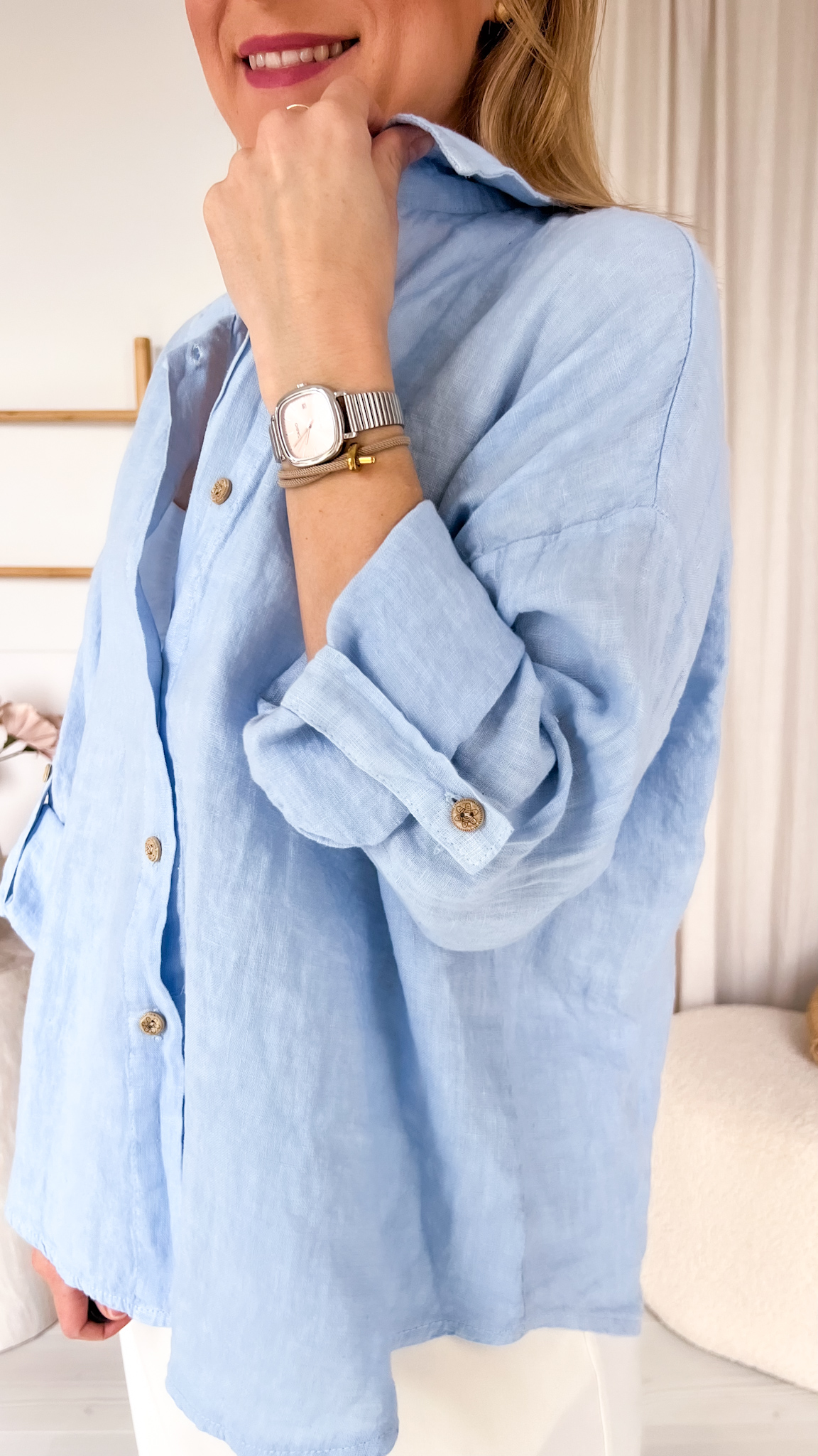 Koszula lniana świetnie sprawdzi się zarówno w casualowych zestawach, jak i bardziej klasycznych stylizacjach. Możesz nosić ją do jeansów, szortów, spódnic czy jako lekką narzutkę na top lub sukienkę.