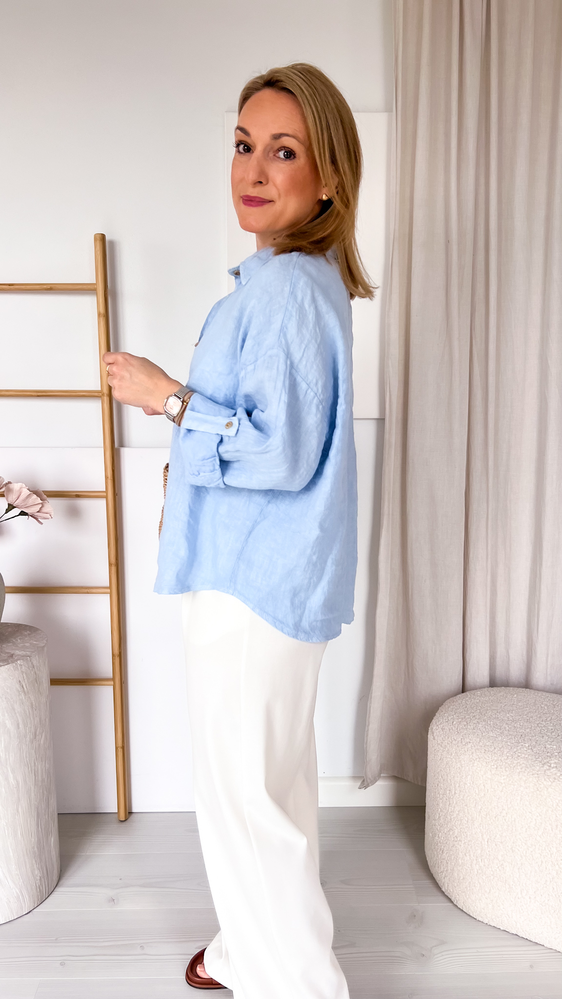 Dlaczego warto ją mieć? Przede wszystkim ze względu na jej właściwości termoregulacyjne – chłodzi latem i pozwala skórze swobodnie oddychać. Dodatkowo len ma naturalną, lekko surową strukturę, która nadaje stylizacjom eleganckiej swobody i niewymuszonego charakteru.