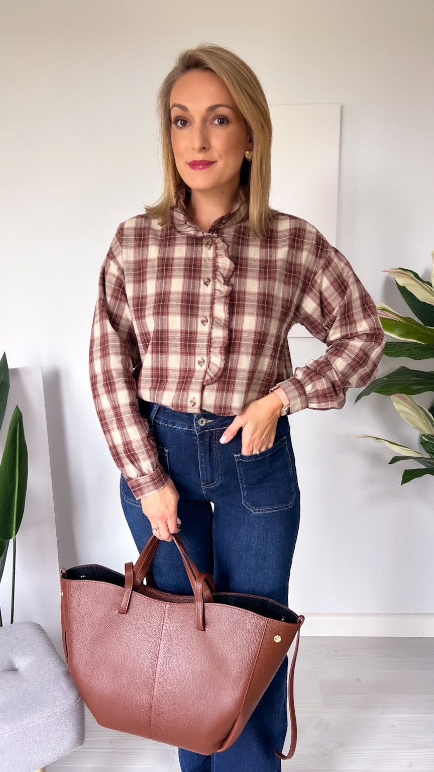 Koszula w brązowo-beżową kratkę – jesienny must-have w ciepłej kolorystyce