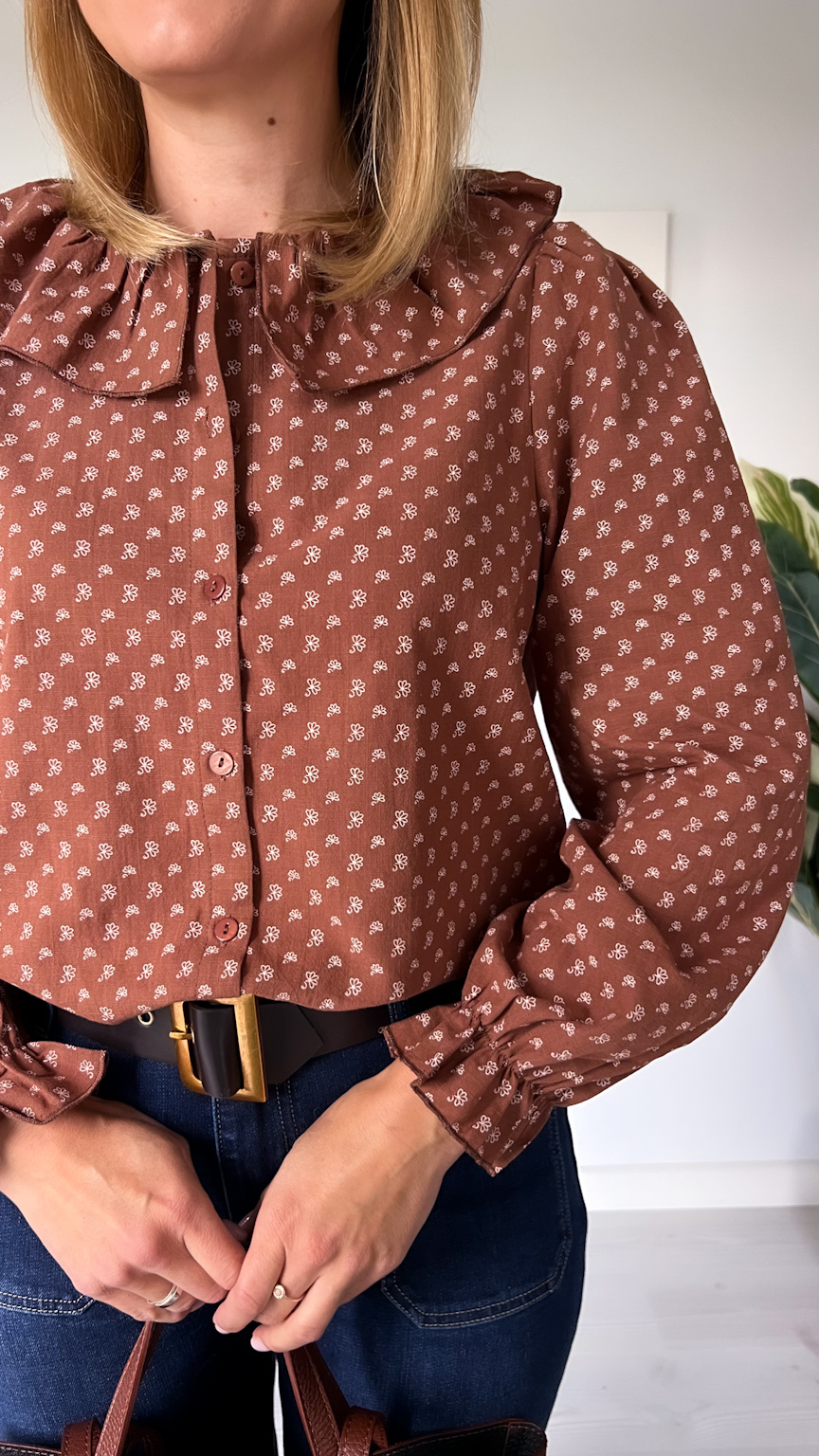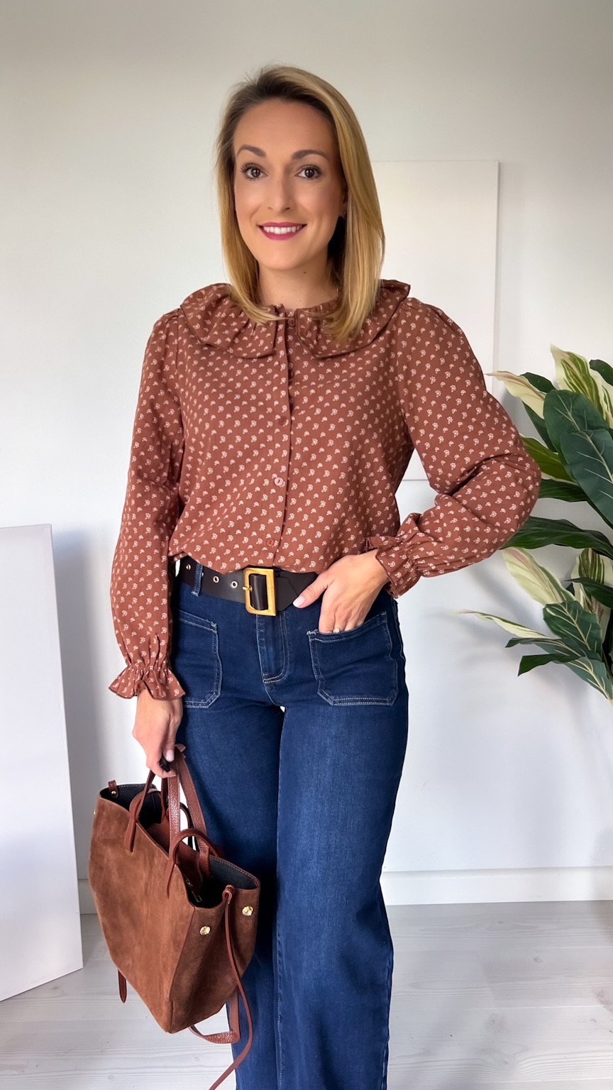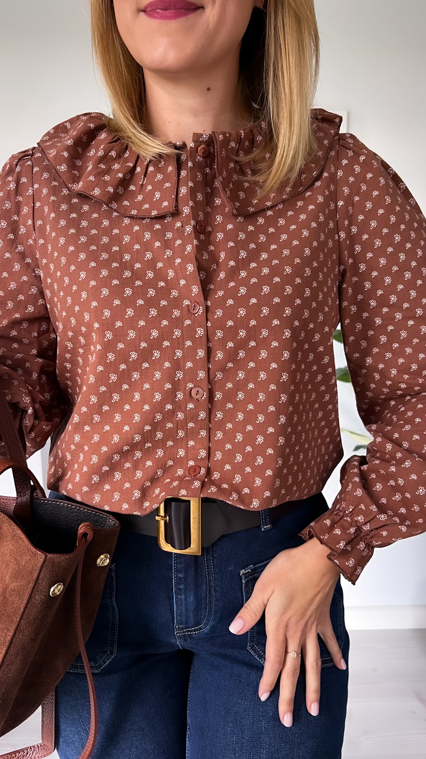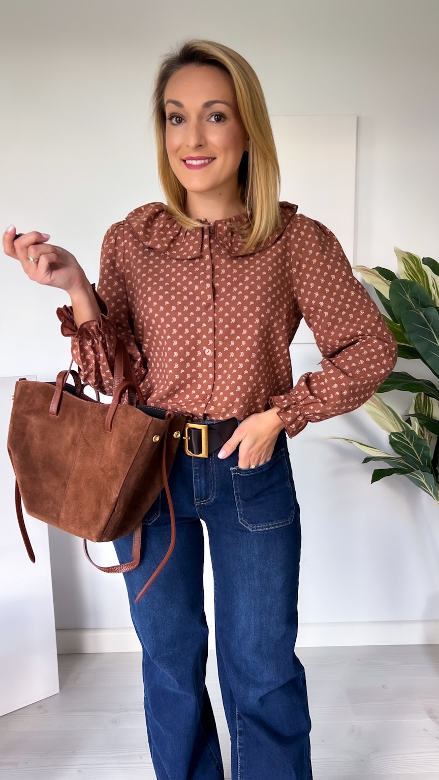 Delikatnie stonowane barwy inspirowane jesiennym pejzażem – od ciepłych beżów i karmelu, przez głęboką zieleń, po odcienie burgundu – sprawiają, że koszula świetnie komponuje się zarówno z codziennymi jeansami, jak i bardziej formalnymi spodniami czy spódnicą.