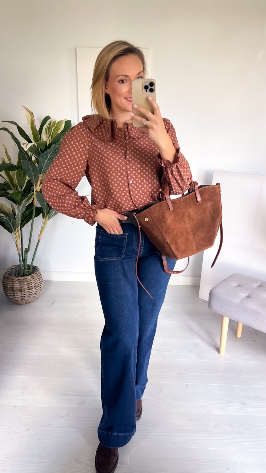 Wykonana z miękkiej, przyjemnej w dotyku tkaniny, zapewnia komfort noszenia i doskonałe dopasowanie. Naturalne barwy jesieni sprawiają, że koszula idealnie komponuje się z jeansami, wełnianymi spódnicami czy klasycznymi spodniami w stonowanych kolorach.