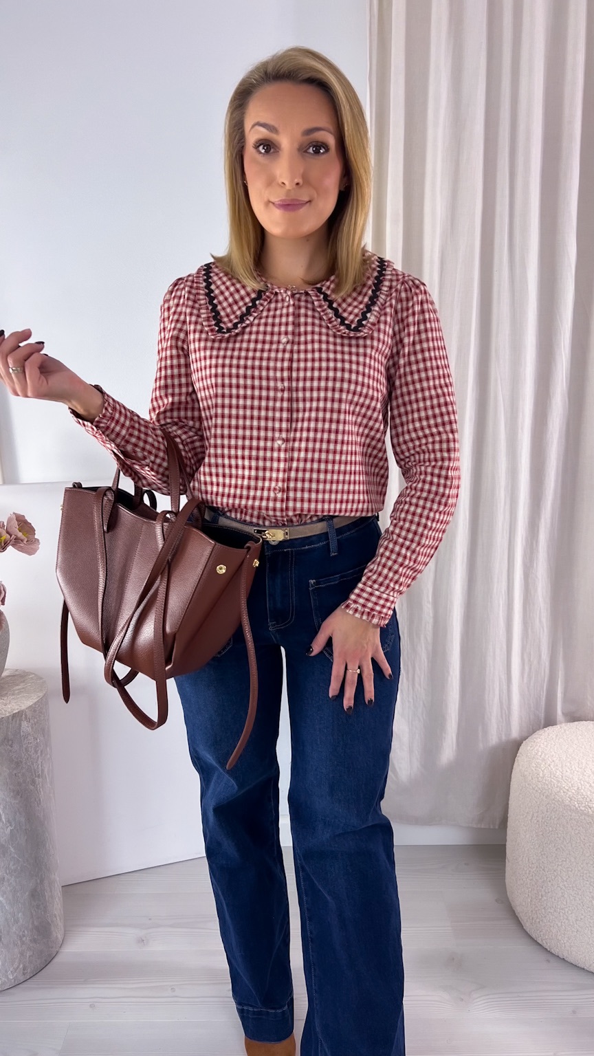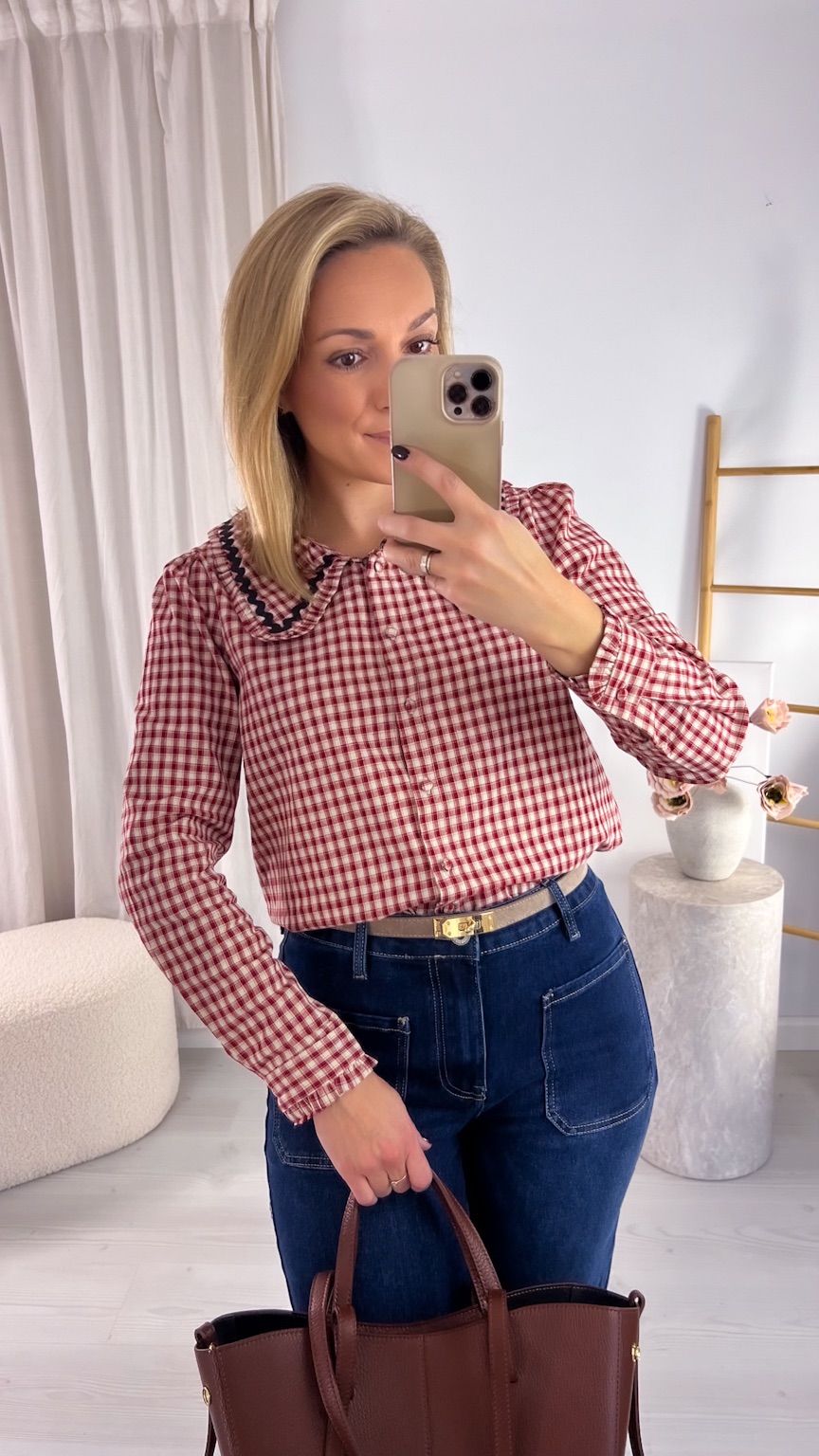 Stylowa i ponadczasowa koszula w czerwoną kratkę, która łączy klasykę z nutą nowoczesności. Model zapinany na guziki został uszyty w tradycyjnym kroju, dzięki czemu doskonale układa się na sylwetce i zapewnia wygodę noszenia.