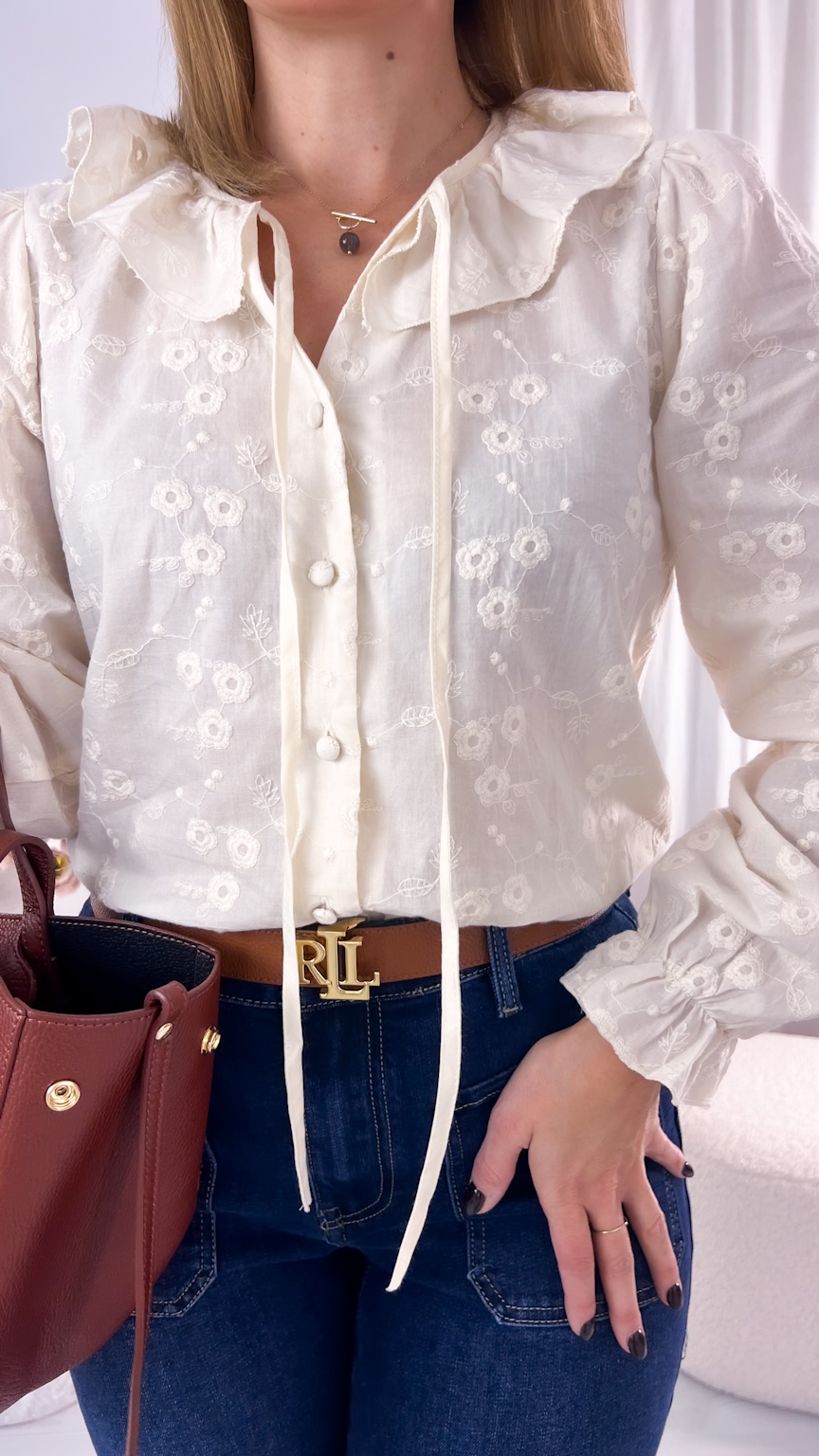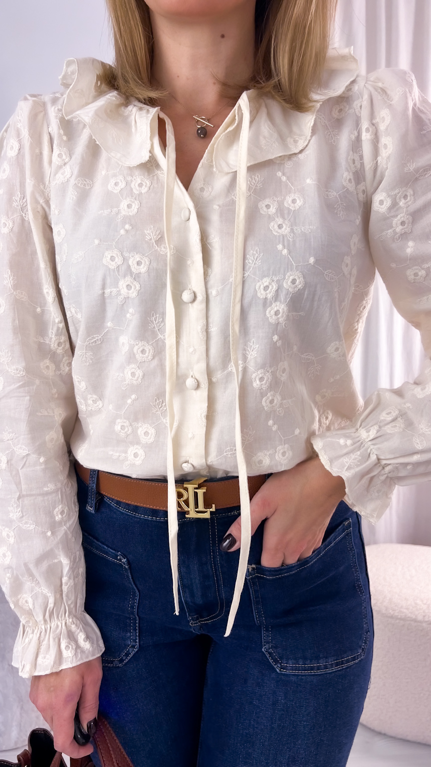 Koszula SONIA beżowa z kołnierzem w haftowane kwiaty
