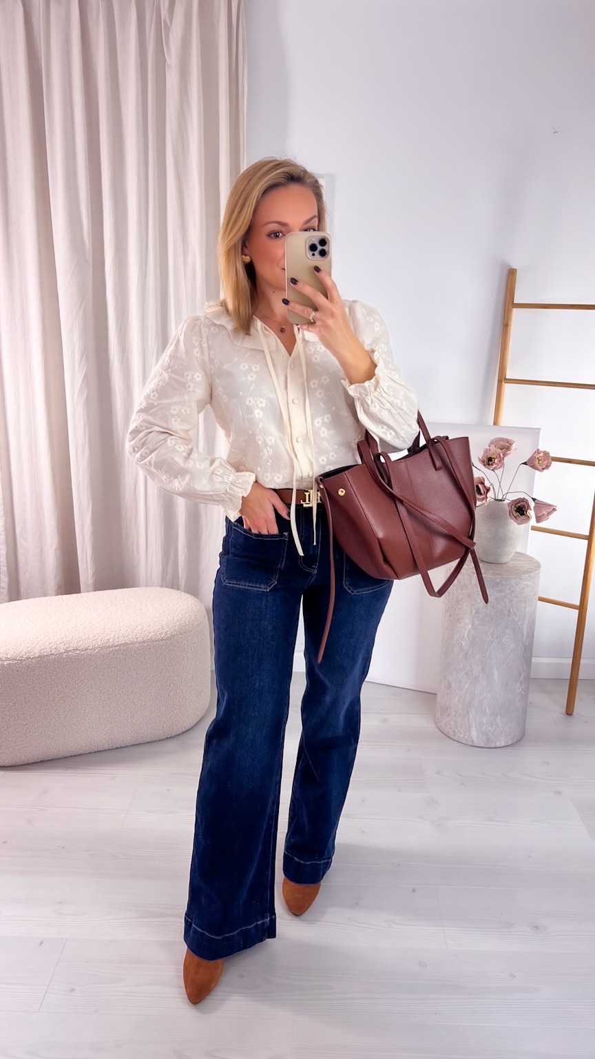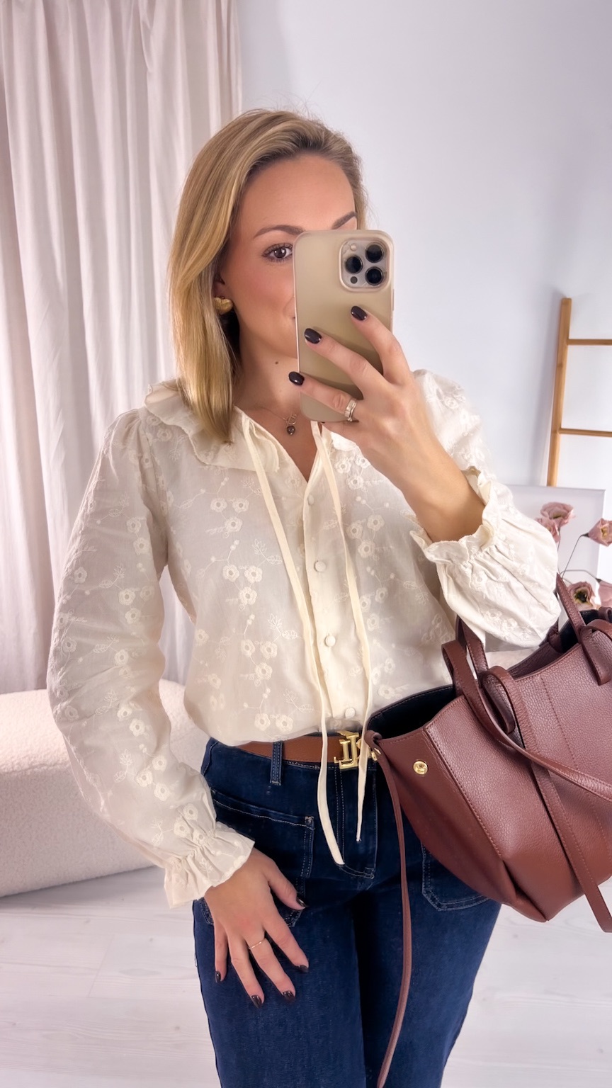 🌸 Jasnobeżowa koszula z delikatnym haftem 🌸